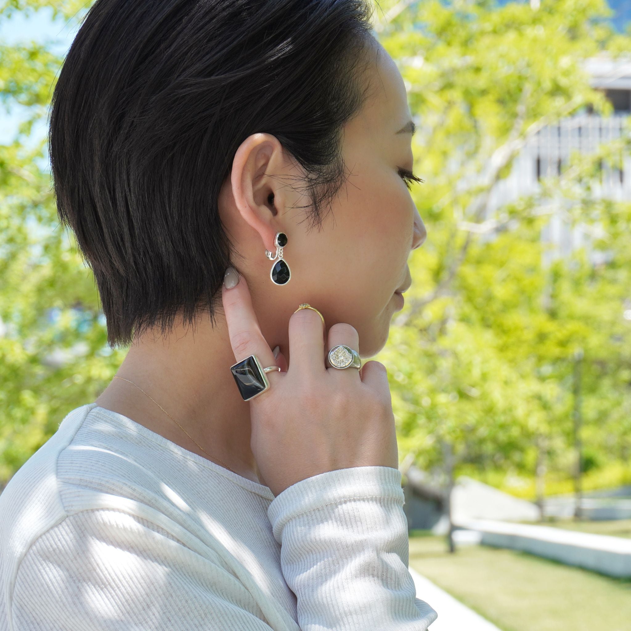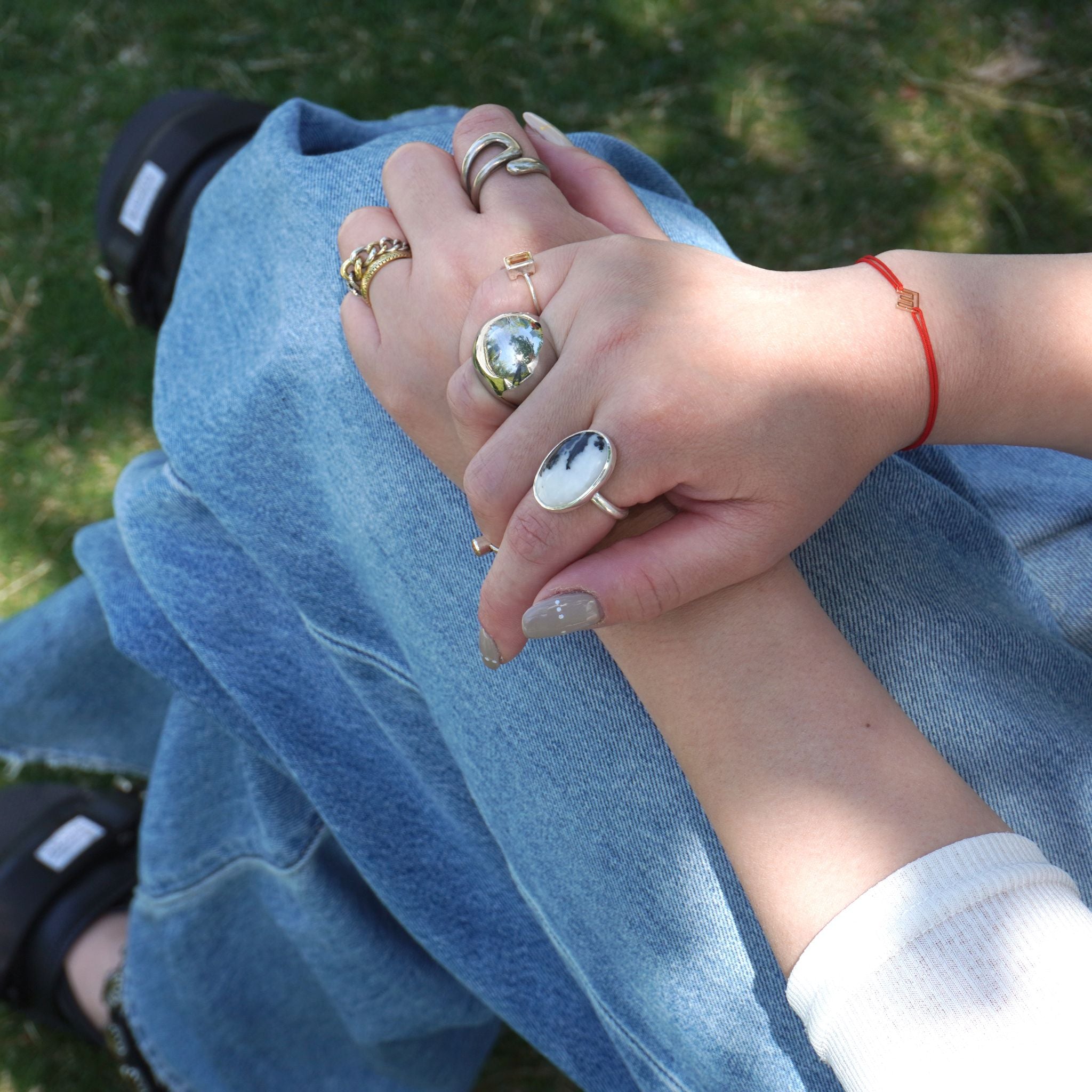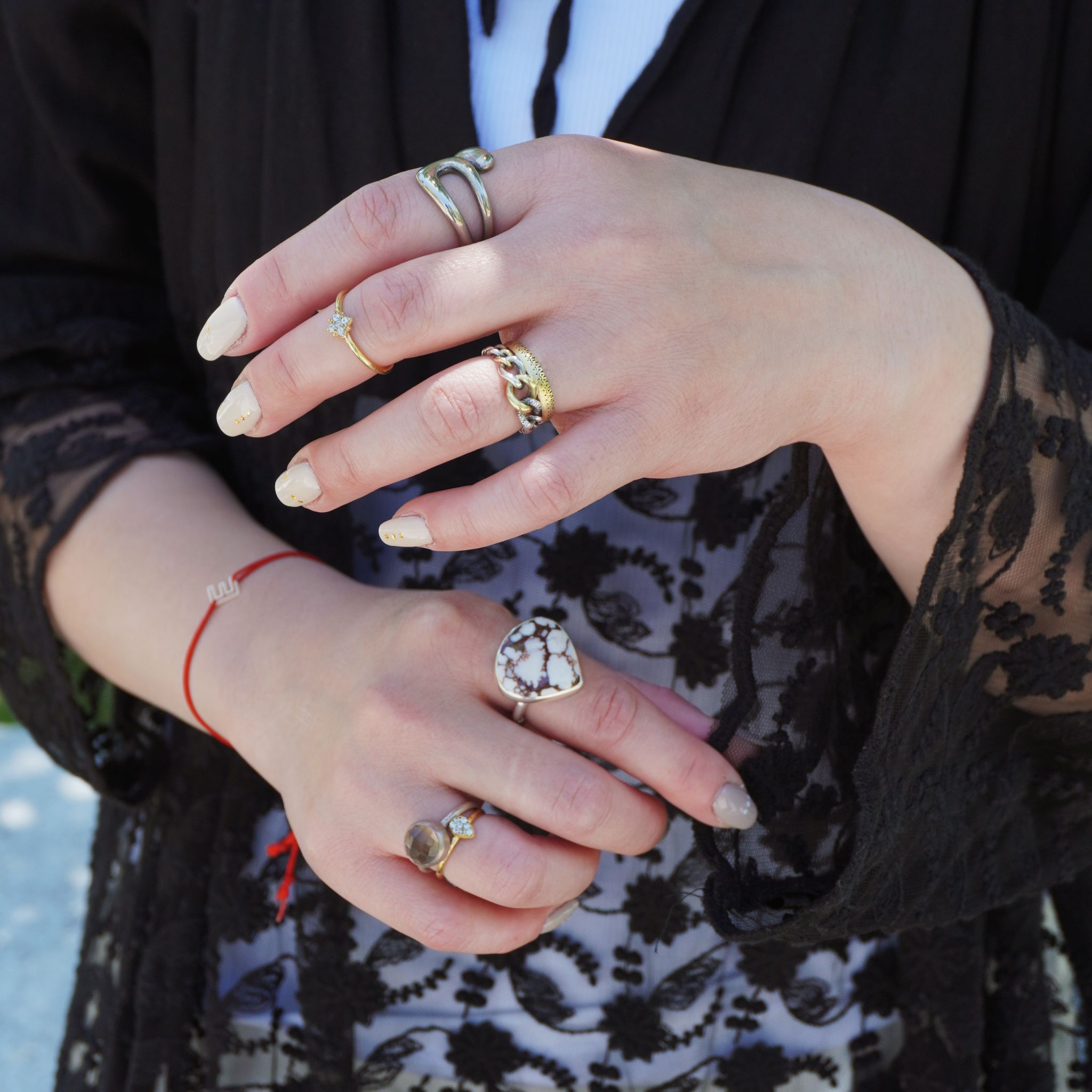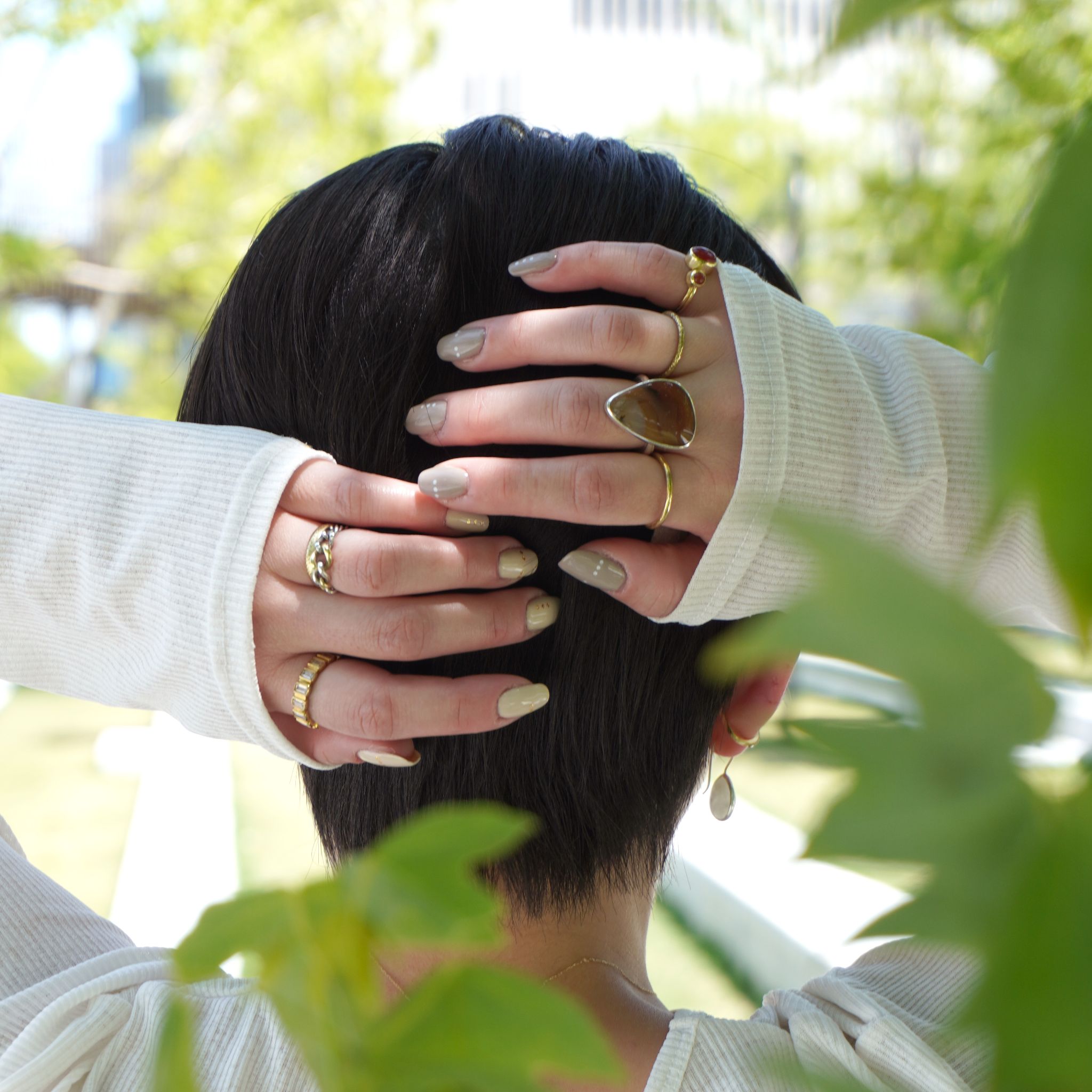 天然石リングの重ねづけコーディネート撮影を行いました。