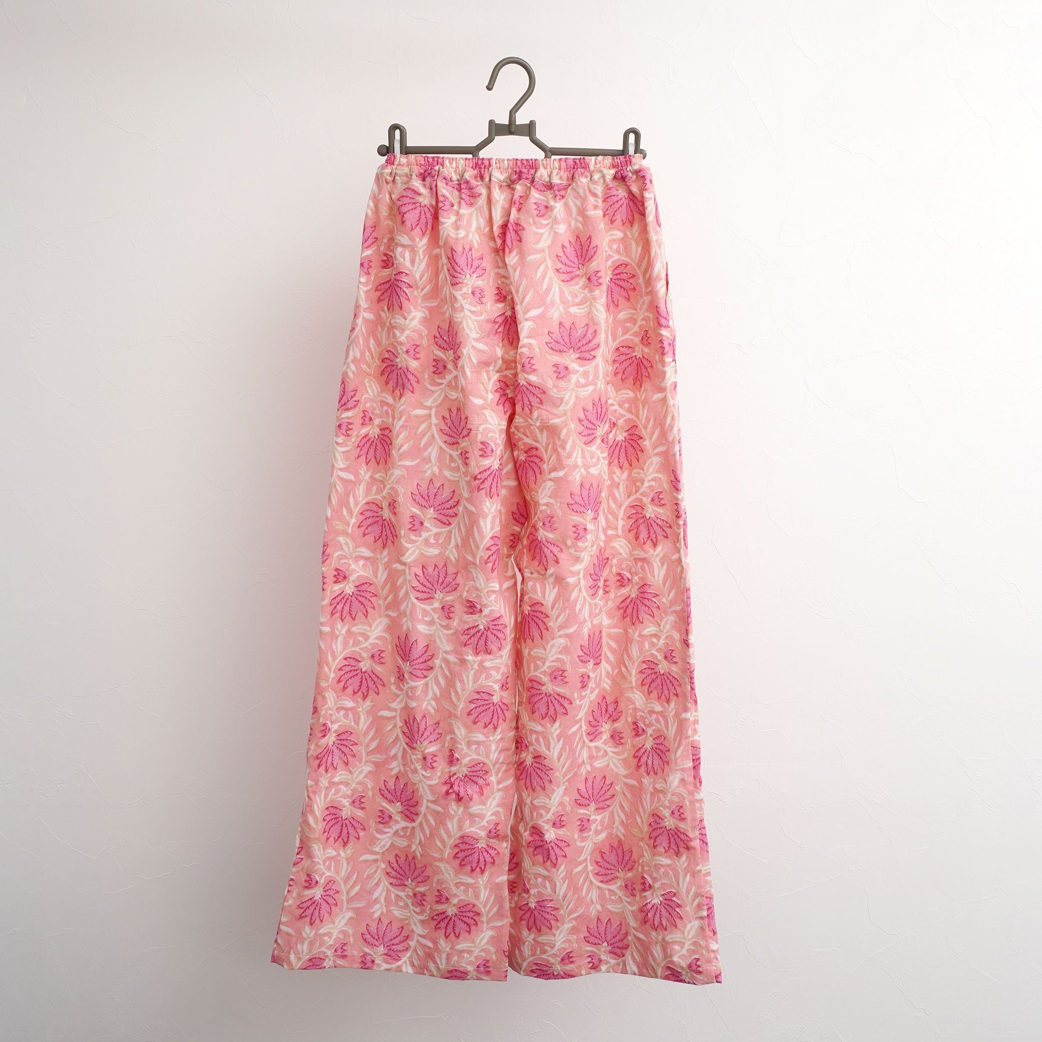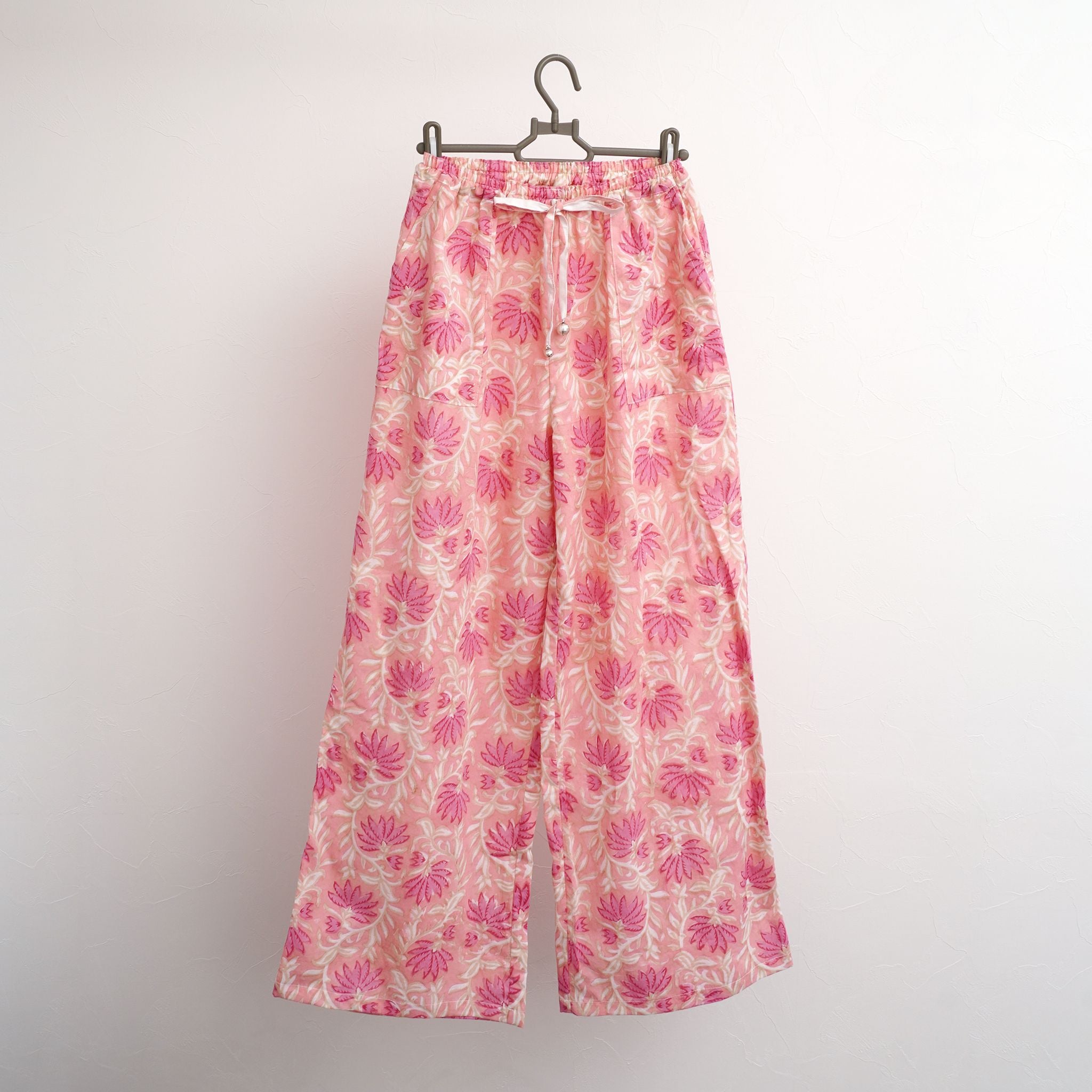 職人が1色ずつ丁寧に手作業で柄を押していく伝統的な染色技法でつくられた生地。柄のズレやかすれも手仕事ならではの味わいで、温もりのある風合いが魅力です。
