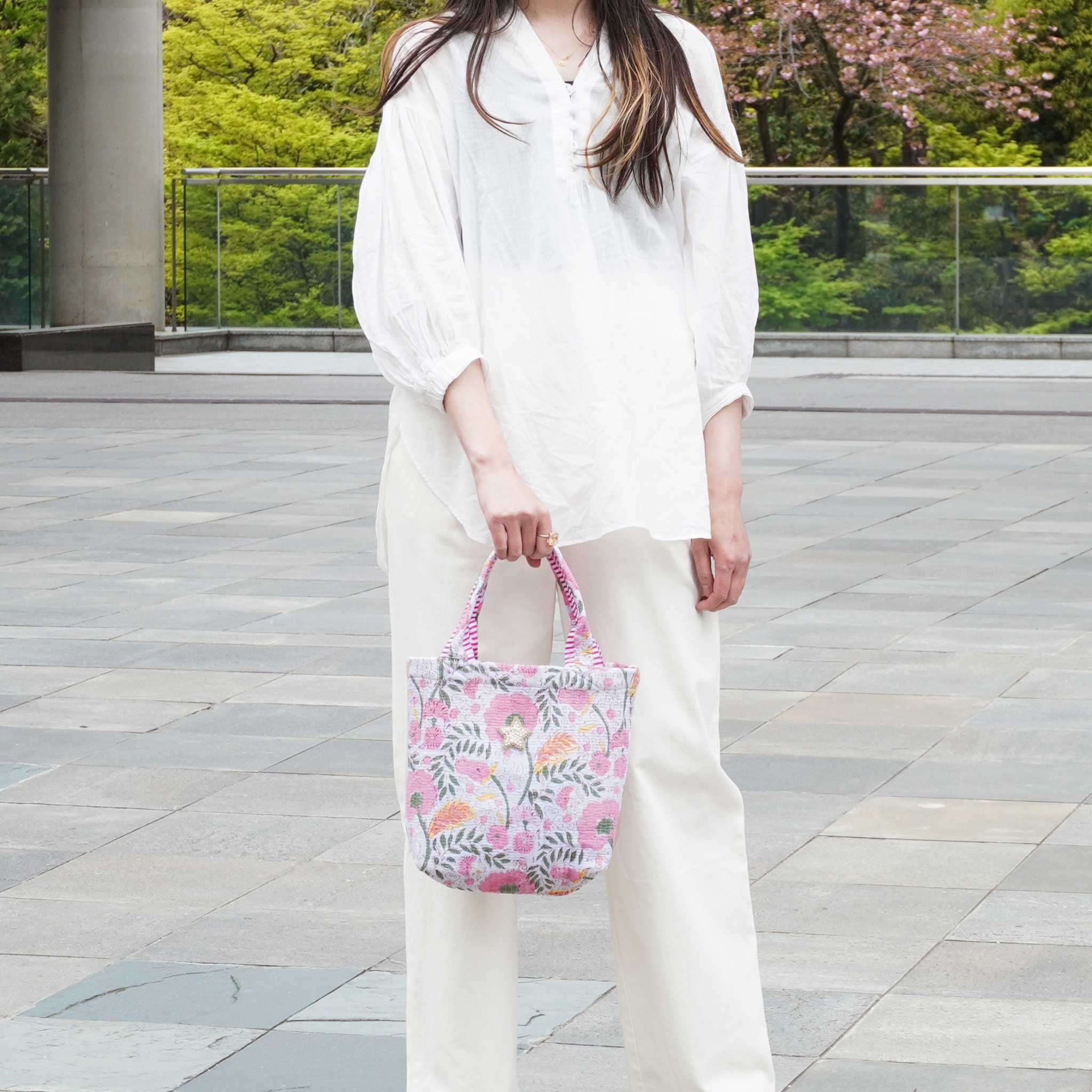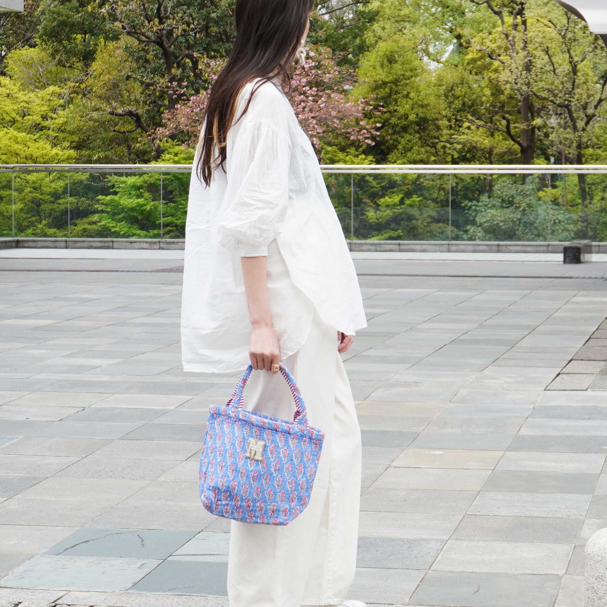 木版を一つひとつ手押しし、丁寧に染め上げられた生地は、機械では出せない揺らぎと温もりを宿しています。