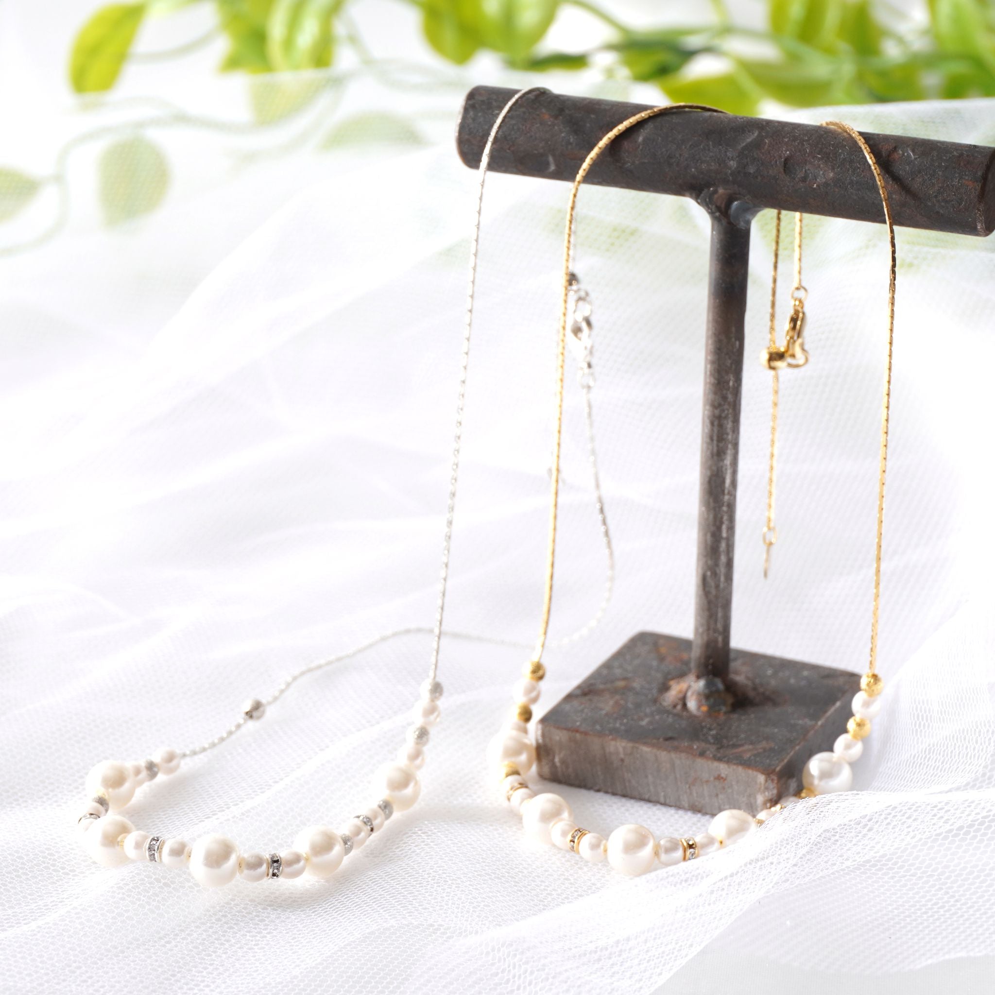 Pearl x Stone short necklace