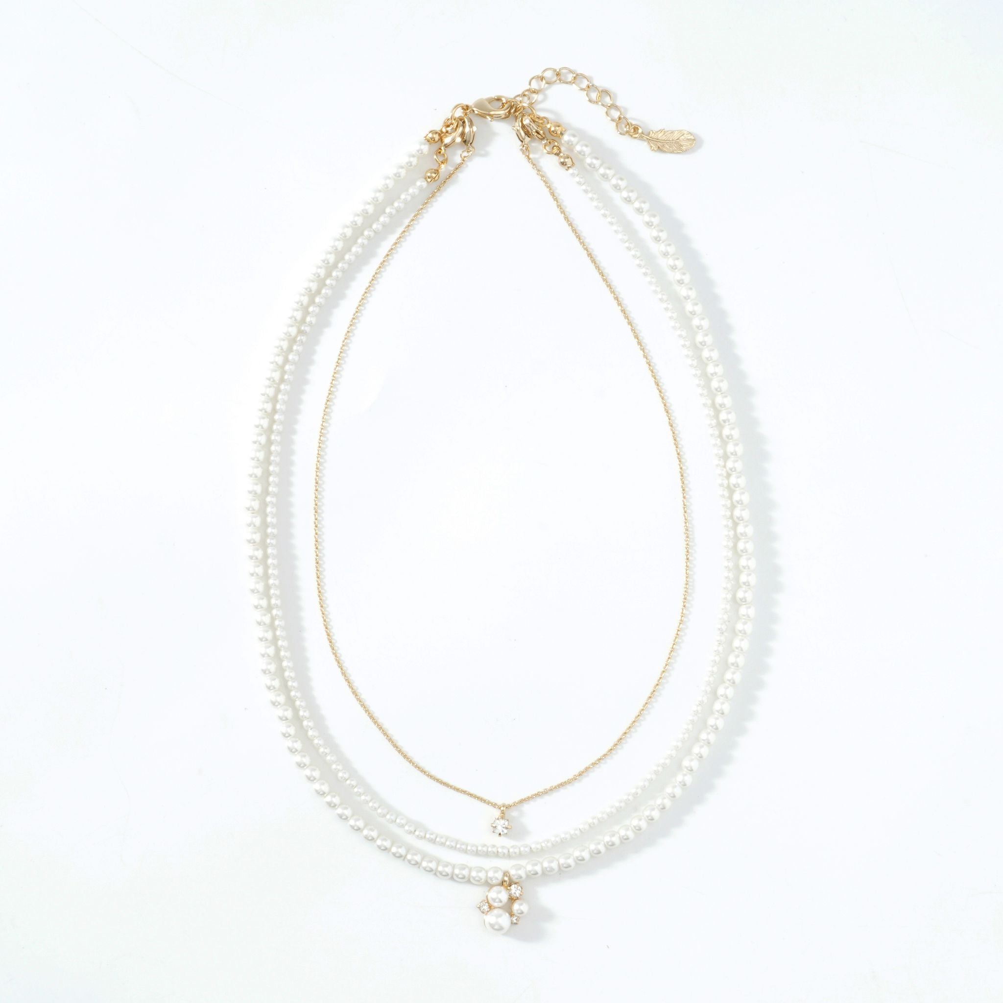 Pearl x Simple 2 consecutive chain 3WAY Necklace