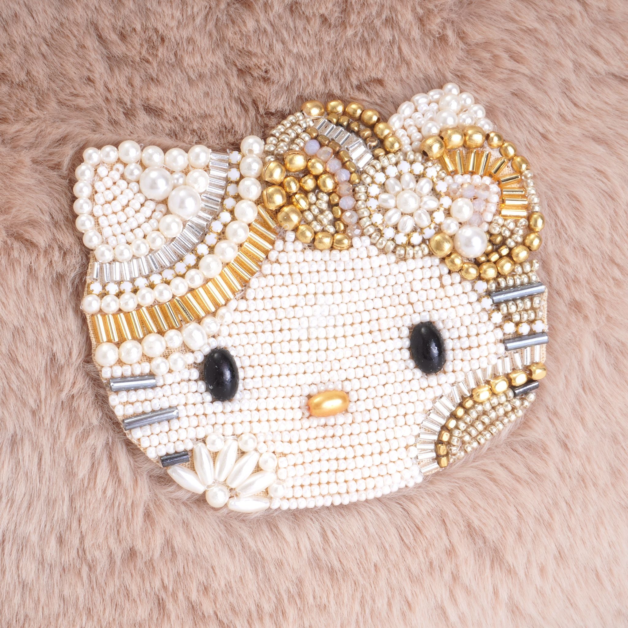 HelloKittyモチーフの、派手すぎない上品な輝きはハンドメイドビーズのカットによるもの。インドで昔から代々伝わる繊細なハンドワークによって作られています。