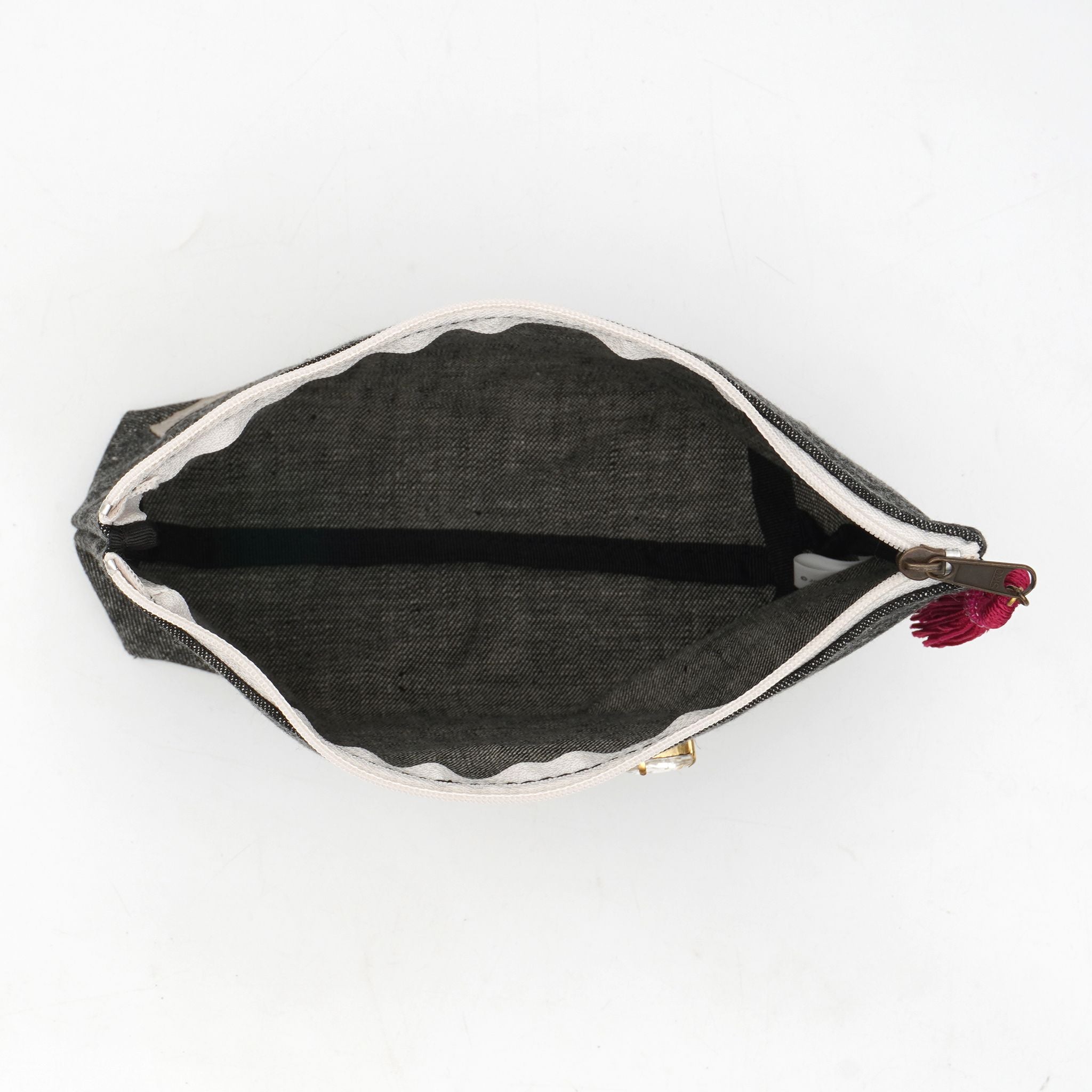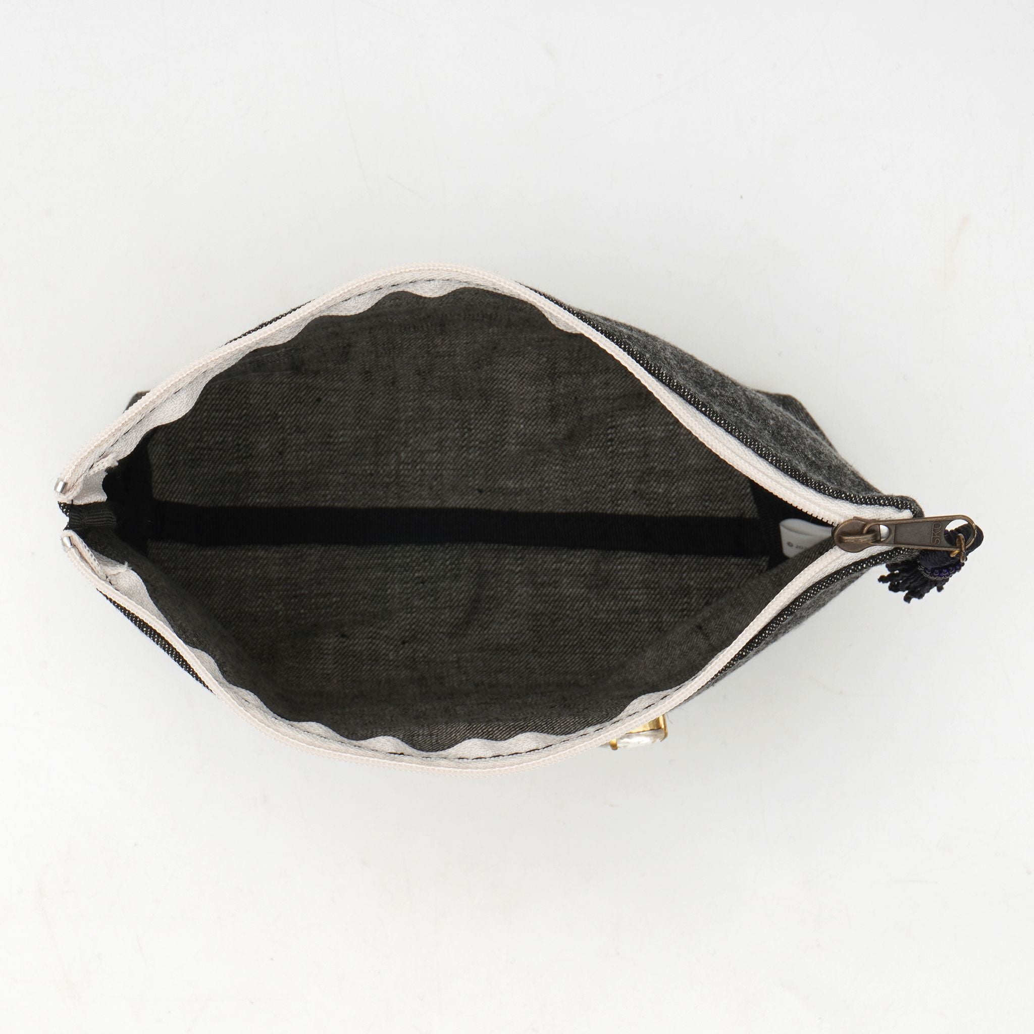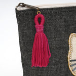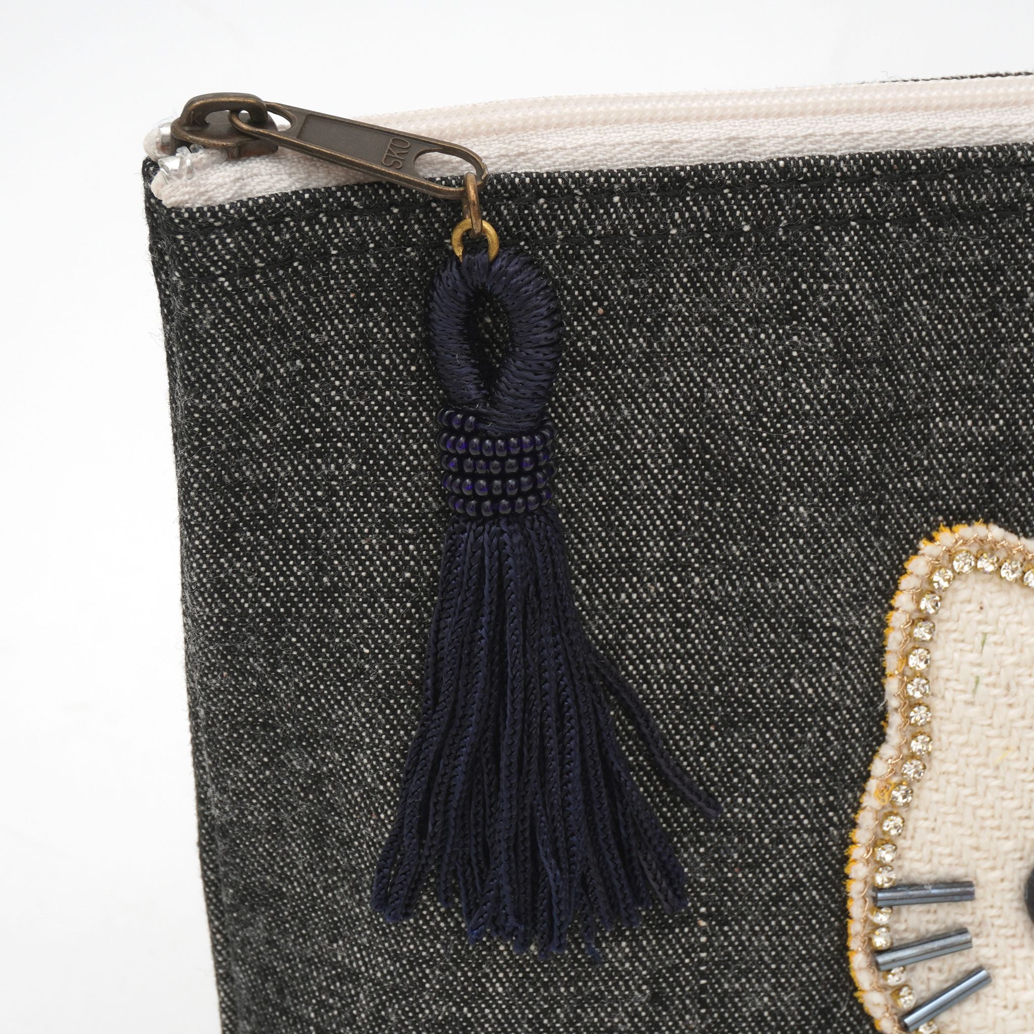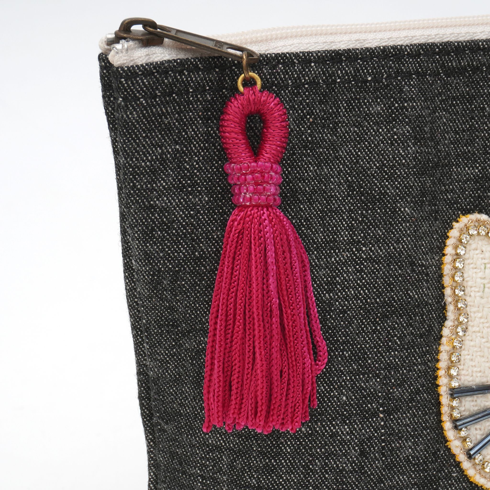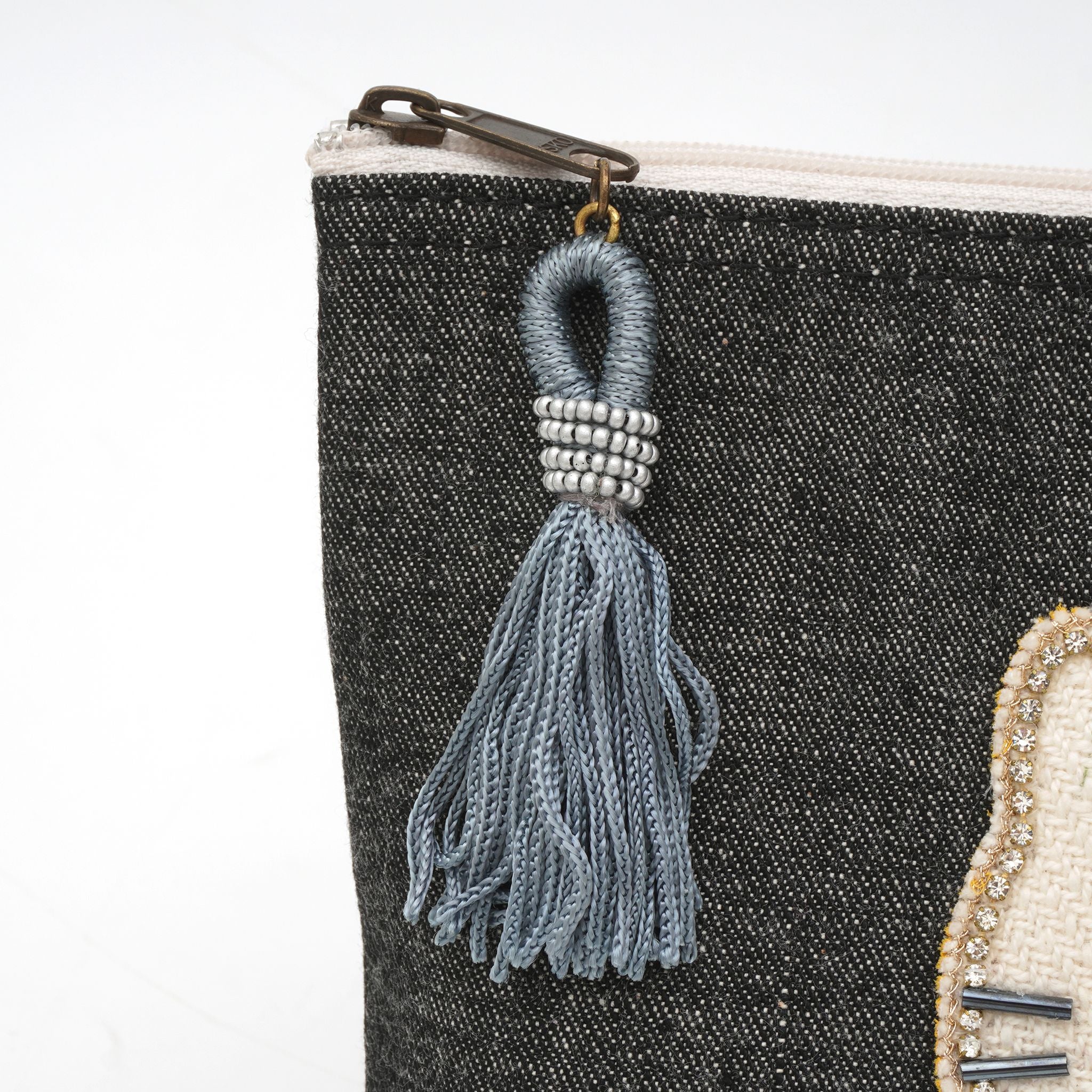 上品な艶を放つタッセルは、インドの職人による丁寧な手仕事によるもの。シンプルなデニムに優しい彩りを添え、日常使いの中にふと「ときめき」を感じられる仕上がりです。