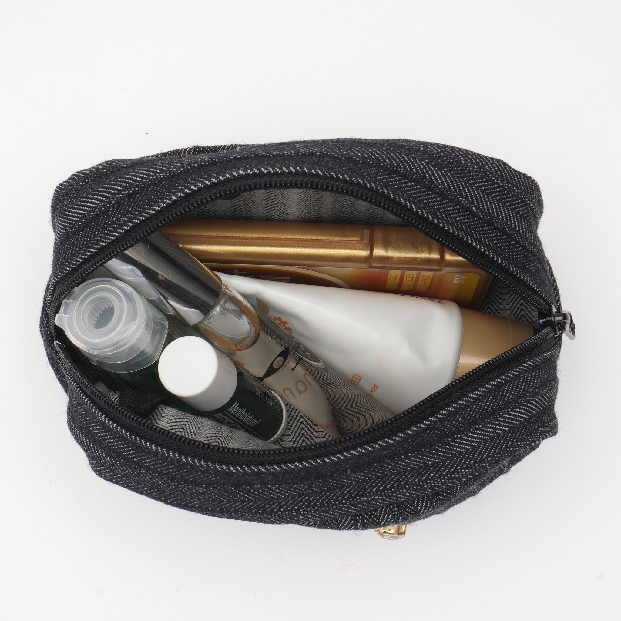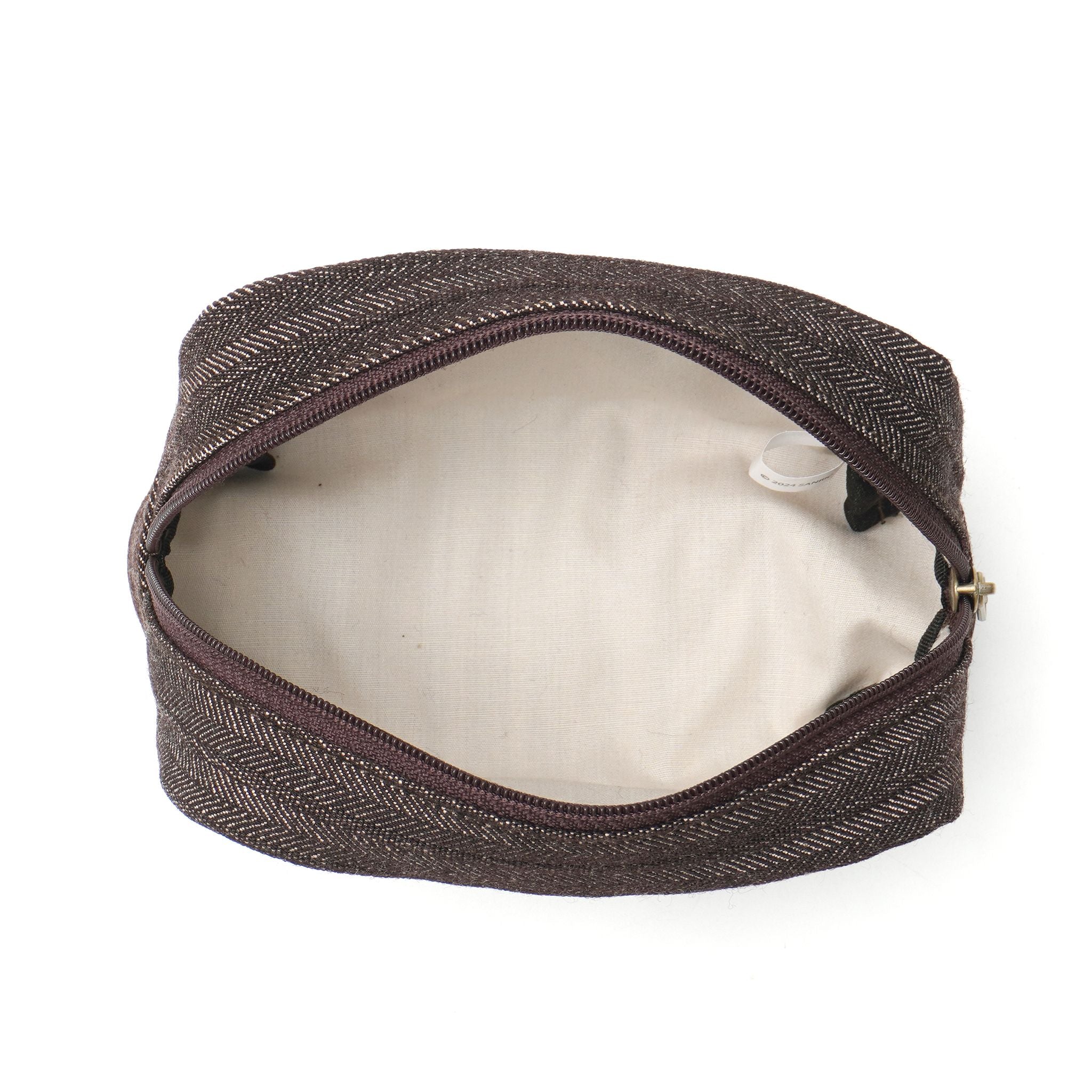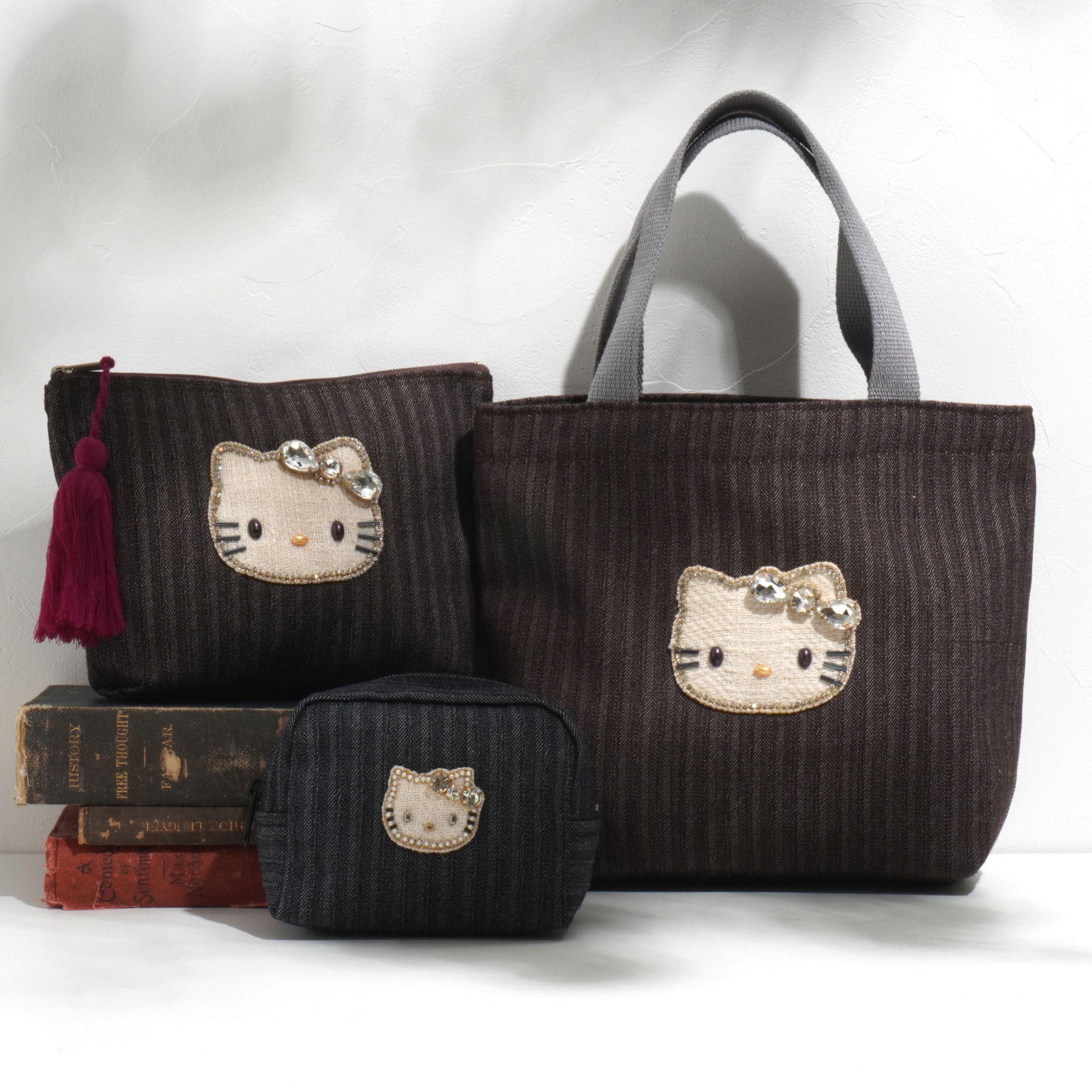 上品なヘリンボーン織りのデニム素材に、きらめくキティのビジューモチーフをあしらったポーチ。シックなカラーと柔らかな風合いが魅力で、大人っぽい中にも可愛らしさを感じるデザインです。小物やコスメをすっきりまとめられるコンパクトサイズで、デイリー使いにも旅行にも便利。カジュアルにもきれいめにもなじむ、上品なデニムポーチです。