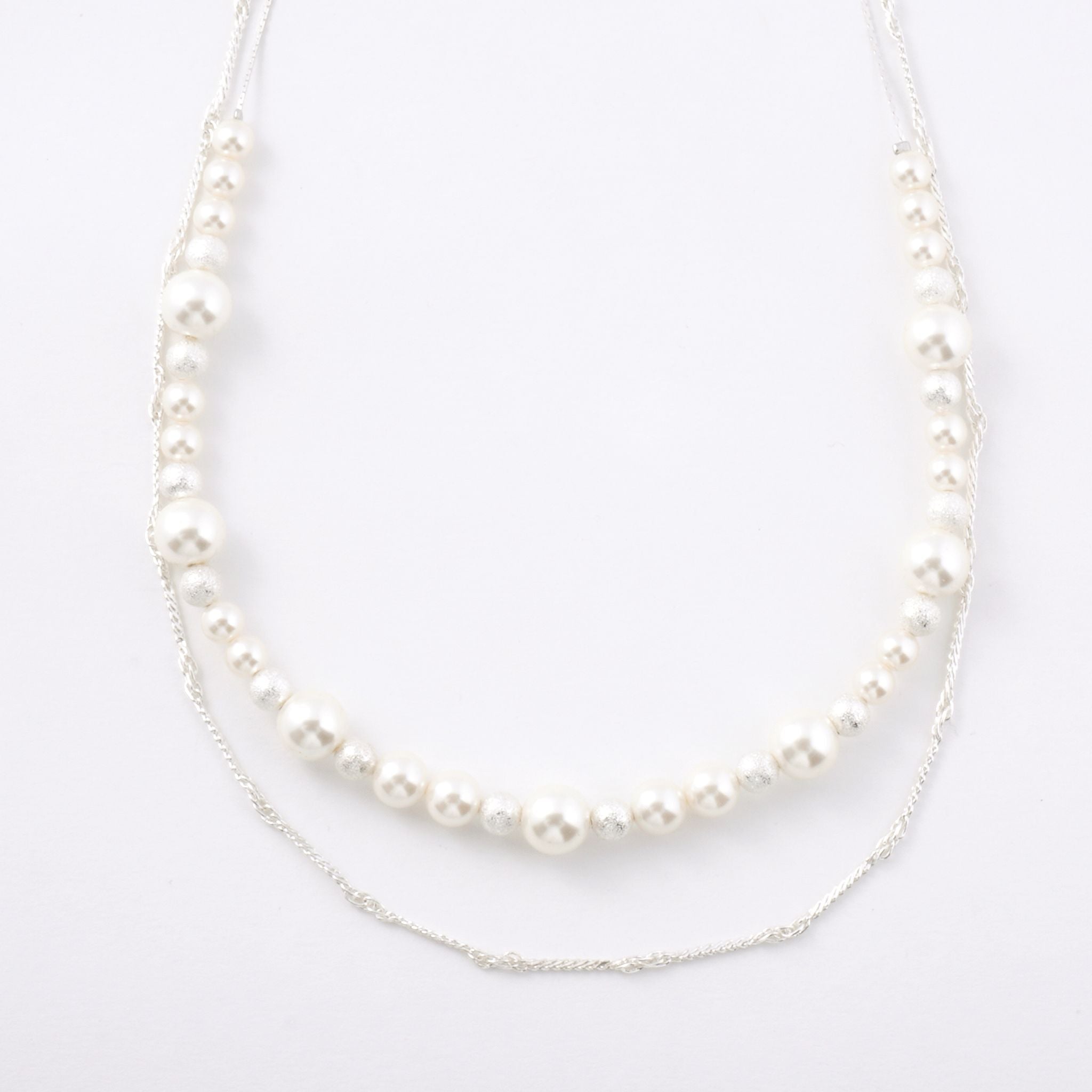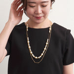 シンプルなワンピースやニットに合わせるだけで、胸元に程よい存在感をプラス。フォーマルなシーンにはもちろん、普段のスタイルにも自然に馴染み、大人の女性の装いをさりげなく引き立てます。重ね着けのアクセントとしても活躍し、スタイリングの幅を広げてくれる一本です。動くたびにやわらかく揺れるパールが、上品で女性らしい雰囲気を演出します。