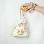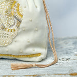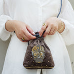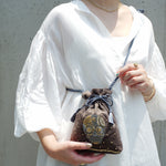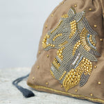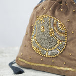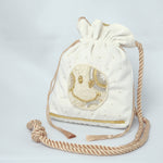 All from the sewing of the drawstring to the embroidery part and the handle rope are all hand -made in Indian villages.