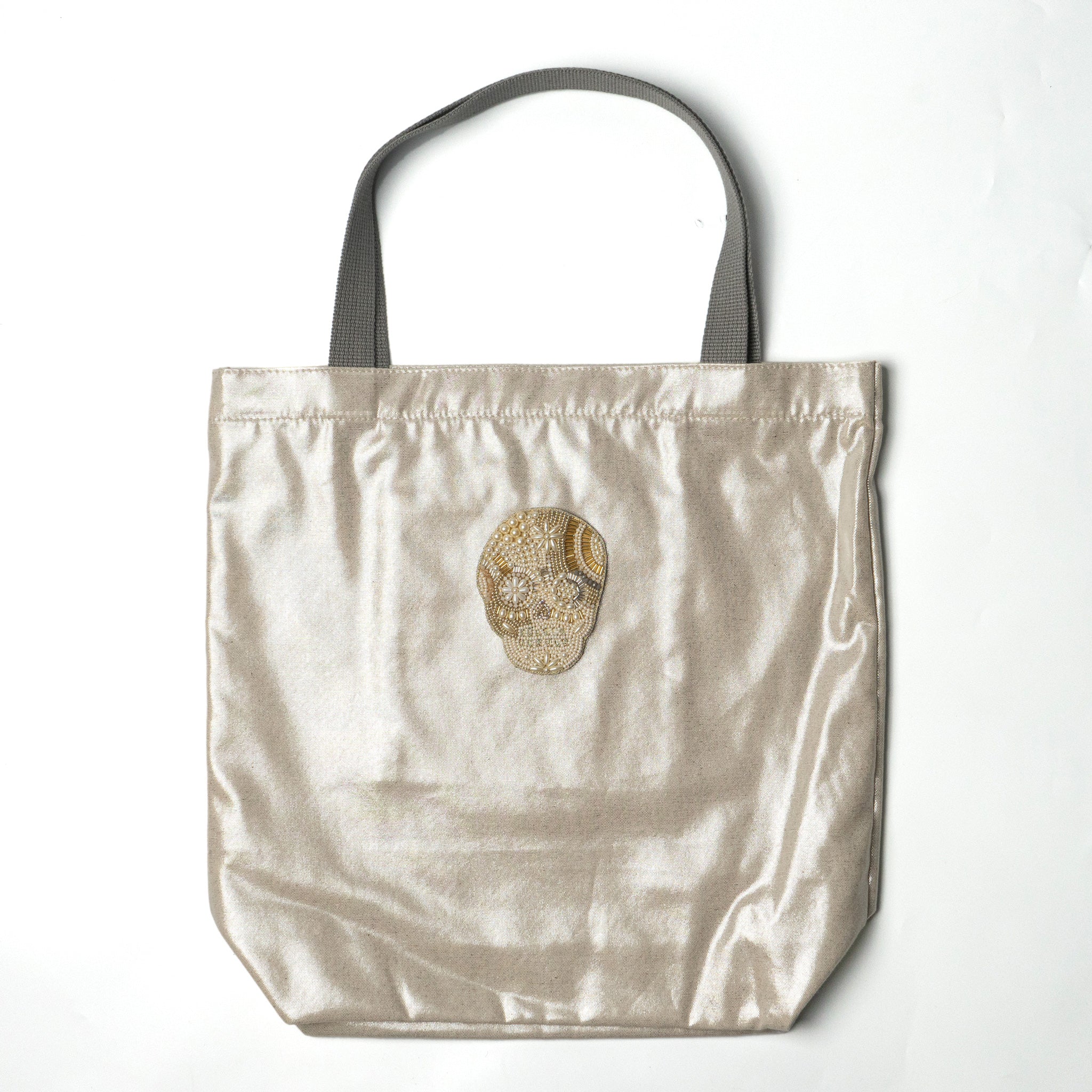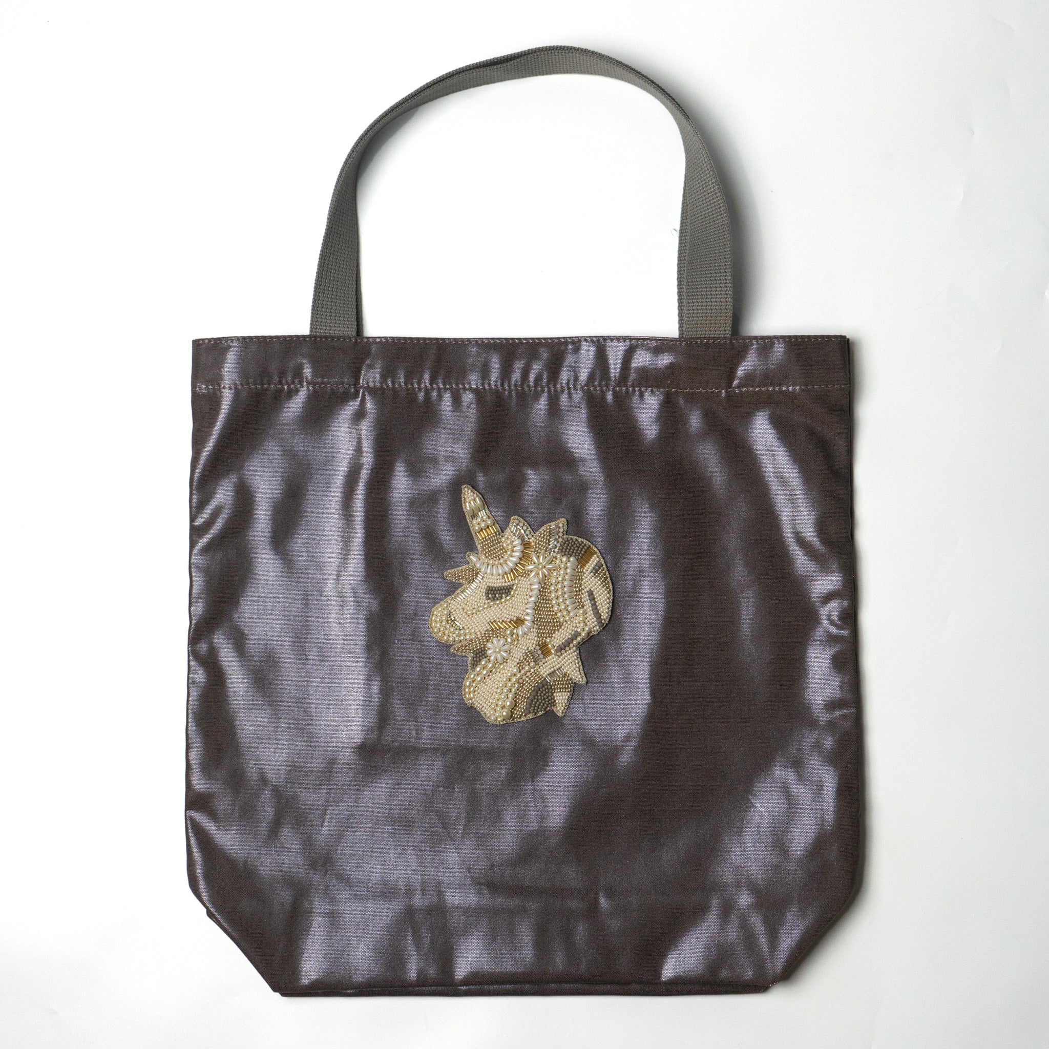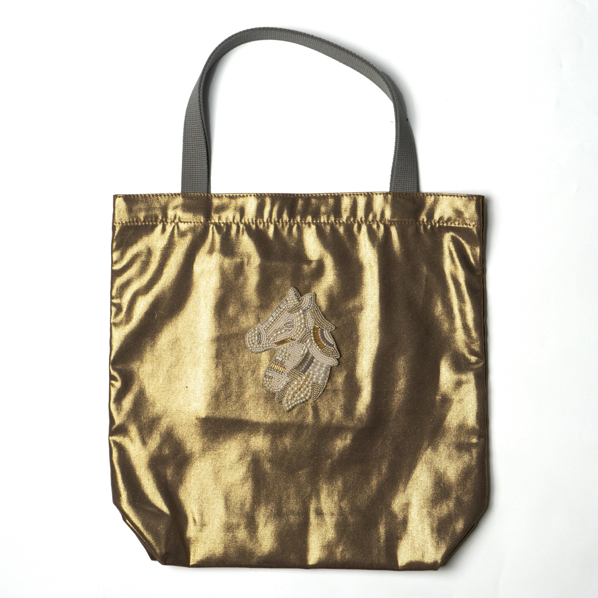 Tote bag with a unique motif made of delicate handwork that has been handed down in India for generations in India for a bag with an original foil print on cotton fabric.