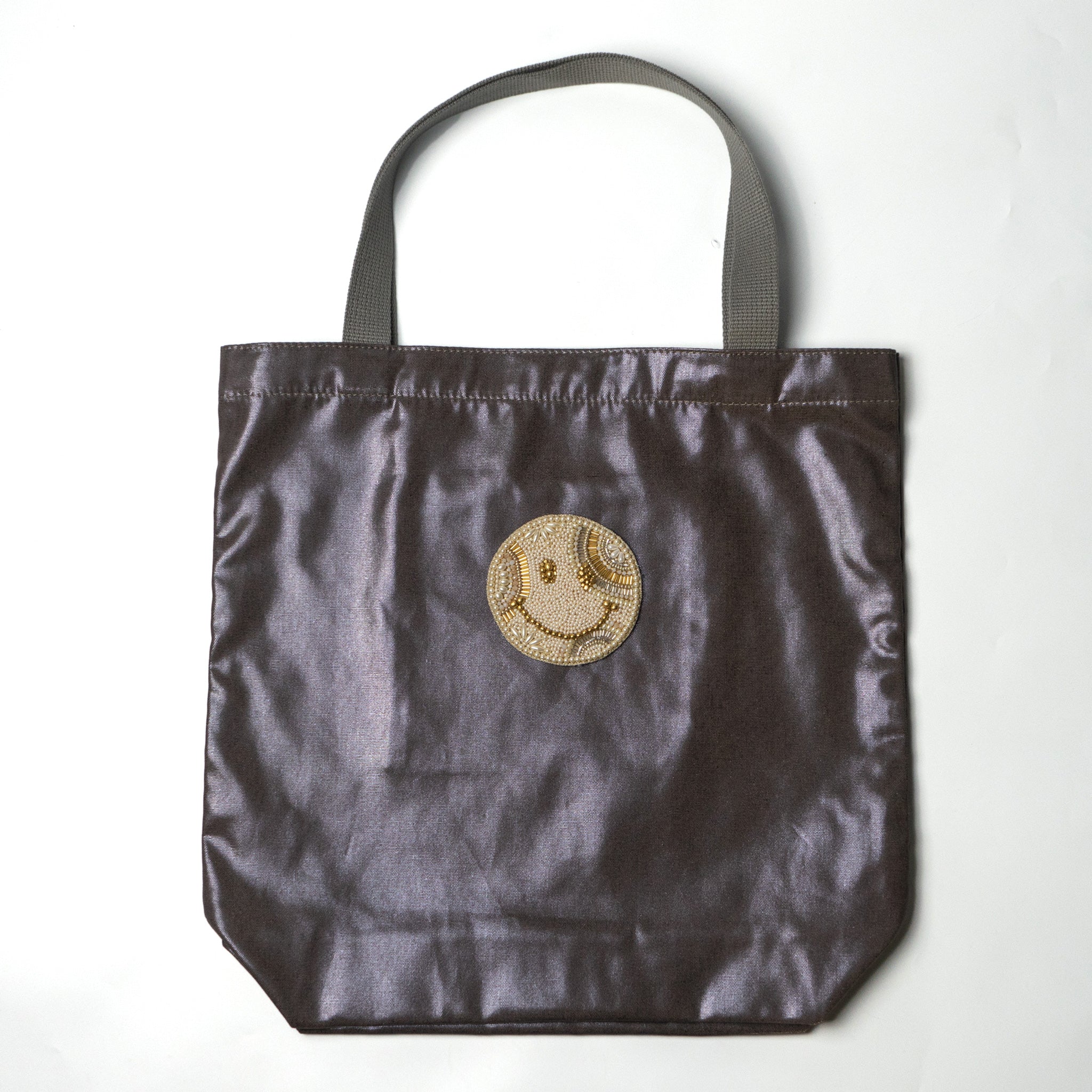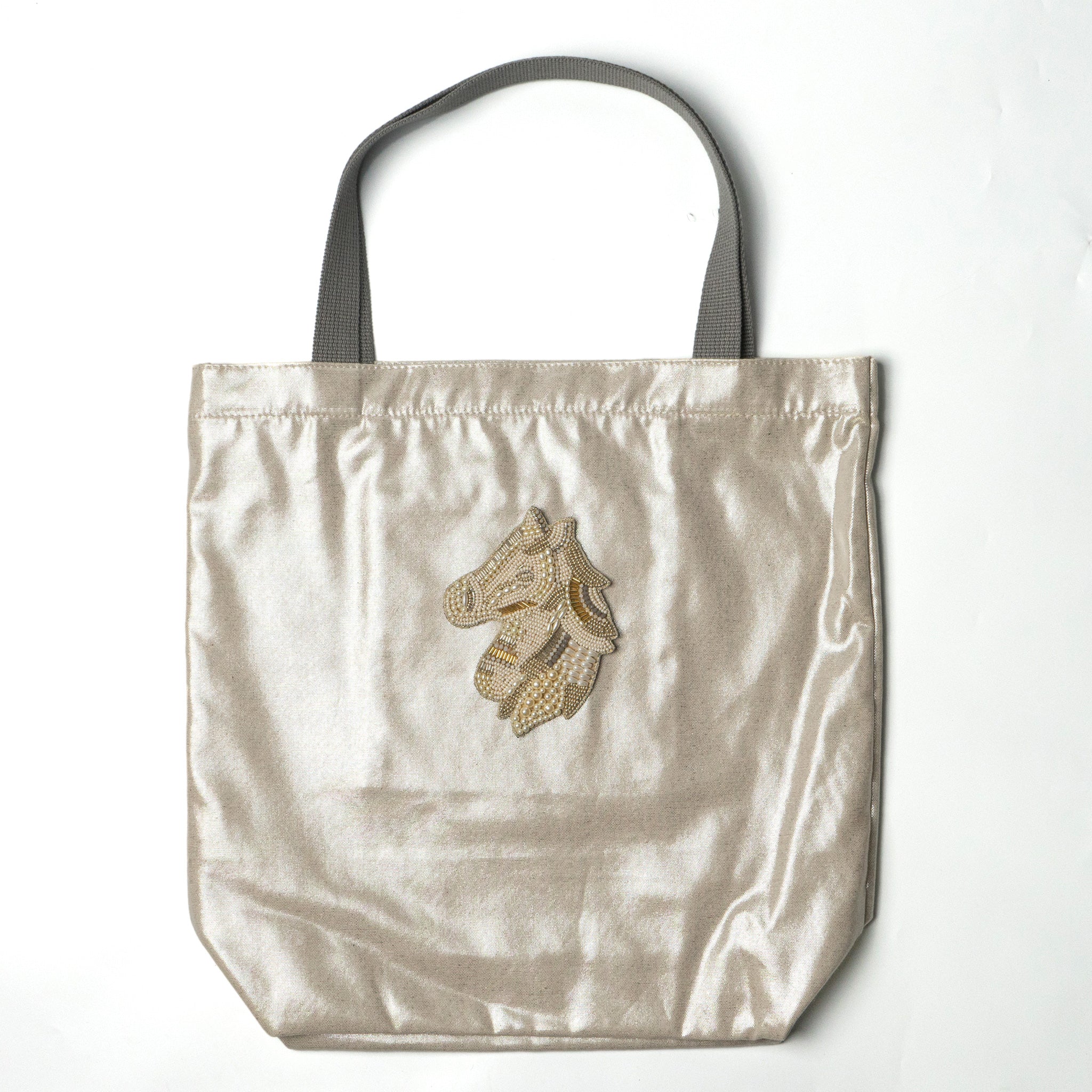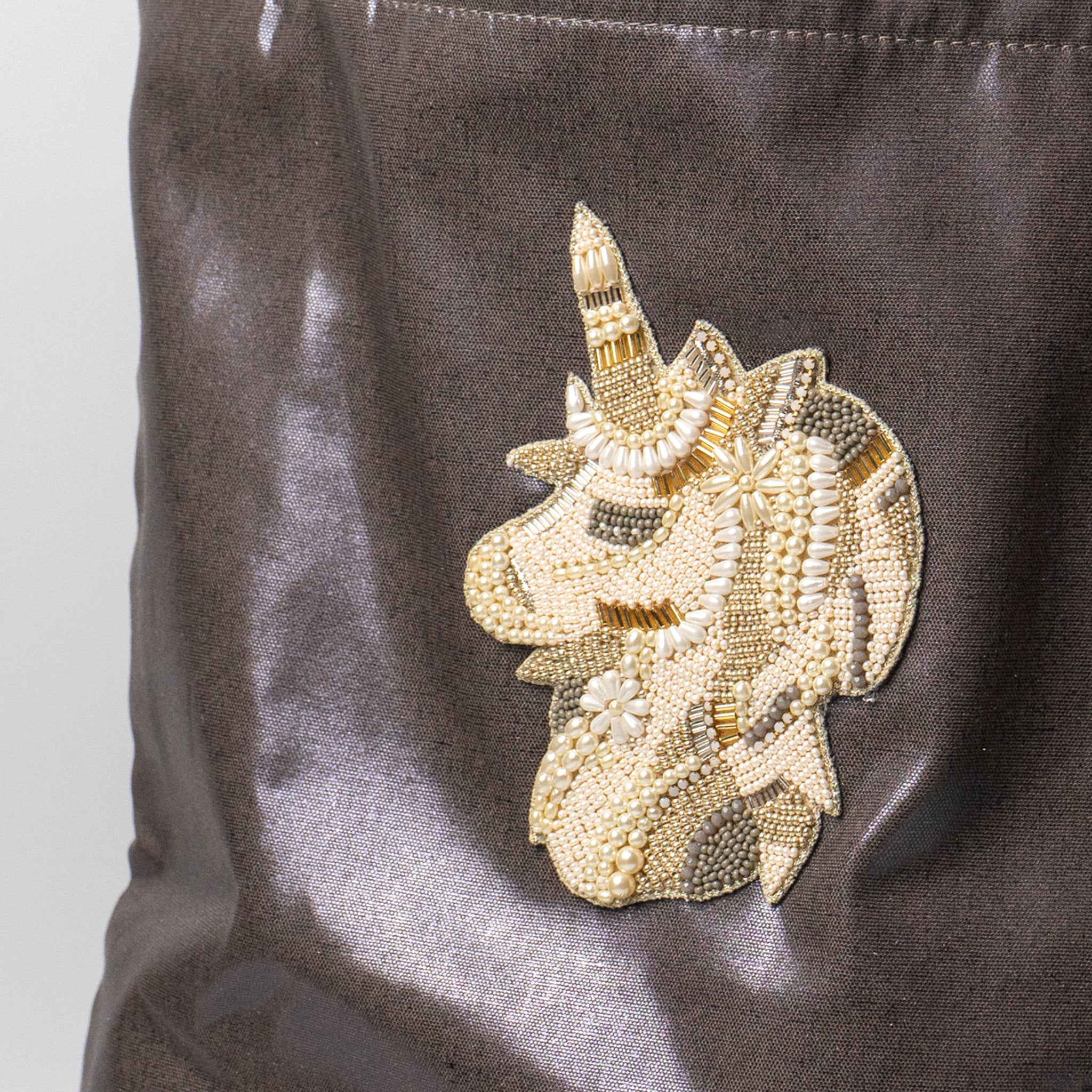 Tote bag with a unique motif made of delicate handwork that has been handed down in India for generations in India for a bag with an original foil print on cotton fabric.