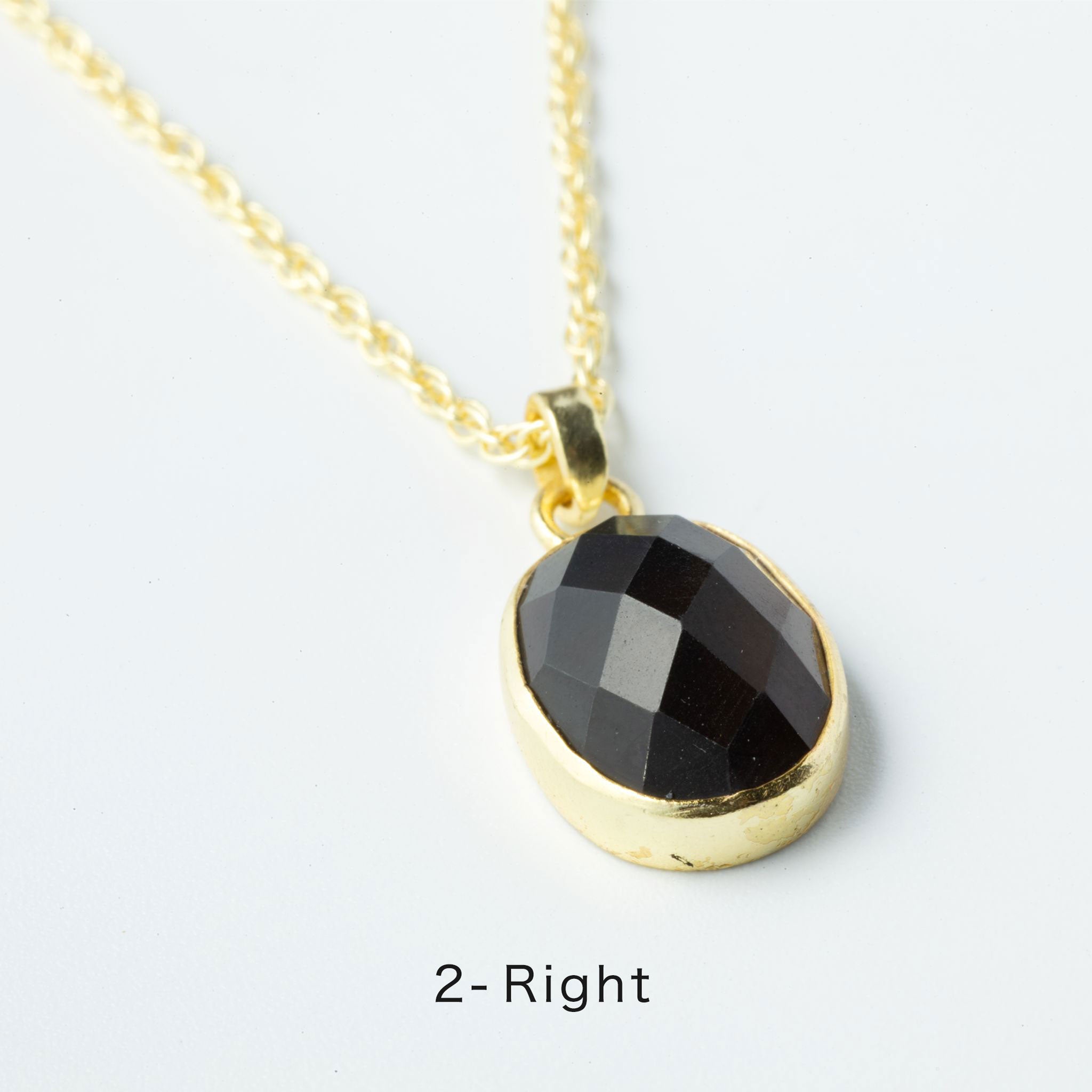 シンプルなフォルムの中に、天然石の個性とゴールドの上品な光沢が際立つデザイン。角度によって異なる表情を見せる天然石の魅力を、ぜひ胸元で感じてみて。