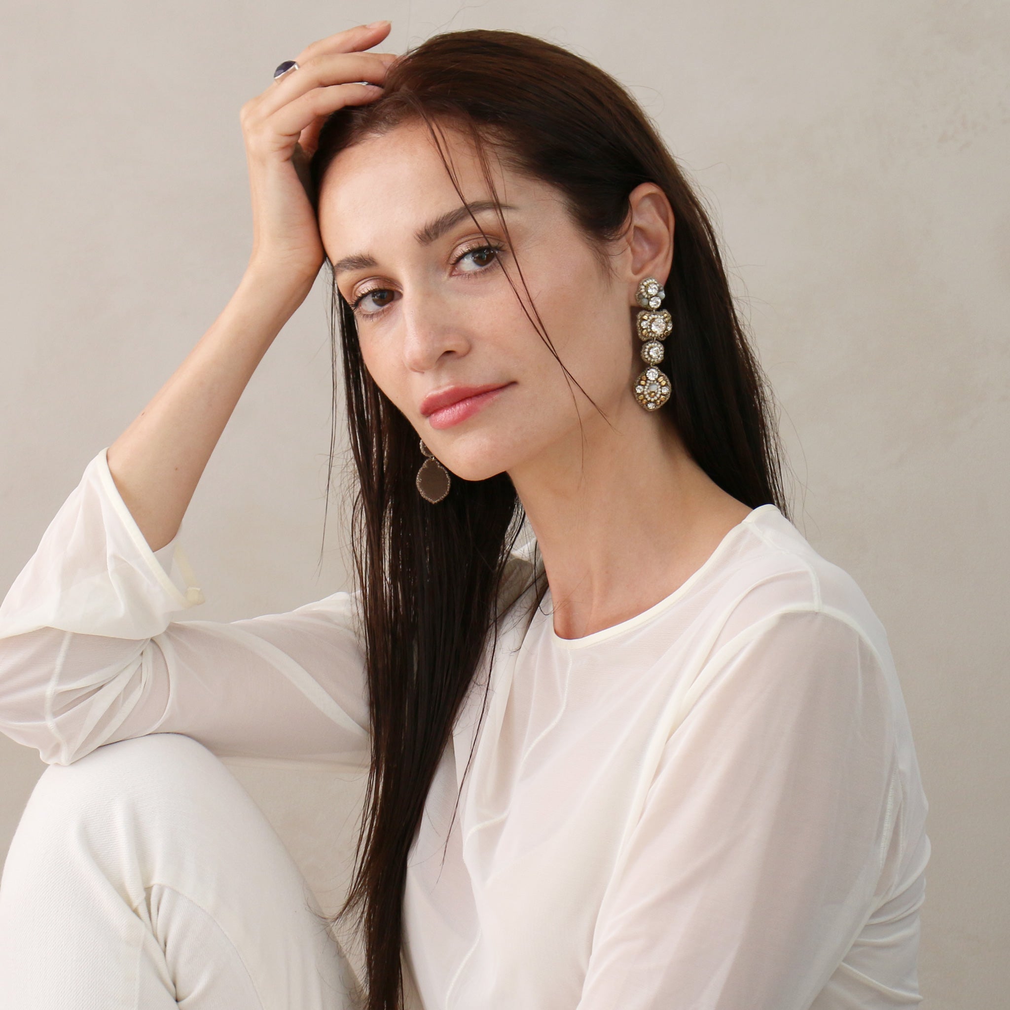 横顔に、静かなドラマを。光を連ねたロングイヤリング。