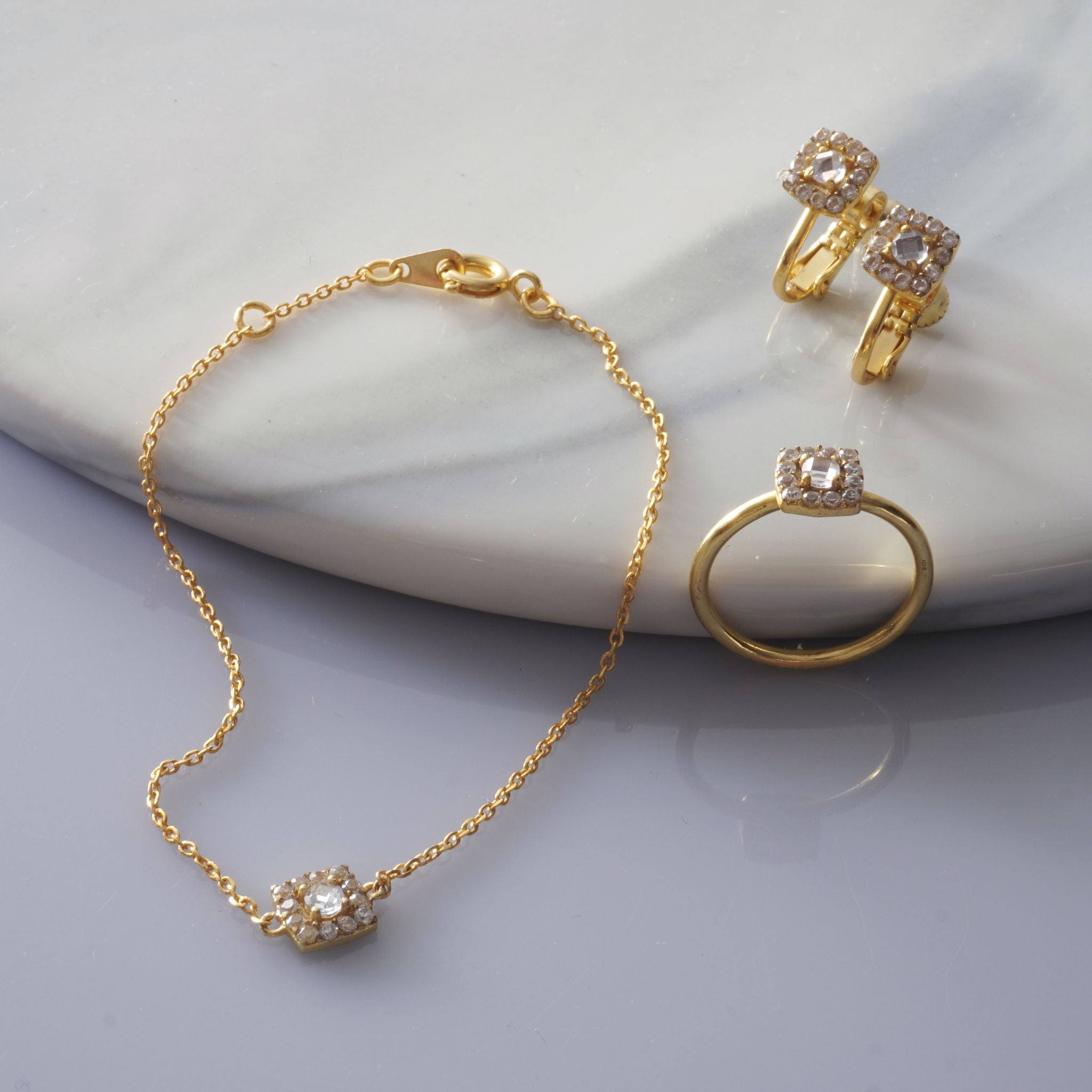 インド・ジャイプールの熟練の職人が一点ずつ丁寧に手作業で仕上げています。ガラスや天然石をセットし、ひとつひとつ磨き上げることで、 機械では出せない温もりと、指に馴染む優しい着け心地 が実現。