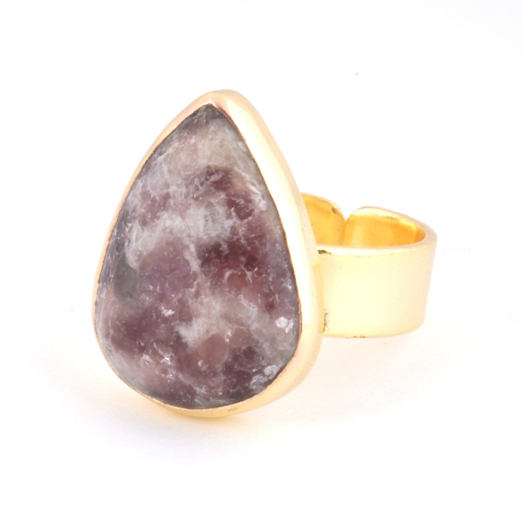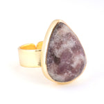 大ぶりの天然石が、まるでアートのように輝くリング。 身に着けるだけで、シンプルなコーデも一気に洗練された印象に。