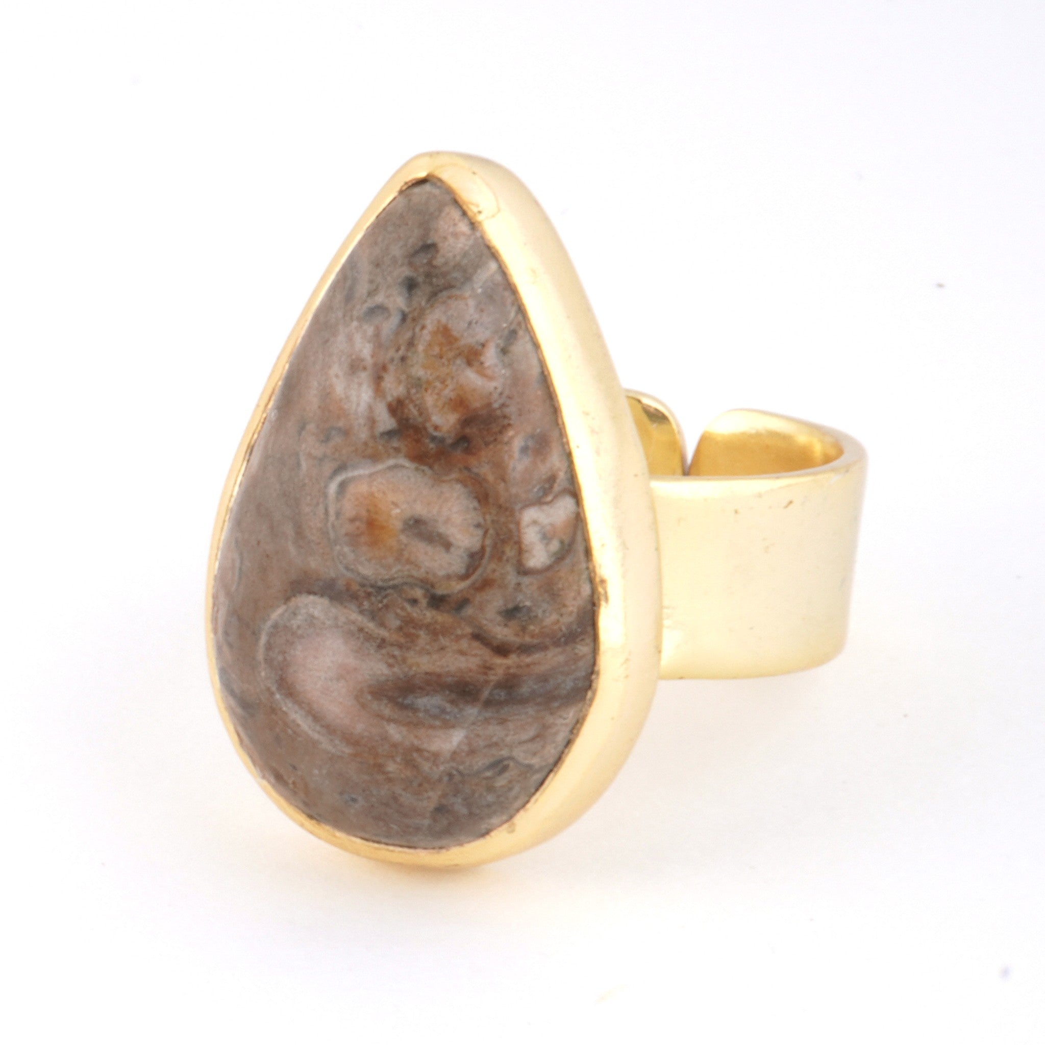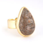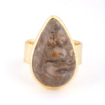大ぶりの天然石が、まるでアートのように輝くリング。 身に着けるだけで、シンプルなコーデも一気に洗練された印象に。