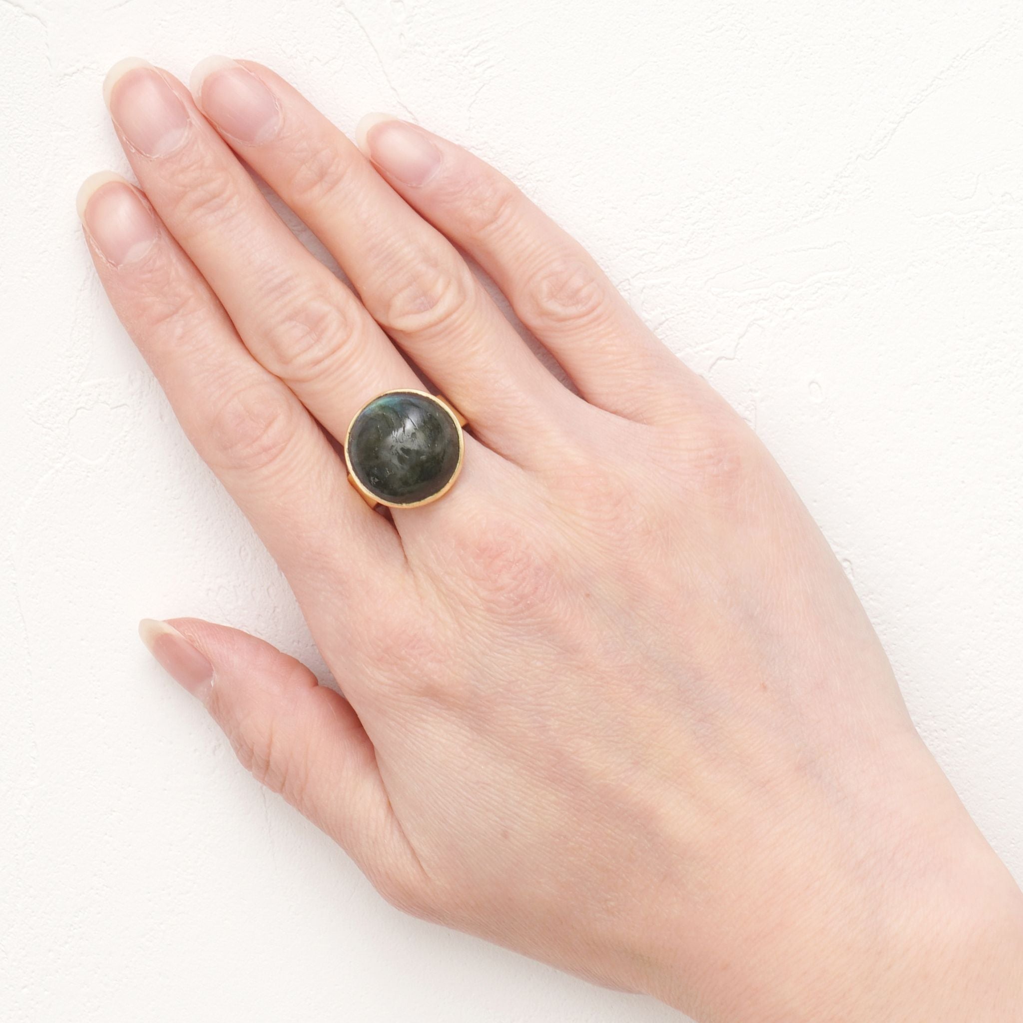 大ぶりの天然石が、まるでアートのように輝くリング。 身に着けるだけで、シンプルなコーデも一気に洗練された印象に。