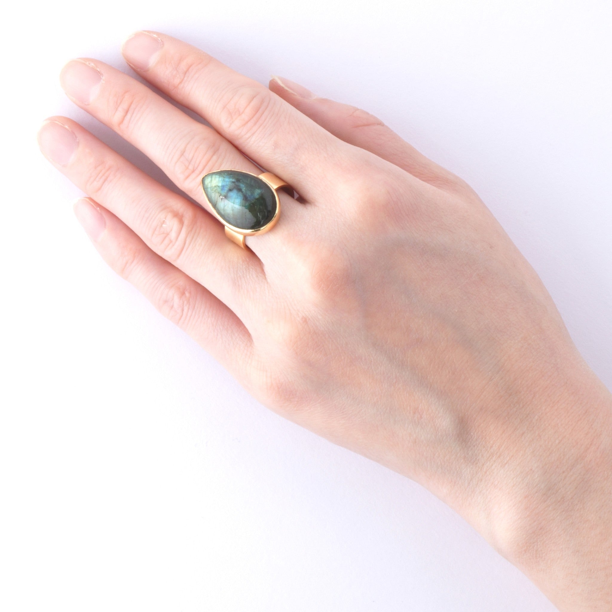 大ぶりの天然石が、まるでアートのように輝くリング。 身に着けるだけで、シンプルなコーデも一気に洗練された印象に。