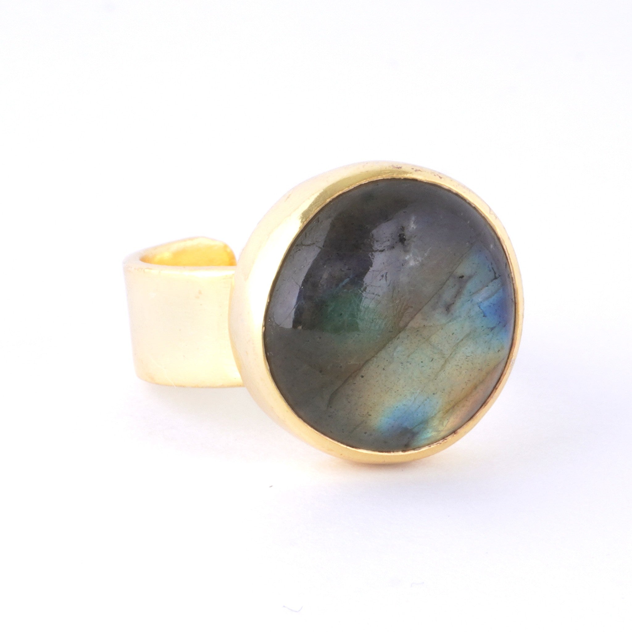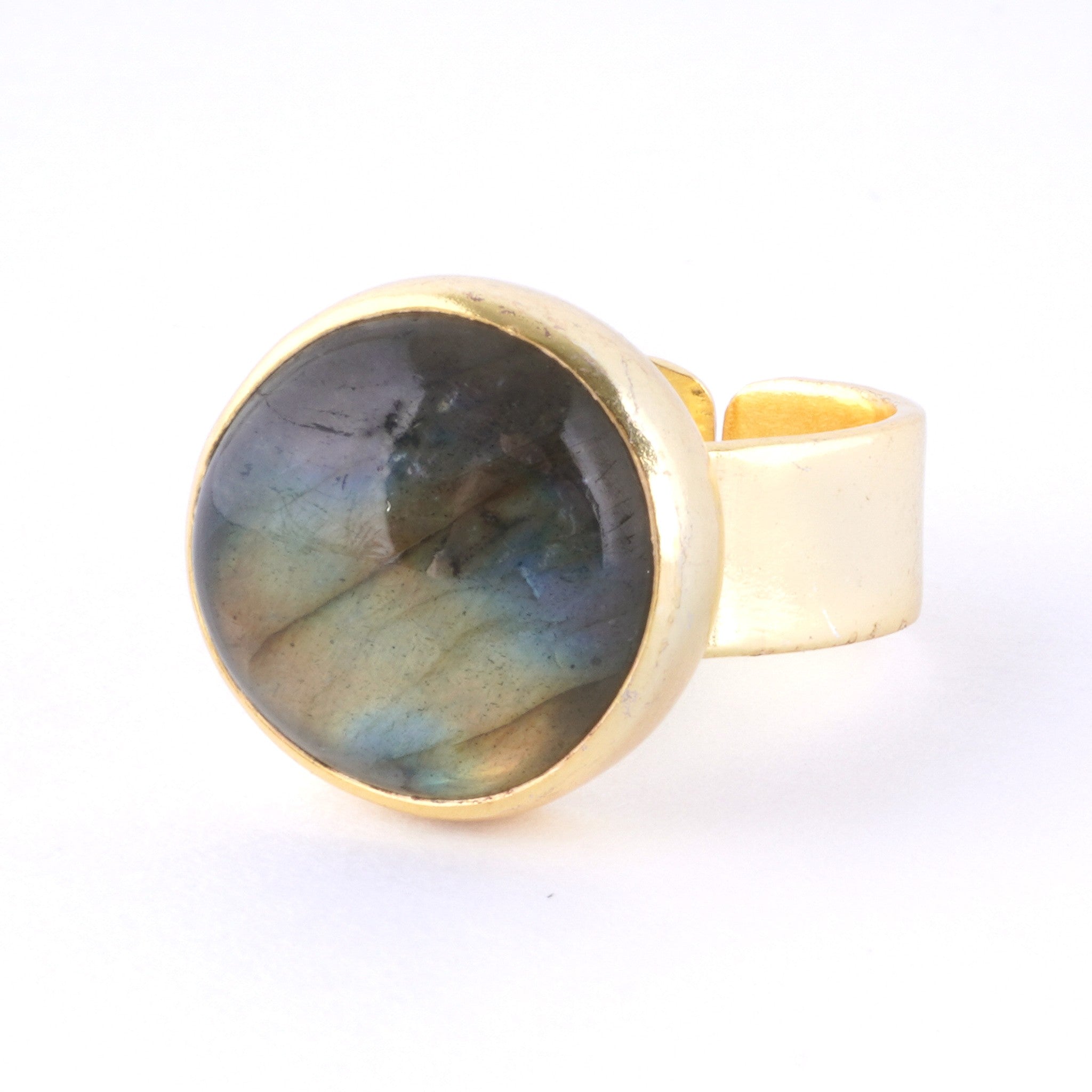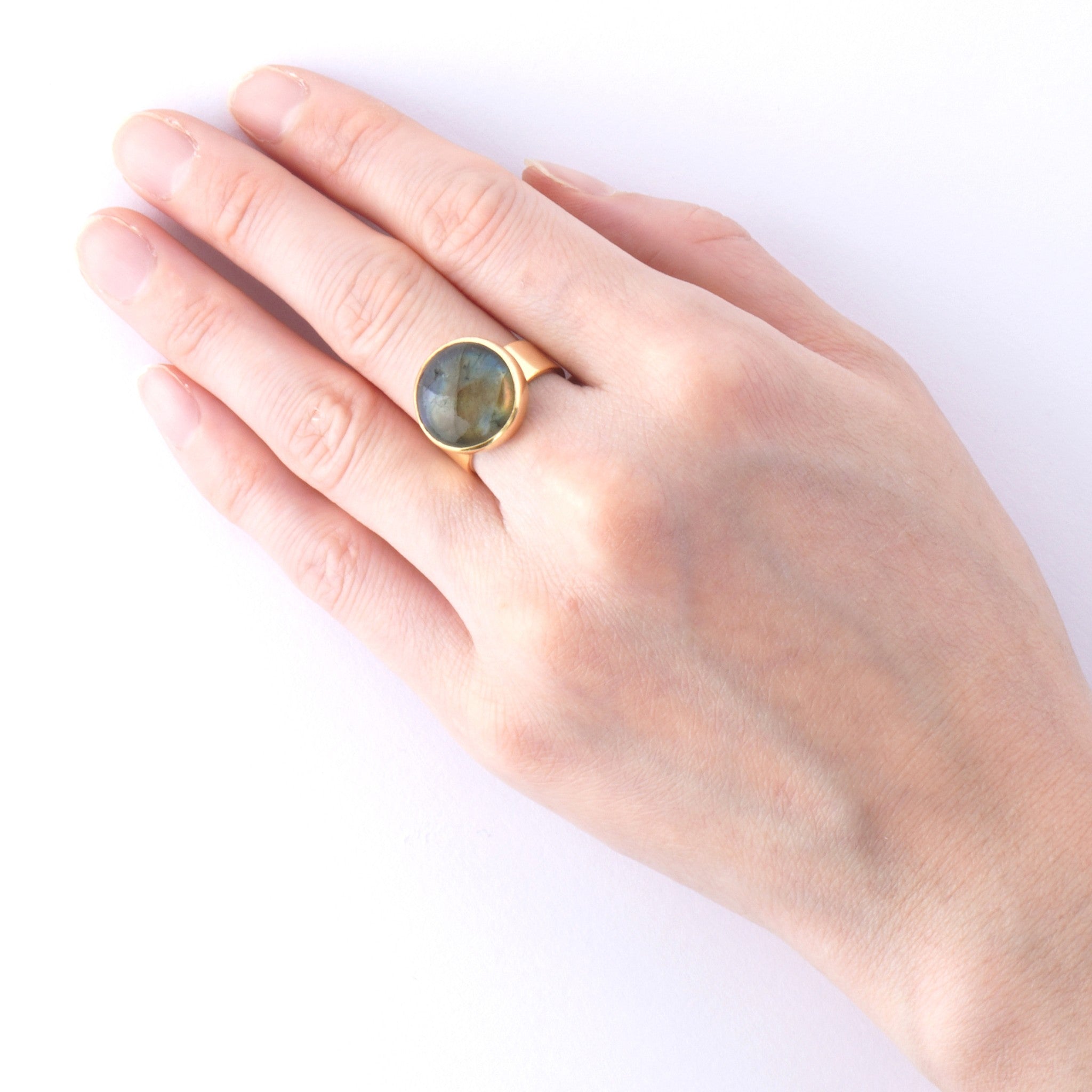 大ぶりの天然石が、まるでアートのように輝くリング。 身に着けるだけで、シンプルなコーデも一気に洗練された印象に。