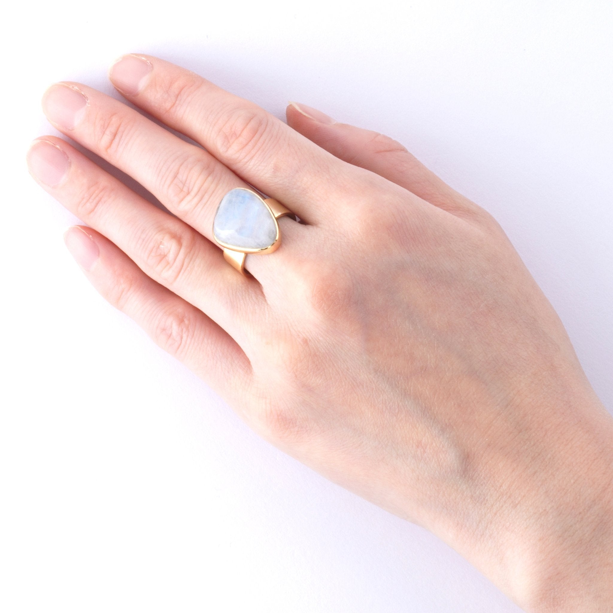 大ぶりの天然石が、まるでアートのように輝くリング。 身に着けるだけで、シンプルなコーデも一気に洗練された印象に。