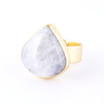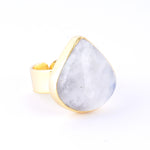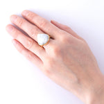 大ぶりの天然石が、まるでアートのように輝くリング。 身に着けるだけで、シンプルなコーデも一気に洗練された印象に。