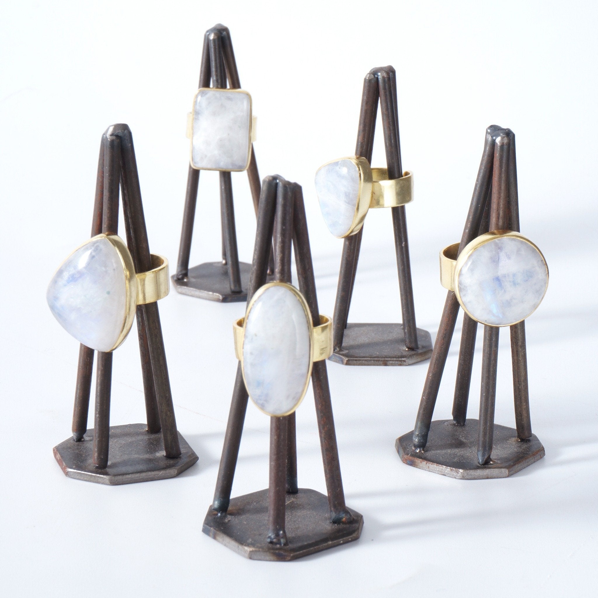 インド・ジャイプールで厳選された良質の天然石。確かな品質をお手頃価格で提供したいという思いから、リングパーツは真鍮を、また自分サイズにアレンジ自由なフリーサイズリングを採用。天然石の形に合わせて、インドの職人が1つ1つ丁寧に作り上げています。全て1点物、色も形も違う、あなただけのオンリーワンジュエリーです。
