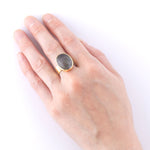 大ぶりの天然石が、まるでアートのように輝くリング。 身に着けるだけで、シンプルなコーデも一気に洗練された印象に。