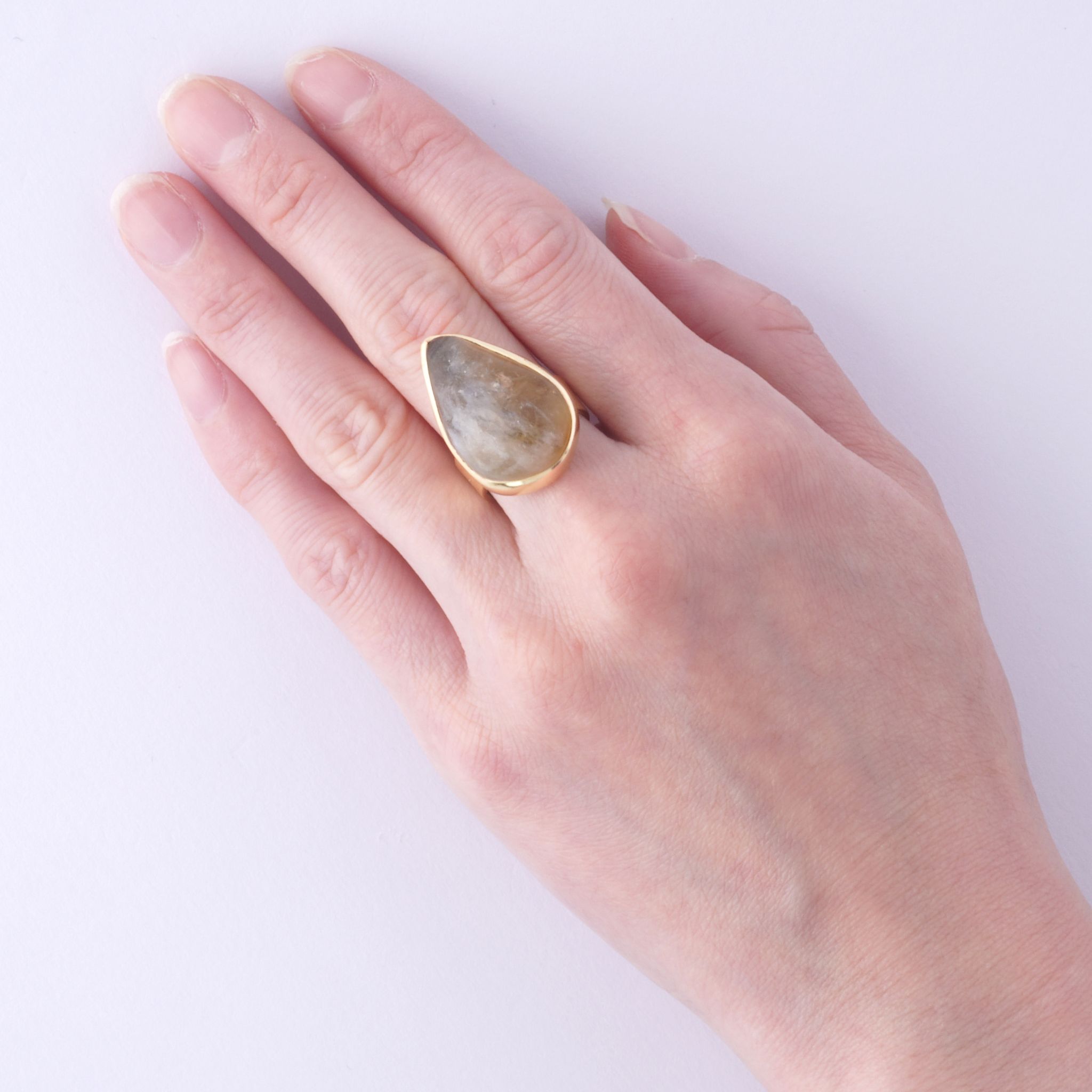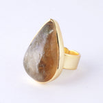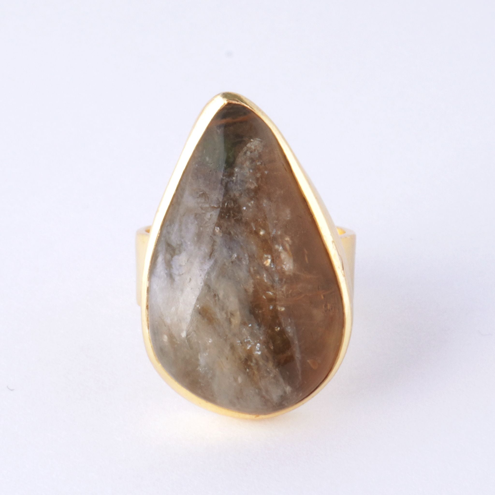大ぶりの天然石が、まるでアートのように輝くリング。 身に着けるだけで、シンプルなコーデも一気に洗練された印象に。