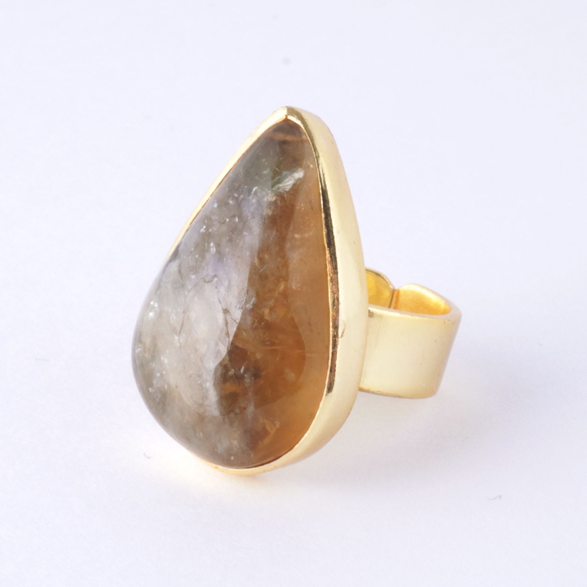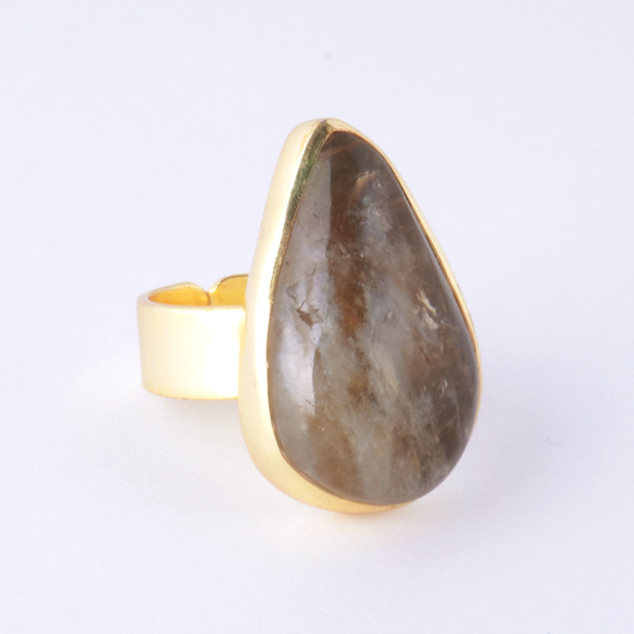 インド・ジャイプールで厳選された良質の天然石。確かな品質をお手頃価格で提供したいという思いから、リングパーツは真鍮を、また自分サイズにアレンジ自由なフリーサイズリングを採用。天然石の形に合わせて、インドの職人が1つ1つ丁寧に作り上げています。全て1点物、色も形も違う、あなただけのオンリーワンジュエリーです。