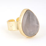 大ぶりの天然石が、まるでアートのように輝くリング。 身に着けるだけで、シンプルなコーデも一気に洗練された印象に。