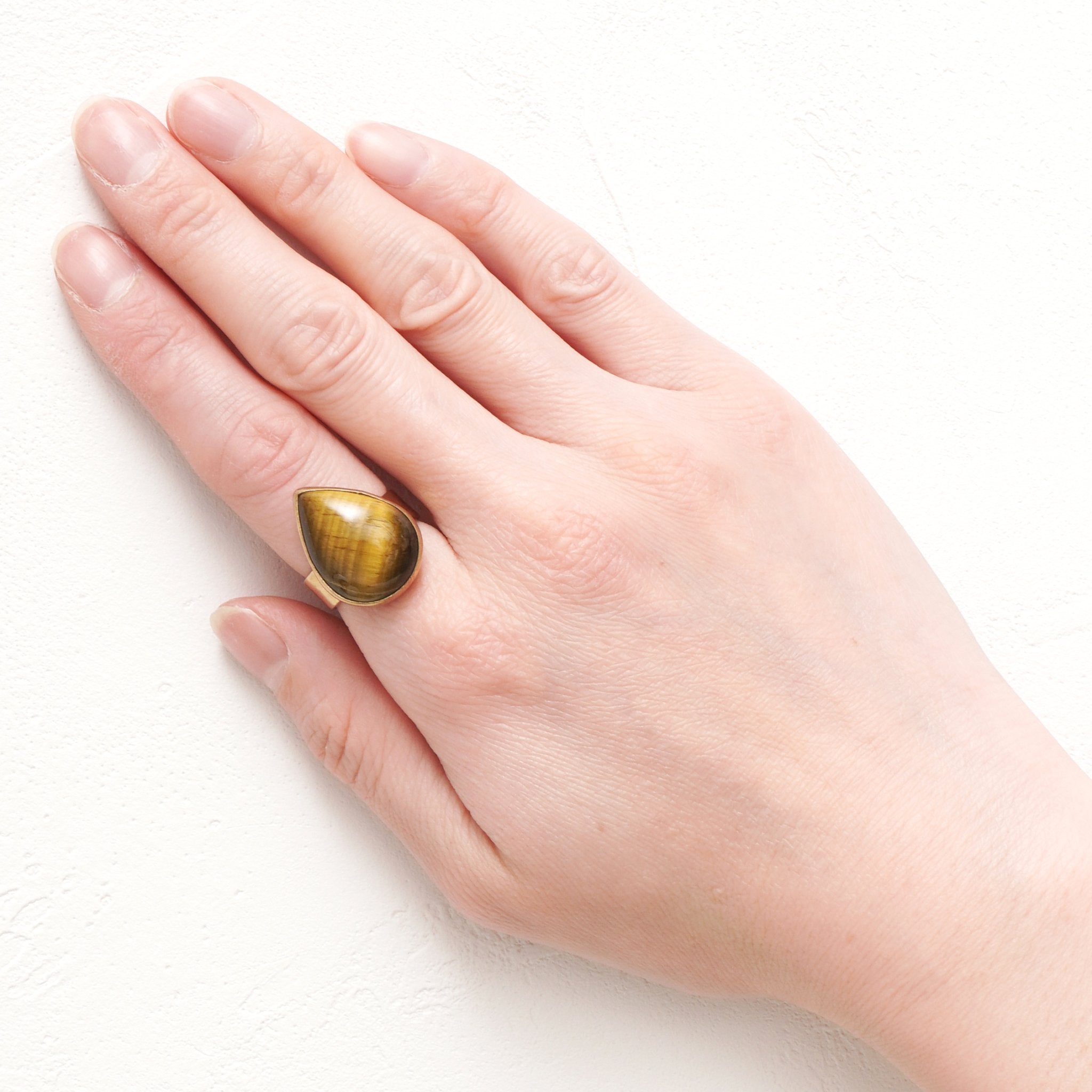 シンプルなフォルムの中に、天然石の個性とゴールドの上品な光沢が際立つデザイン。角度によって異なる表情を見せる天然石の魅力を、ぜひ指先で感じてみて。