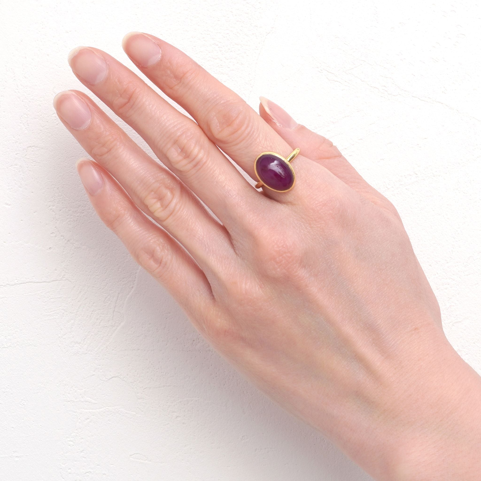 インド・ジャイプールで厳選された良質の天然石。確かな品質をお手頃価格で提供したいという思いから、リングパーツは真鍮を、また自分サイズにアレンジ自由なフリーサイズリングを採用。天然石の形に合わせて、インドの職人が1つ1つ丁寧に作り上げています。全て1点物、色も形も違う、あなただけのオンリーワンジュエリーです。