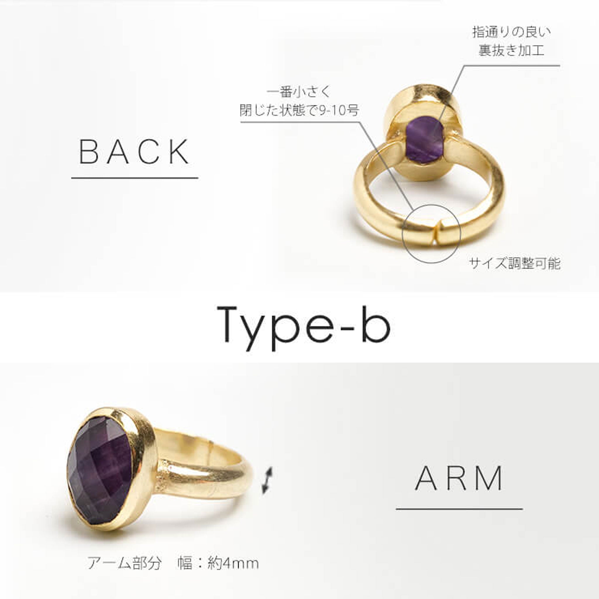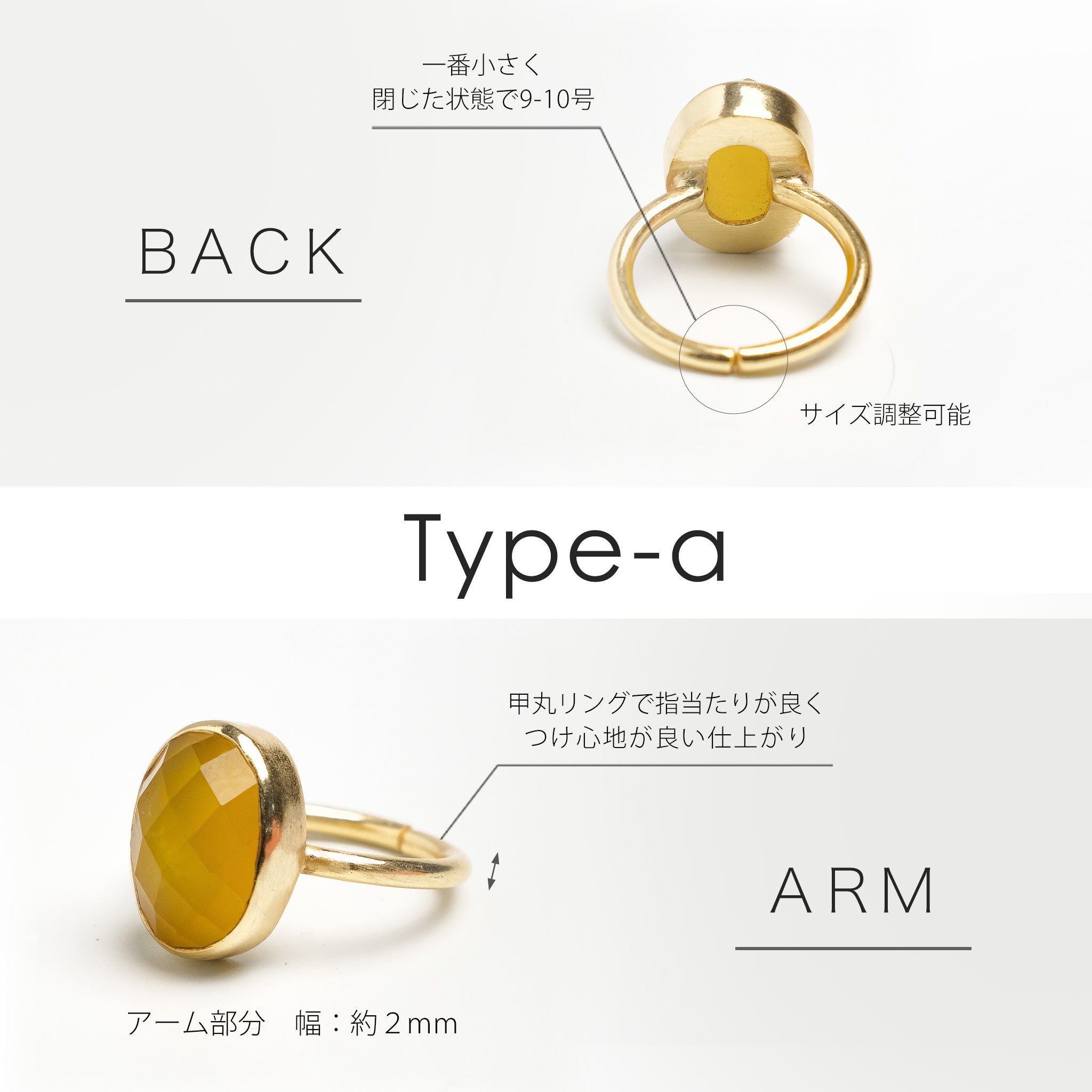 シンプルなフォルムの中に、天然石の個性とゴールドの上品な光沢が際立つデザイン。角度によって異なる表情を見せる天然石の魅力を、ぜひ指先で感じてみて。