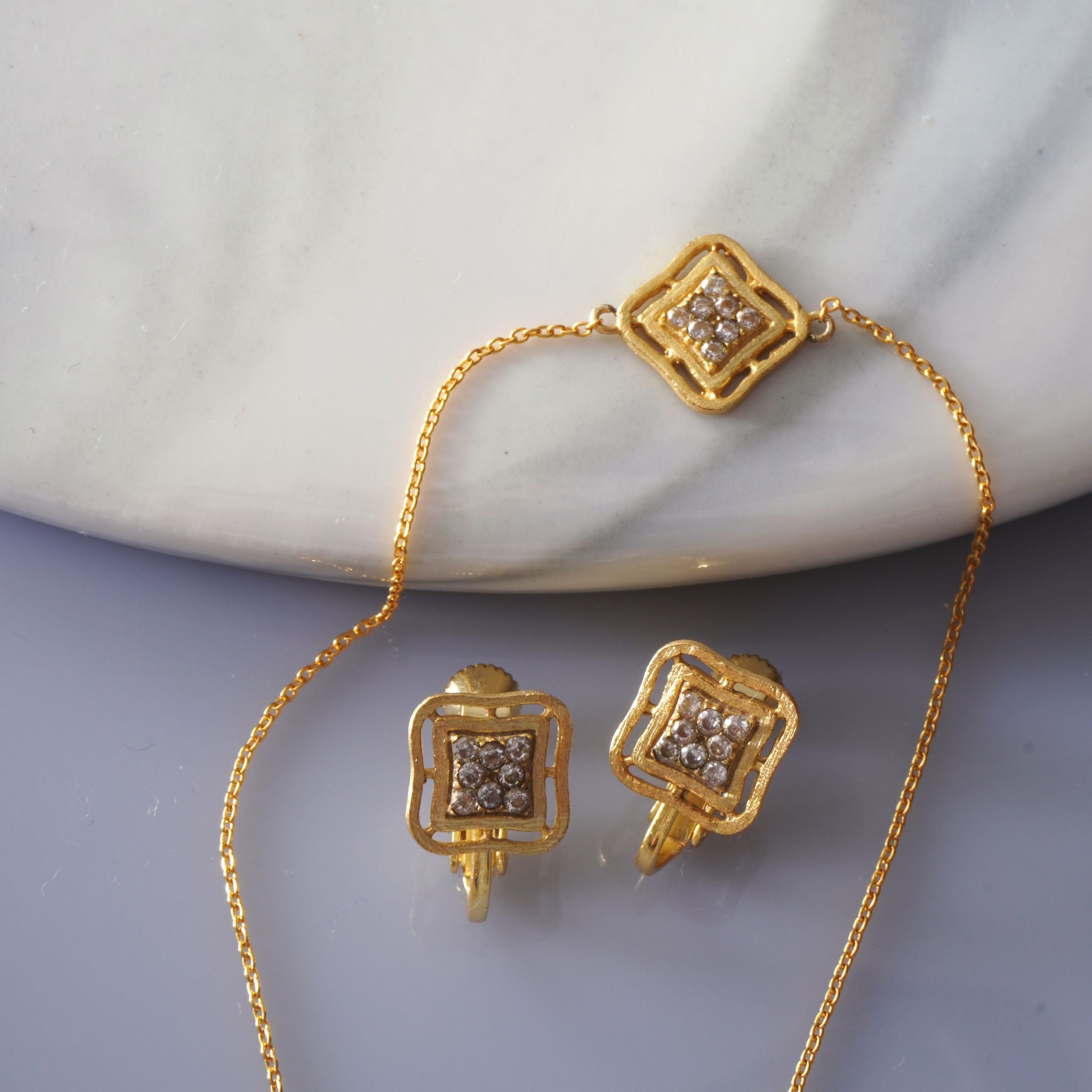 インド・ジャイプールの熟練の職人が一点ずつ丁寧に手作業で仕上げています。ガラスや天然石をセットし、ひとつひとつ磨き上げることで、 機械では出せない温もりと、指に馴染む優しい着け心地 が実現。