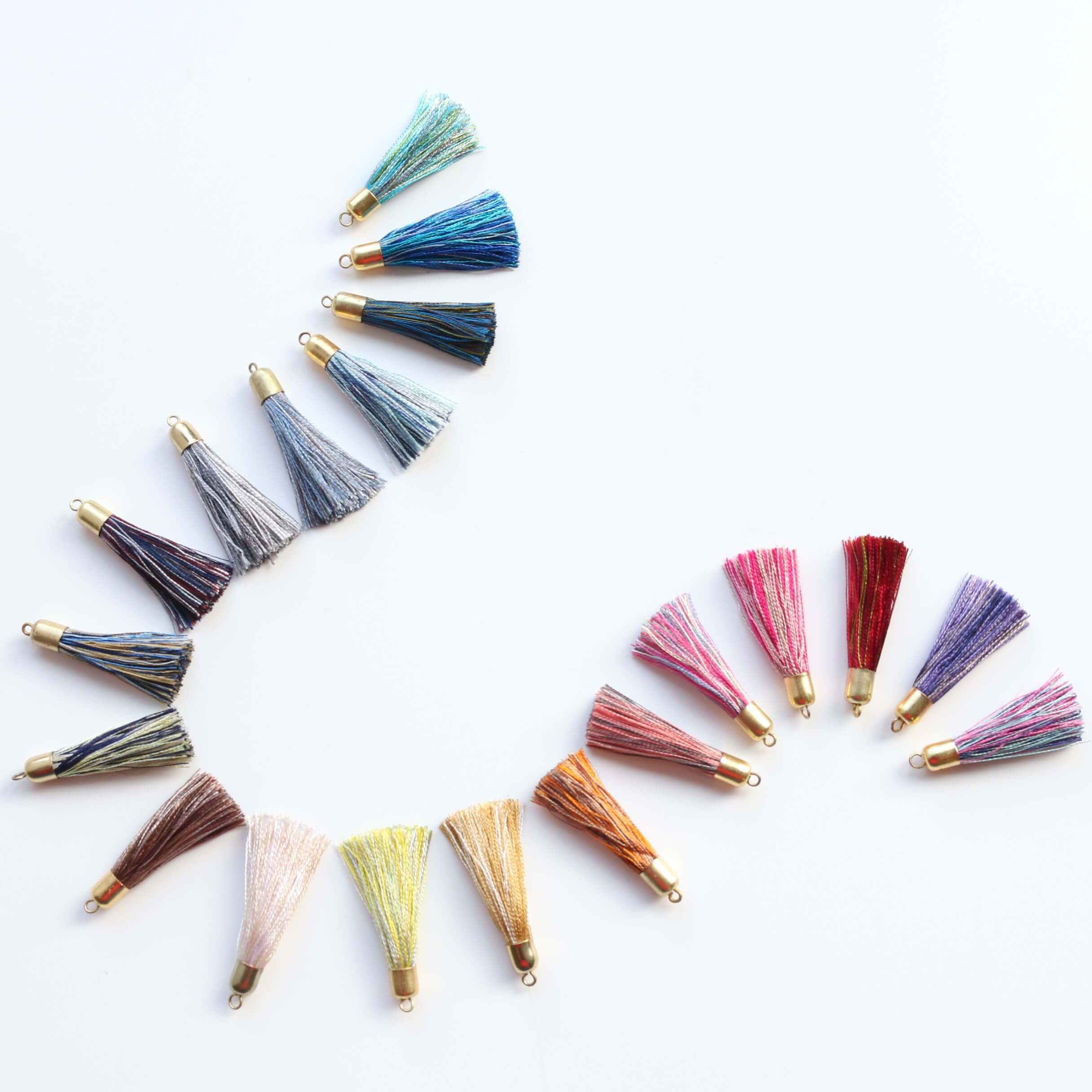 インドの職人が一本ずつ丁寧に束ねたタッセルは柔らかなタッチが特徴。繊細な糸のグラデーションが、美しい動きを生み出します。ハンドメイドならではの柔らかな風合いと、絶妙なカラーリングが魅力。