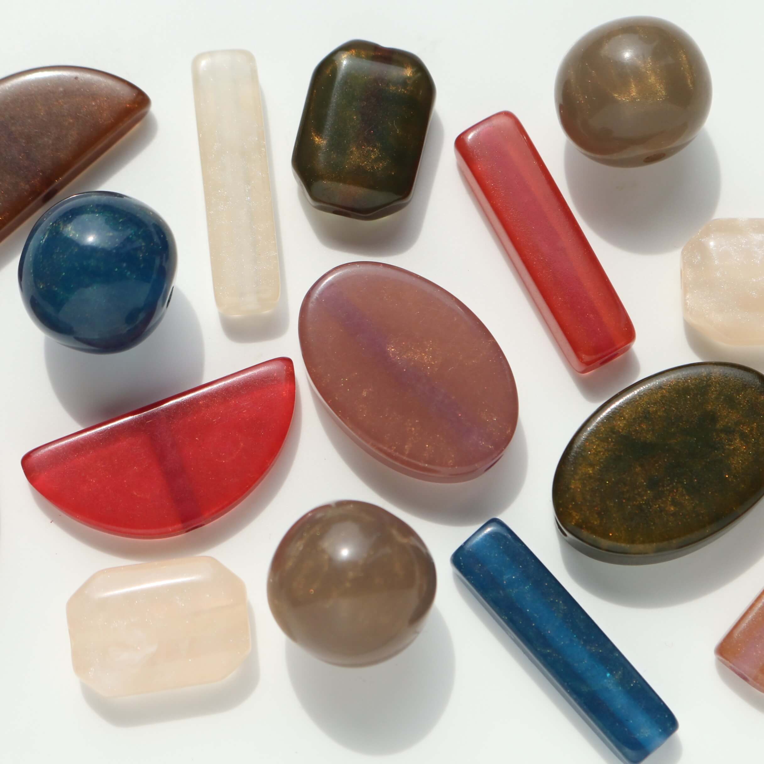 大地のエネルギーを感じる、レジンビーズ。独特の色味や模様は、一つとして同じものがなく、まさに世界にひとつだけの特別なパーツです。ナチュラルな風合いが魅力で、シンプルなアクセサリーに奥行きをプラス。
