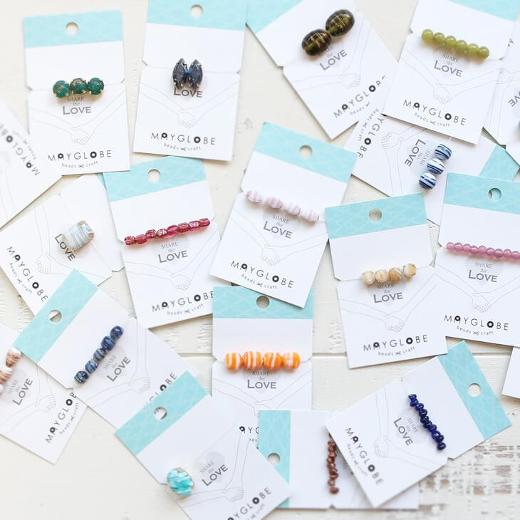 選びやすく、ギフトにもぴったりなパッケージデザインは、ビーズの美しさを引き立てるシンプルな仕様。「SHARE LOVE」 のメッセージが込められたデザインは、ビーズを通じて手仕事の温もりや愛を感じていただけるように仕上げました。このパッケージを開ける瞬間のワクワク感とともに、手作りの楽しさを存分に味わってください。