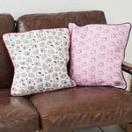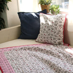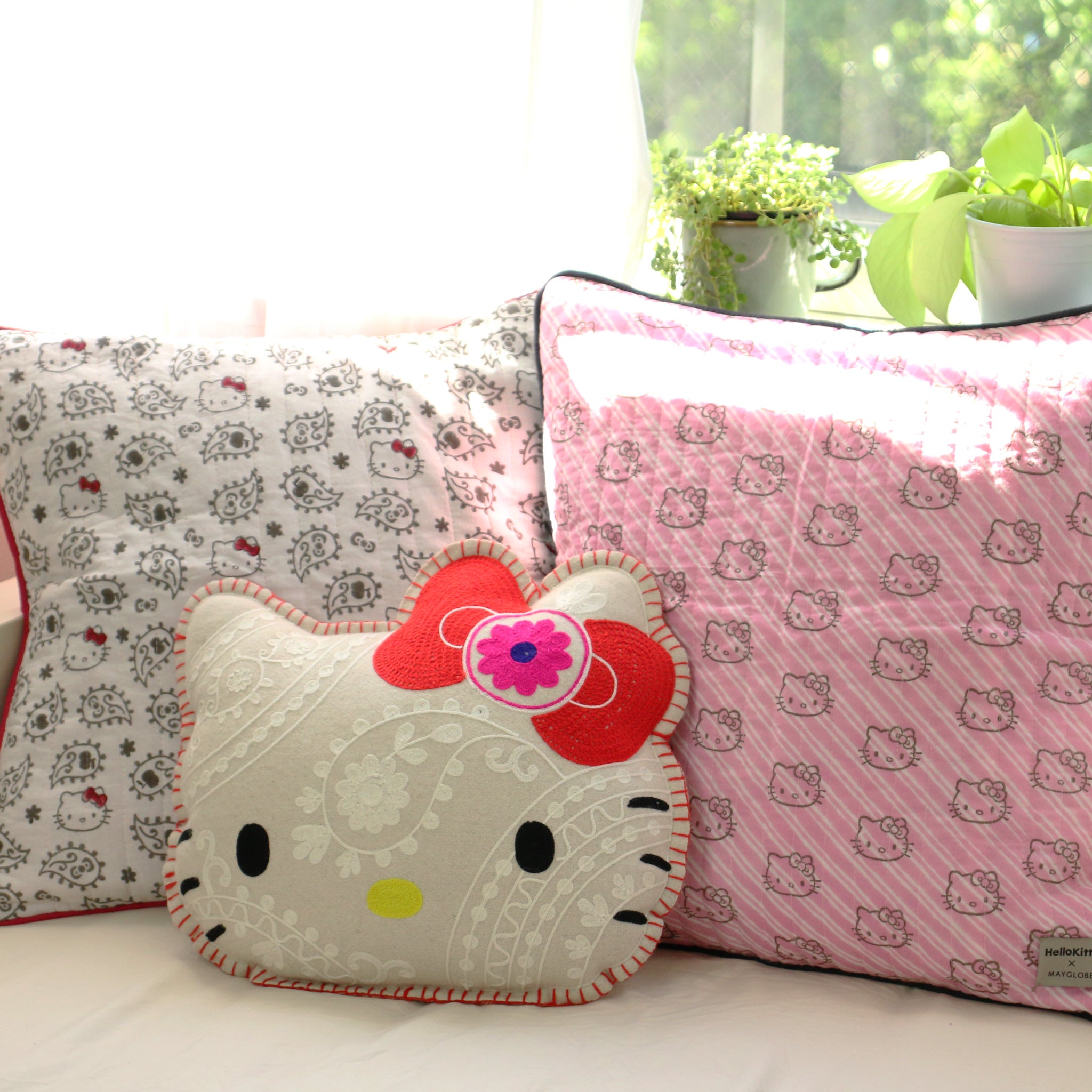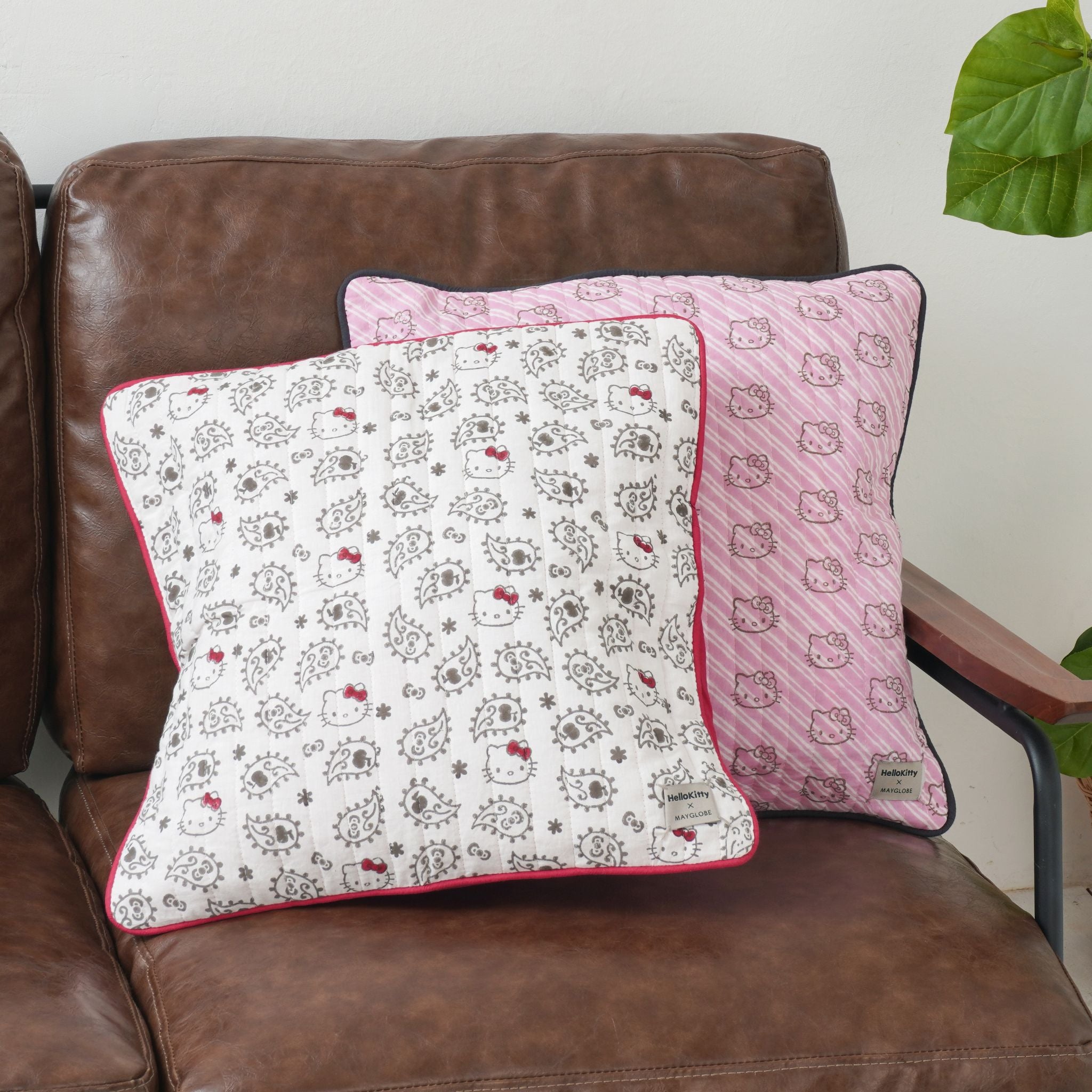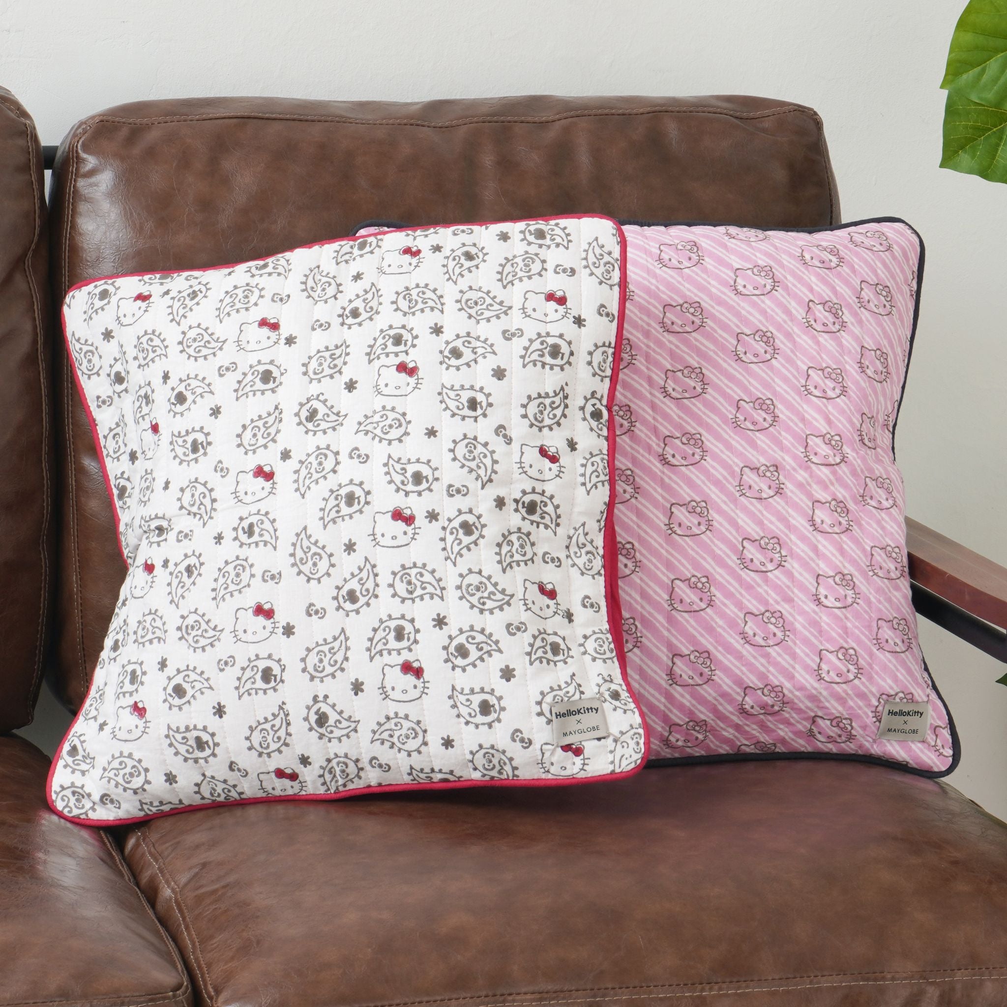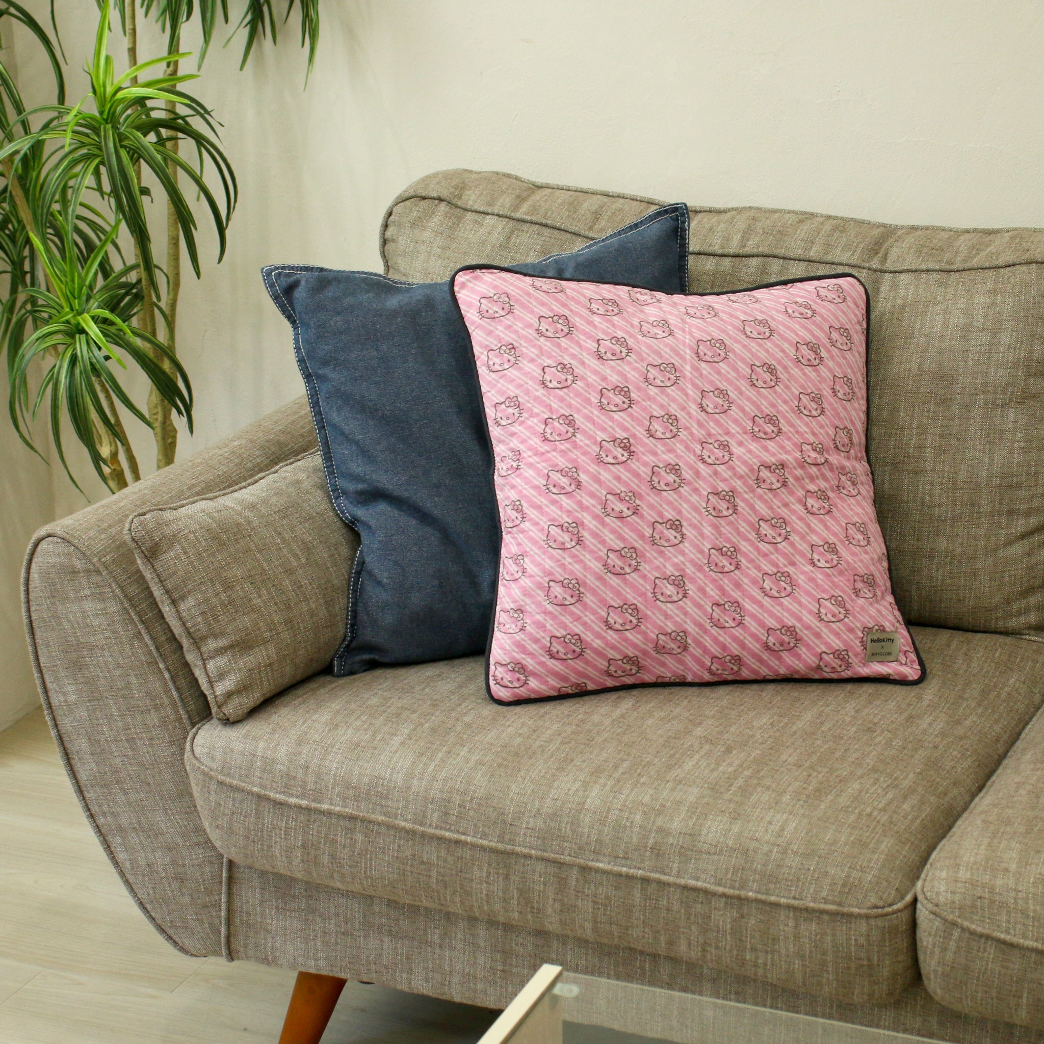 インドで起源前から語り継がれていると言われているブロックプリントという技法で作ったハローキティの生地をクッションカバーにしました。ハローキティとキルティングの柔らかい風合いがお部屋をかわいらしいくぬくもりのある雰囲気にします。