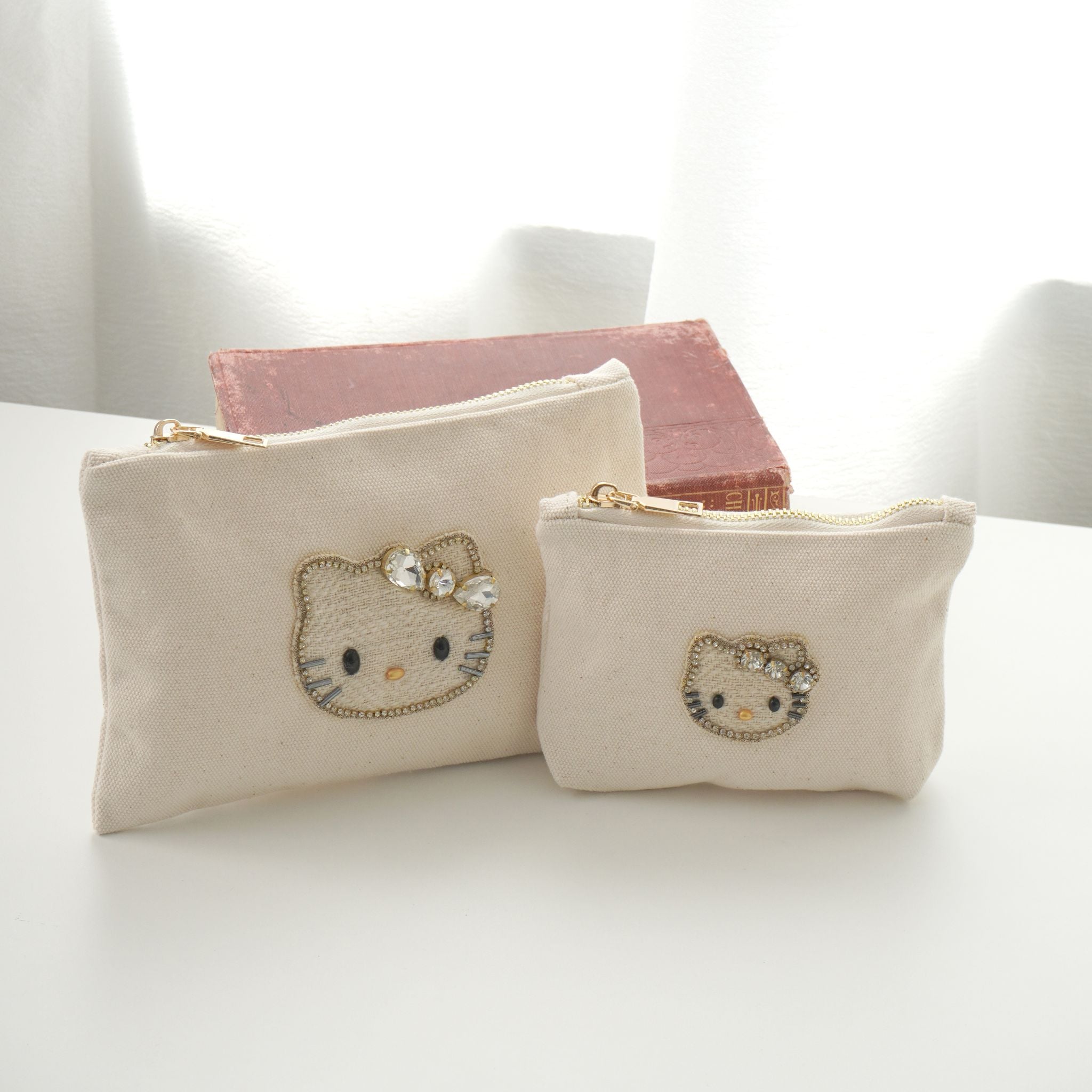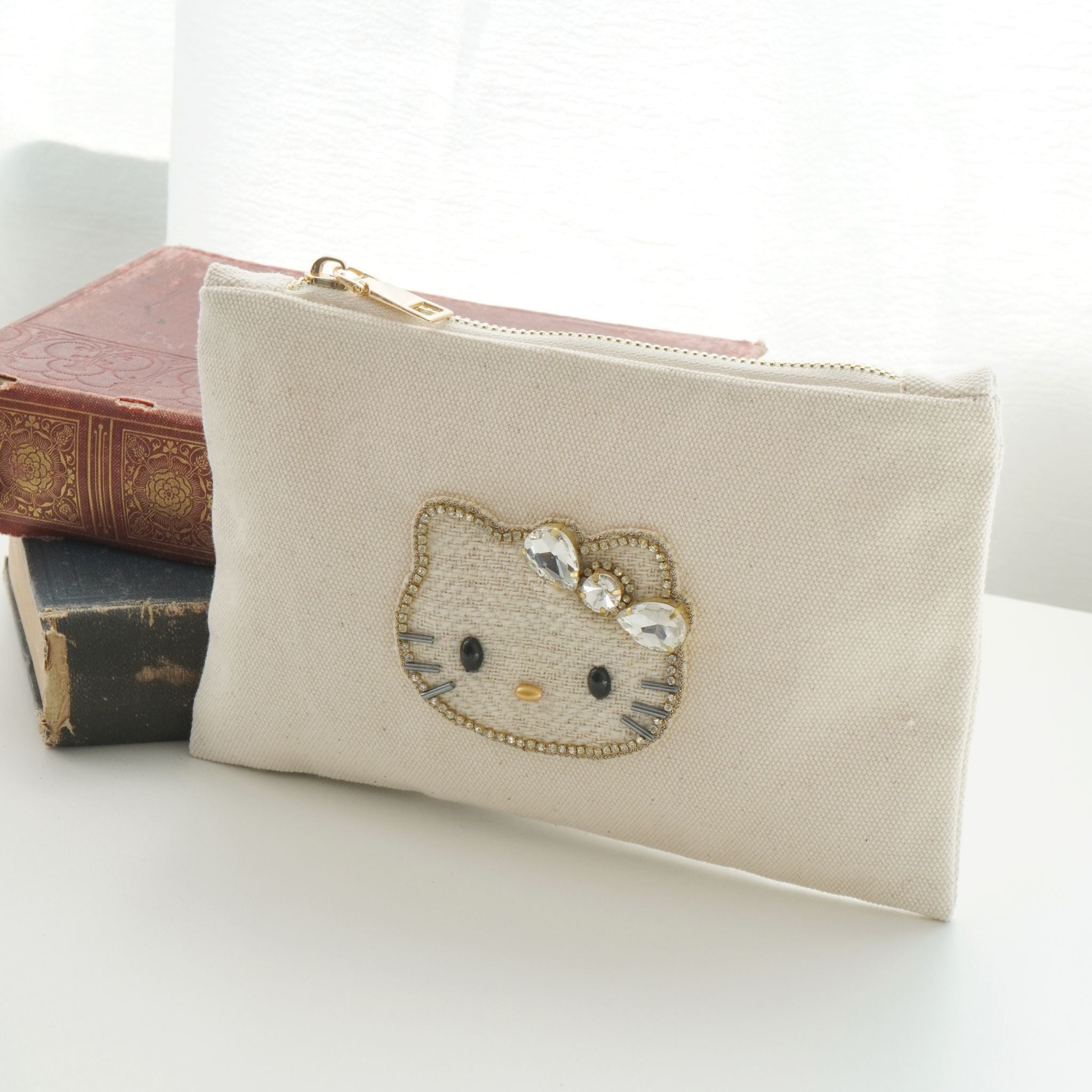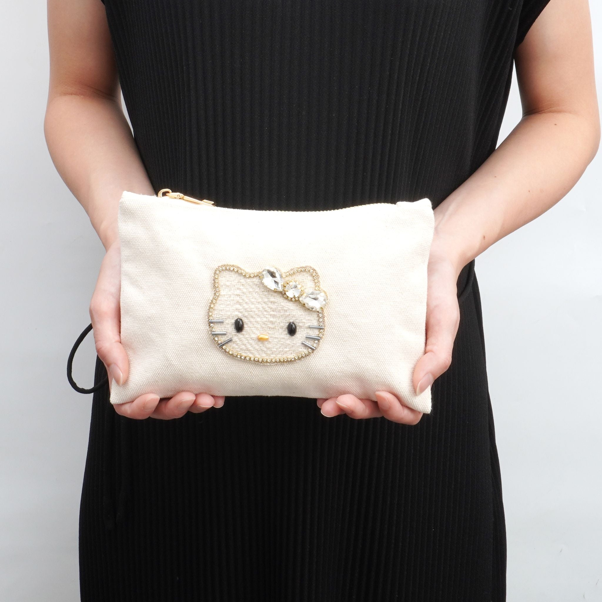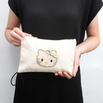 ビーズ刺繍モチーフ ハローキティ キャンバスポーチ(L)