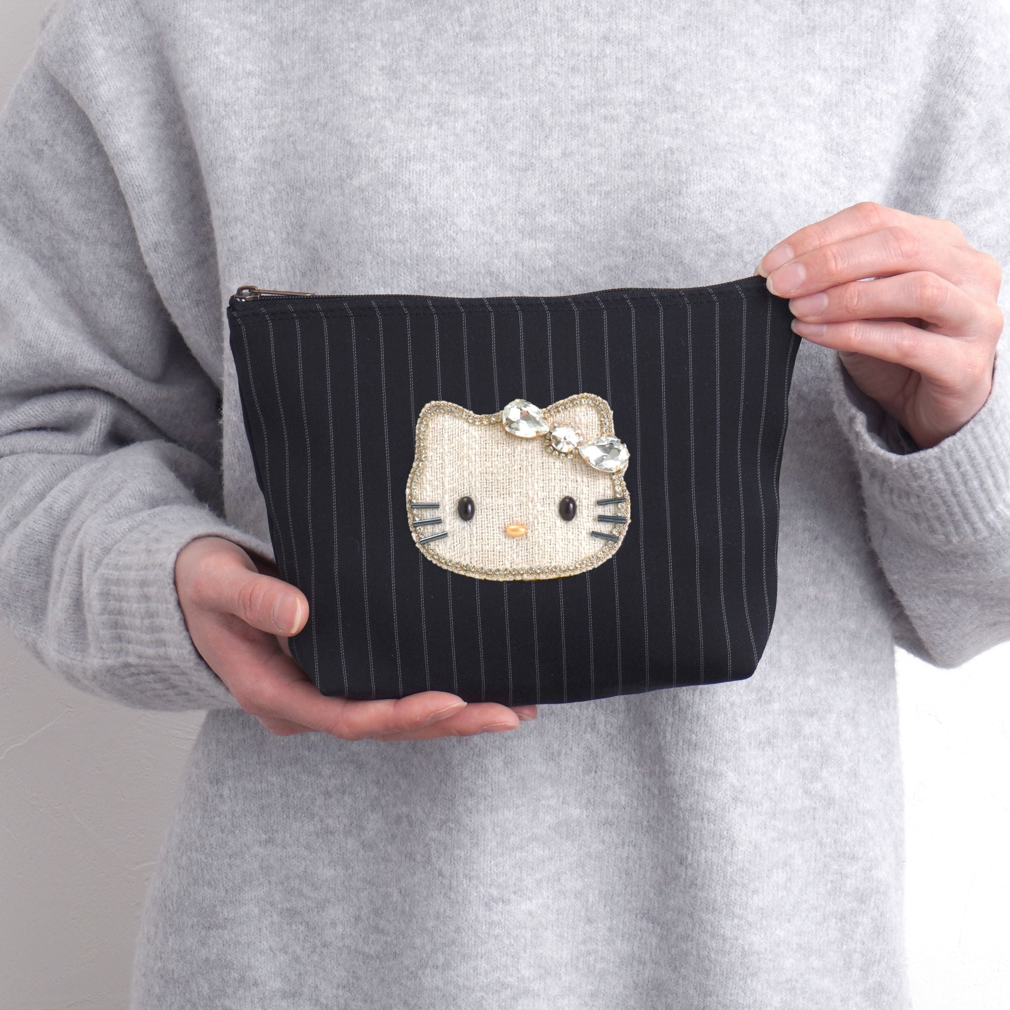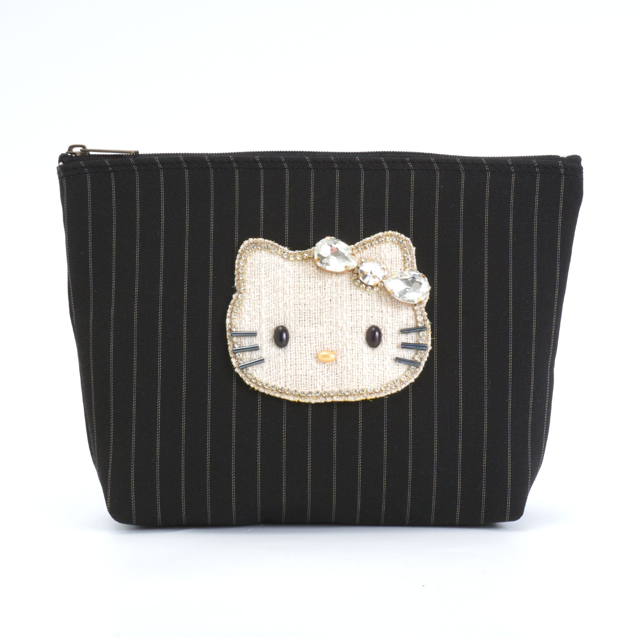シックでスタイリッシュな大人のハローキティのストライプ柄ポーチ。