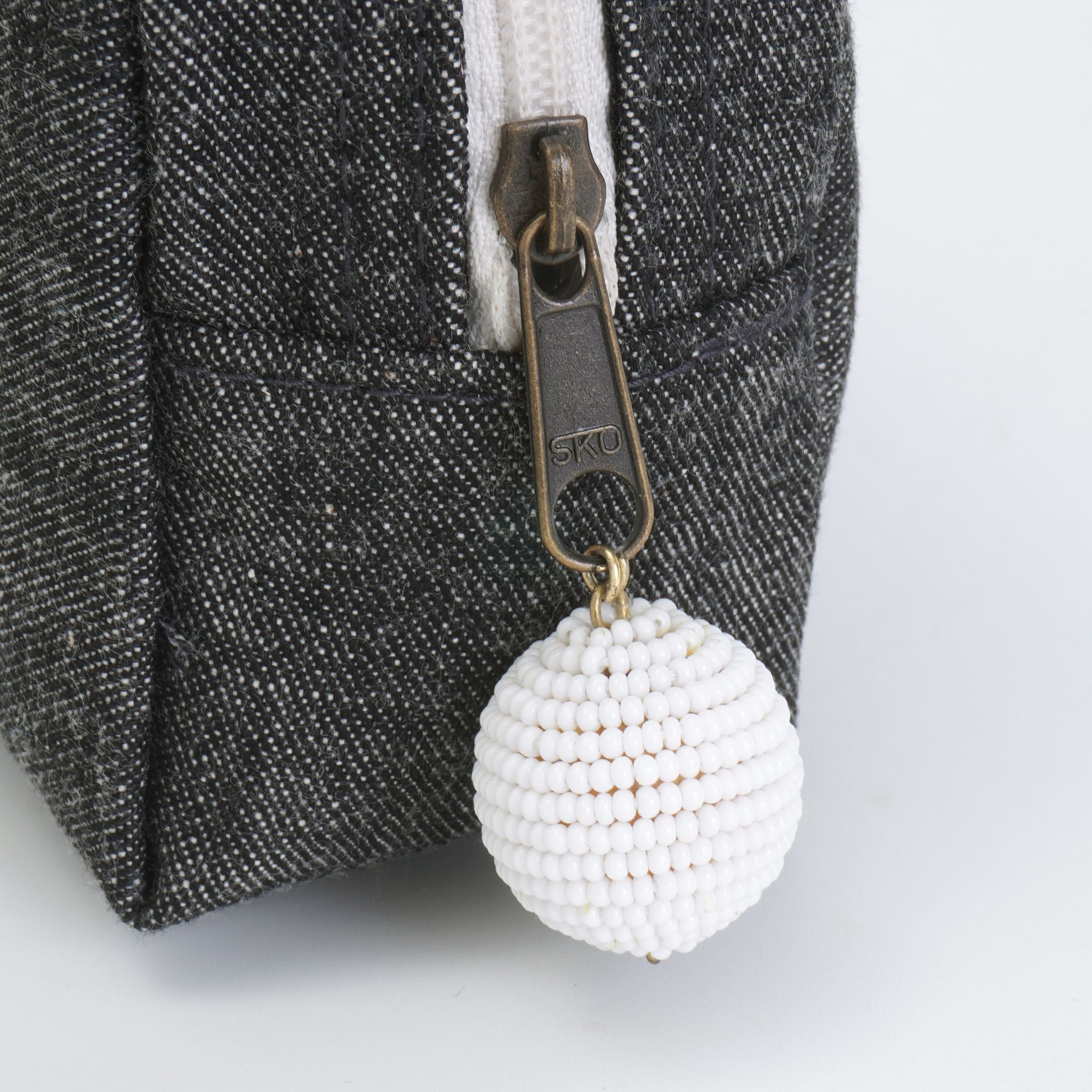 愛らしいまんまるチャームは、インドの職人による丁寧な手仕事によるもの。シンプルなデニムに遊びゴコロ添え、指先にふれるたび、気分もほんのりアップするような“かわいい実用性”を兼ね備えたディテール。
