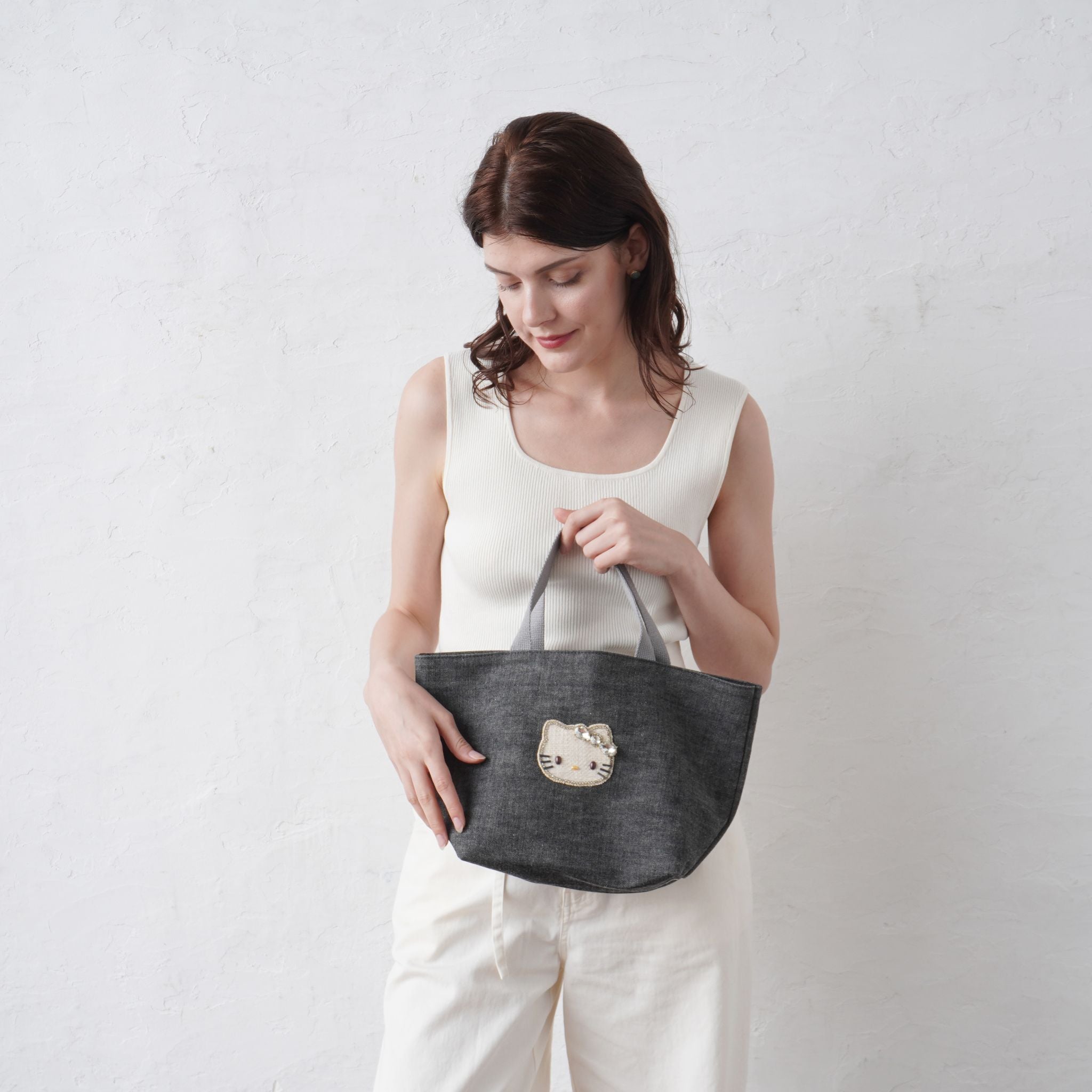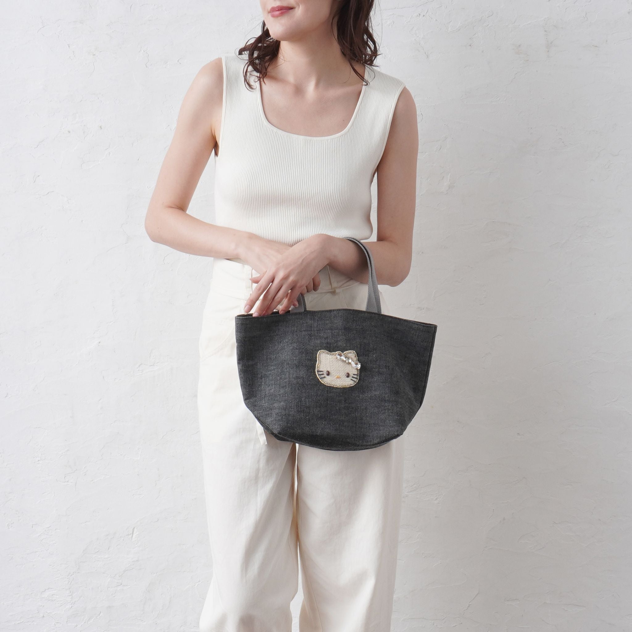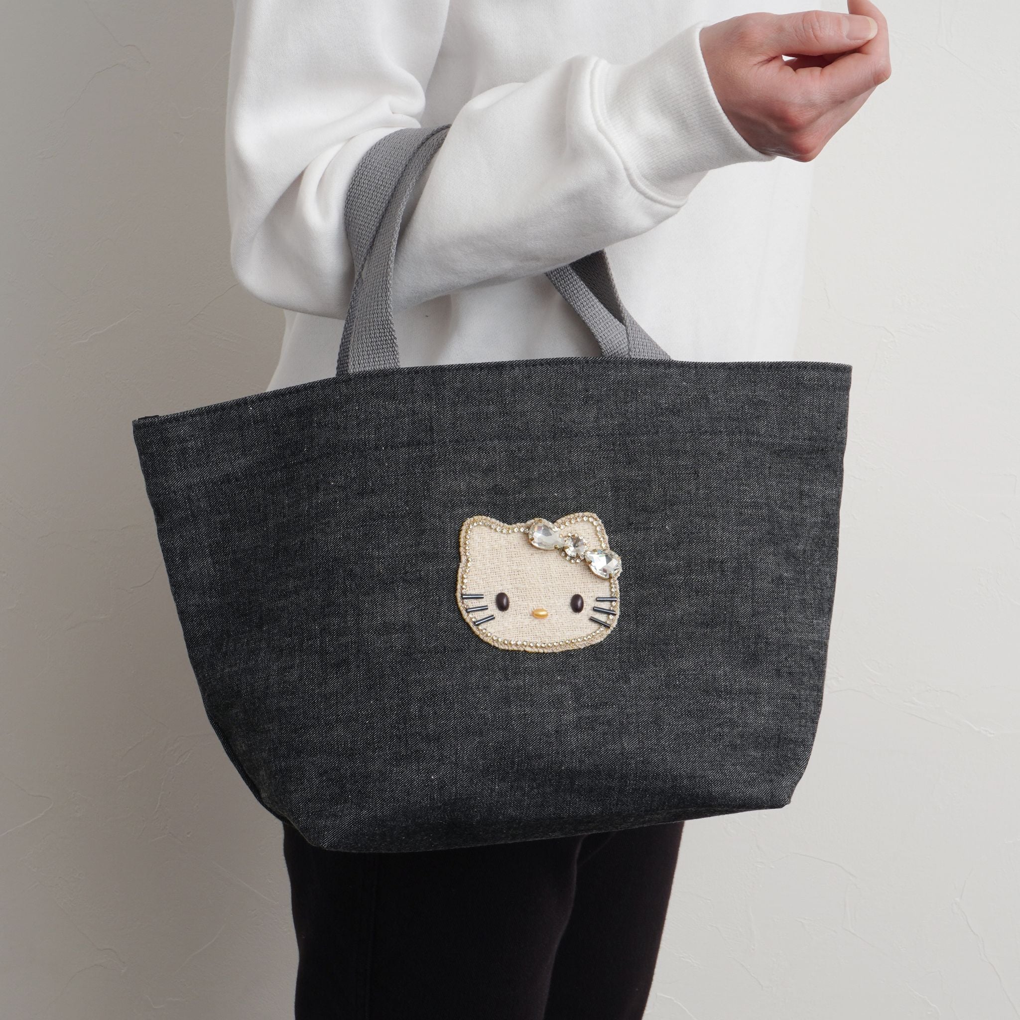 キティの愛らしさと、デニムのカジュアルさのバランスが絶妙で、年齢やファッションを問わず、自然に日常に溶け込みます。