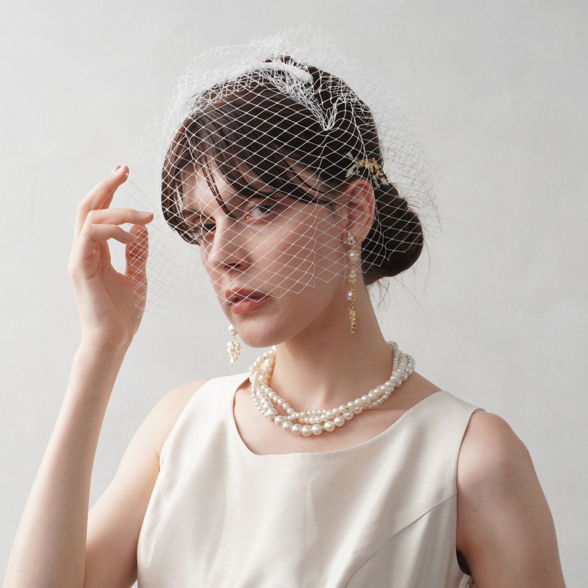 透明感のあるビジューとパールで上品な印象に。パーティー・結婚式など特別な日を彩ります。