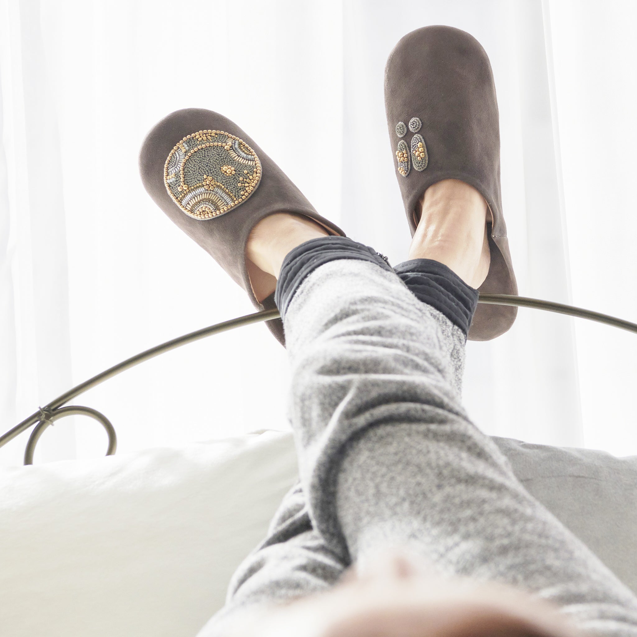 ただ履くだけで、気分が上がるラグジュアリー。リラックス空間に、さりげなくエレガンスを取り入れませんか?ちょっとした来客時にも品よく映える一足。足元から贅沢な気分を味わえる、大人のためのバブーシュです。