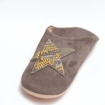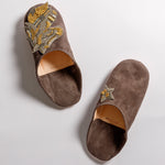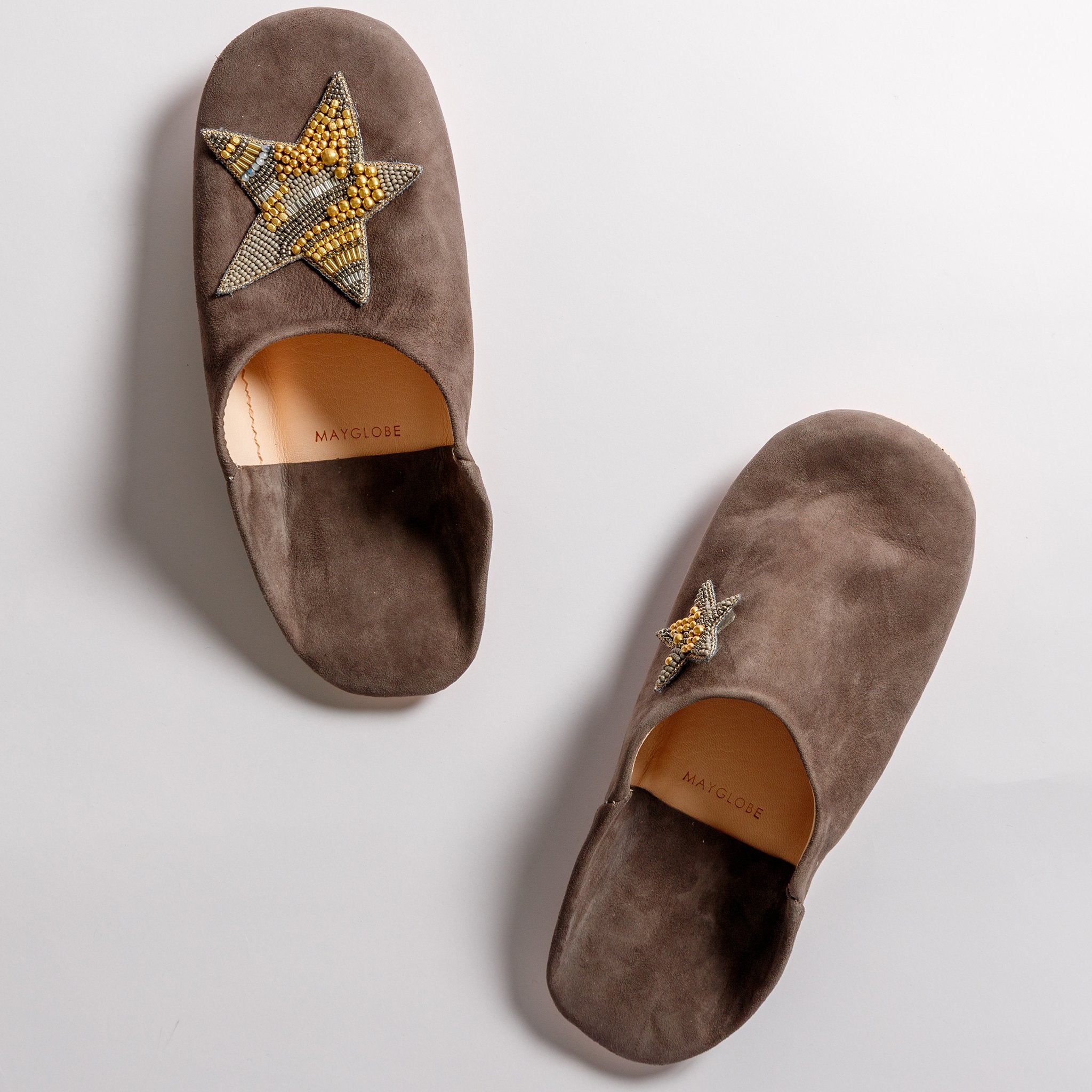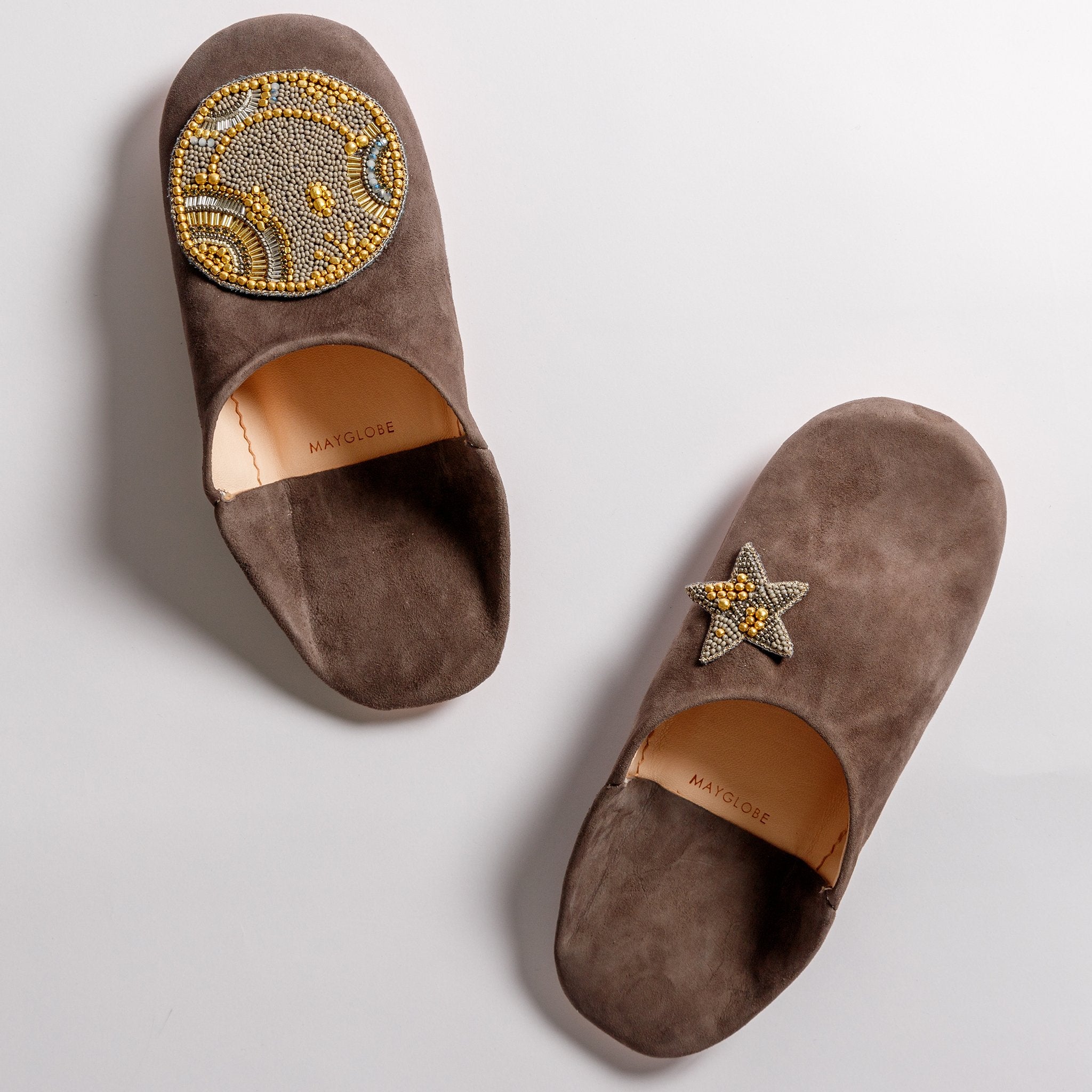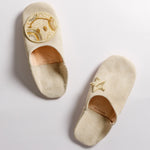 モロッコの伝統的なスリッパのことで、かかとを踏んで履くスタイルが特徴のルームシューズです。羊革や牛革などの天然素材を使用し、足に馴染む柔らかさと履き心地の良さが魅力です。