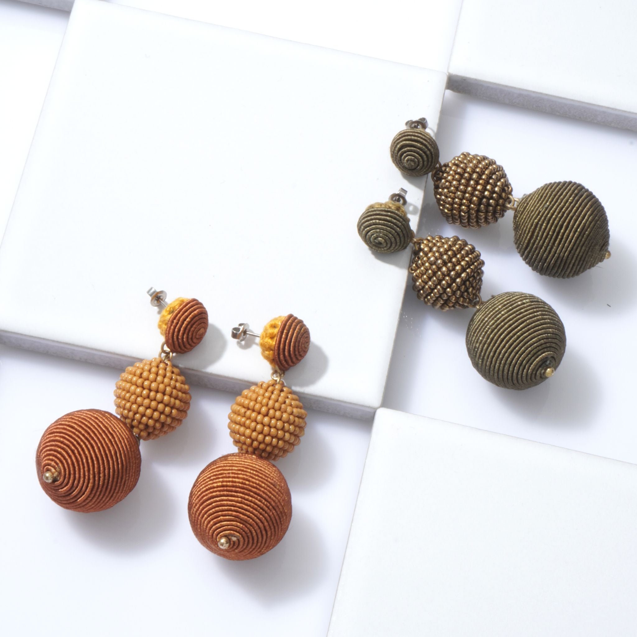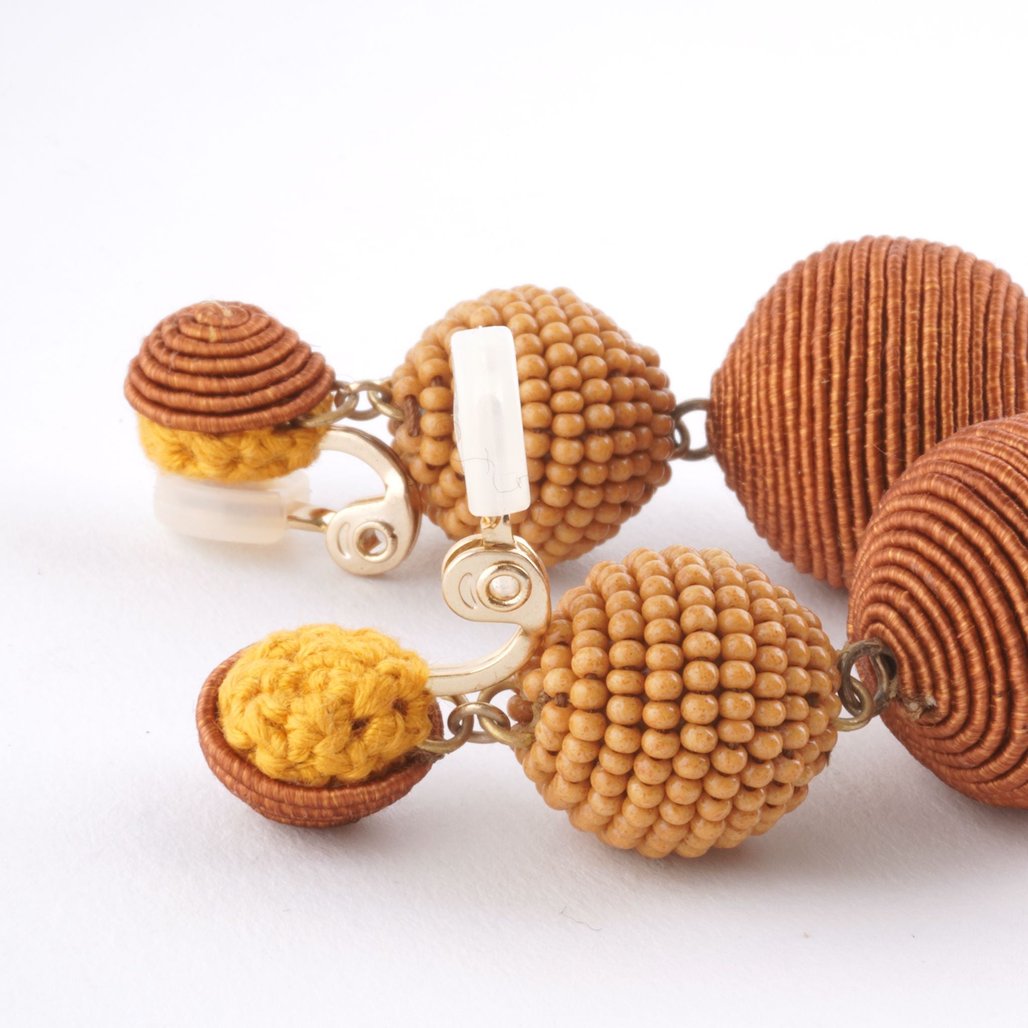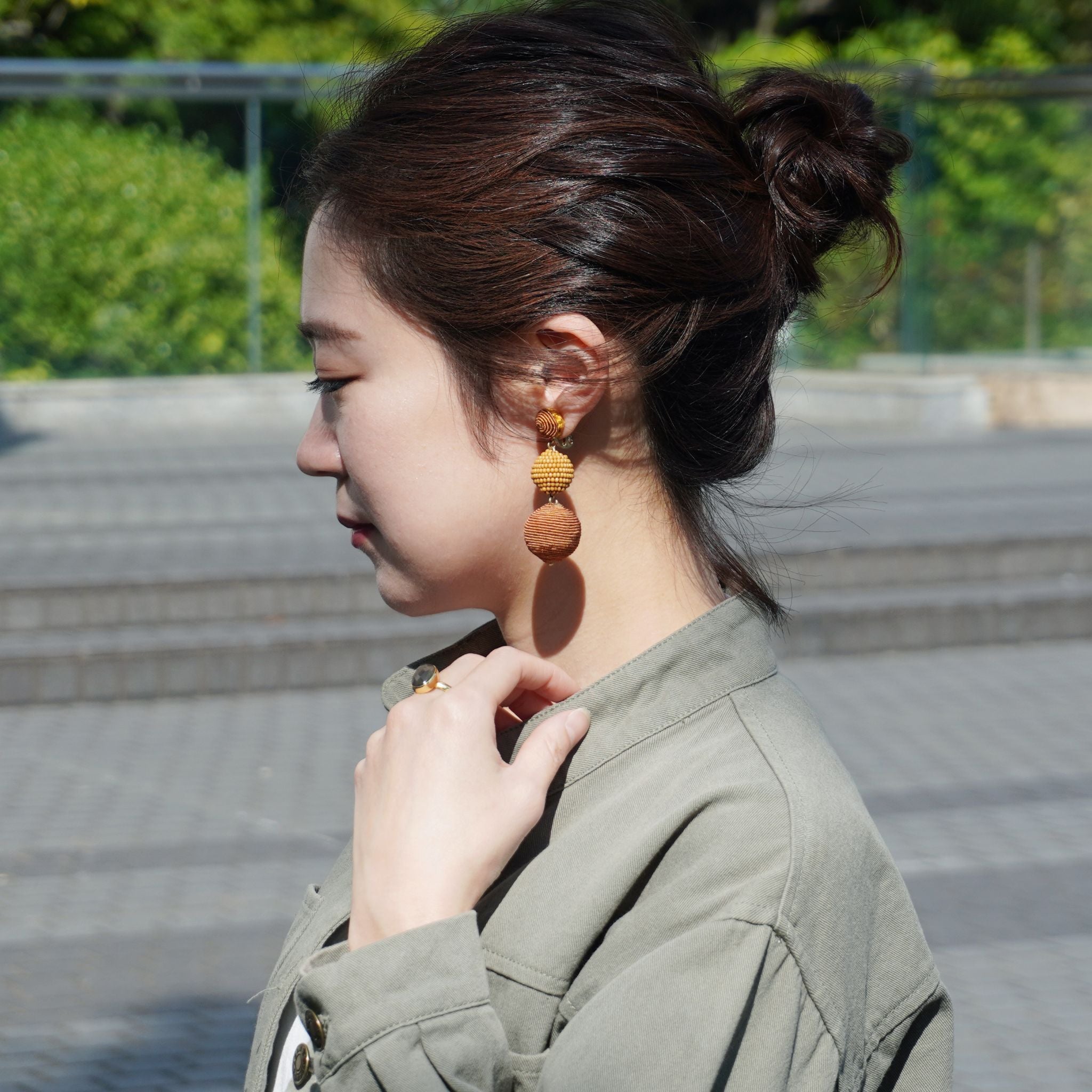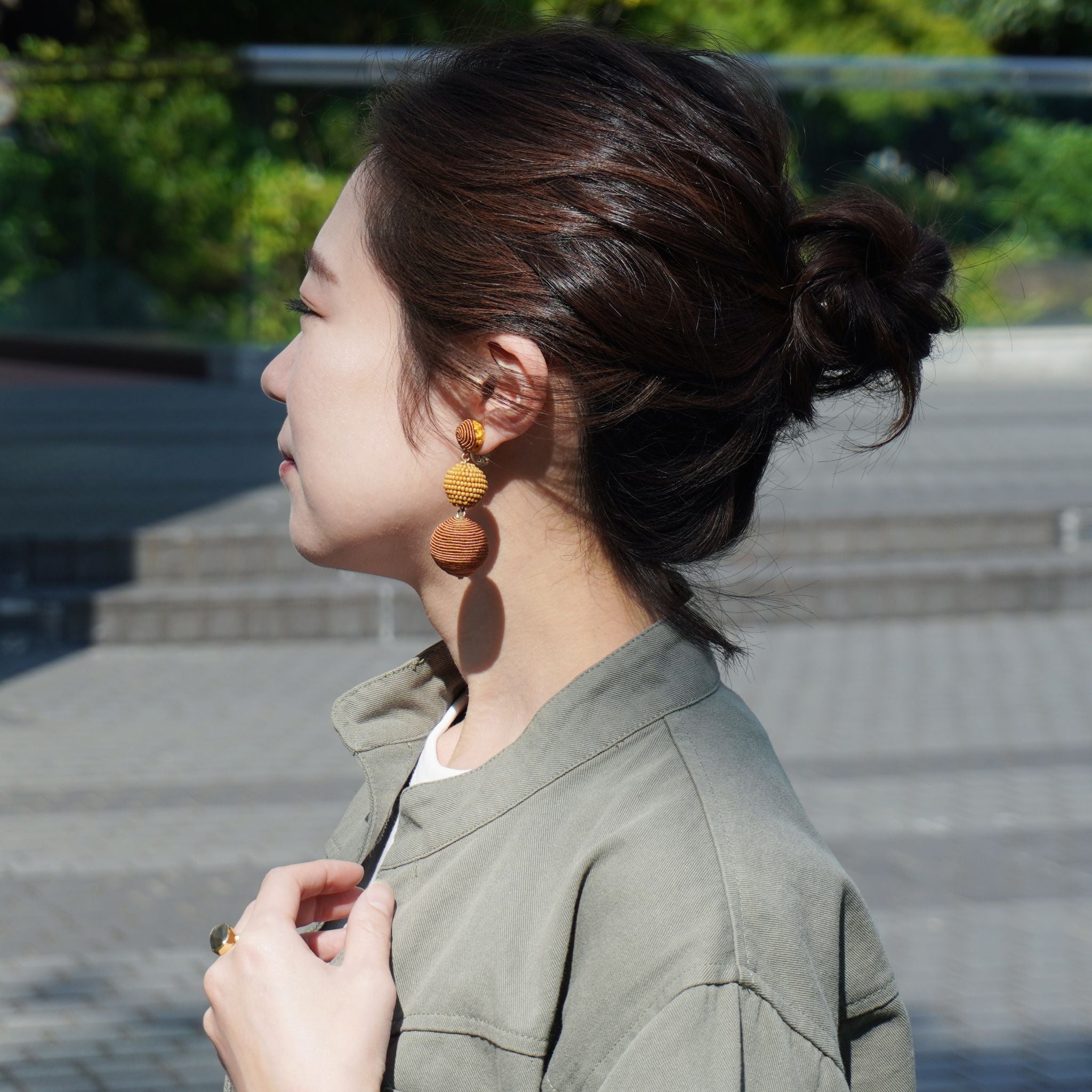 大きめのボンボンモチーフがゆらゆらと揺れ存在感があります。合わせやすい大人っぽいカラーリングなので、デイリーに使いまわせます。パーティーシーンにもおすめ。