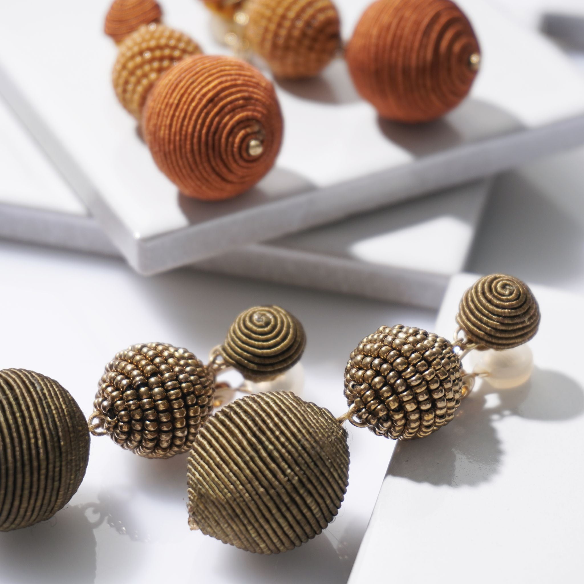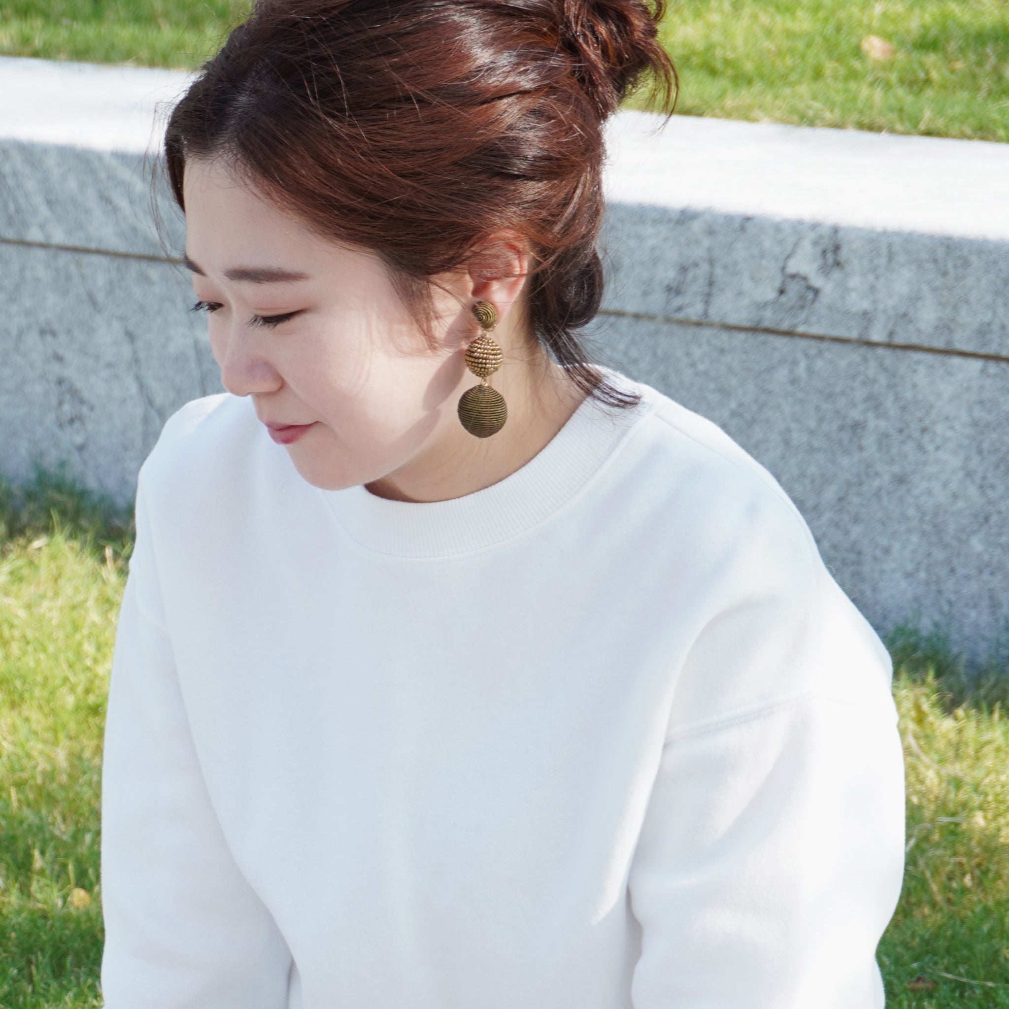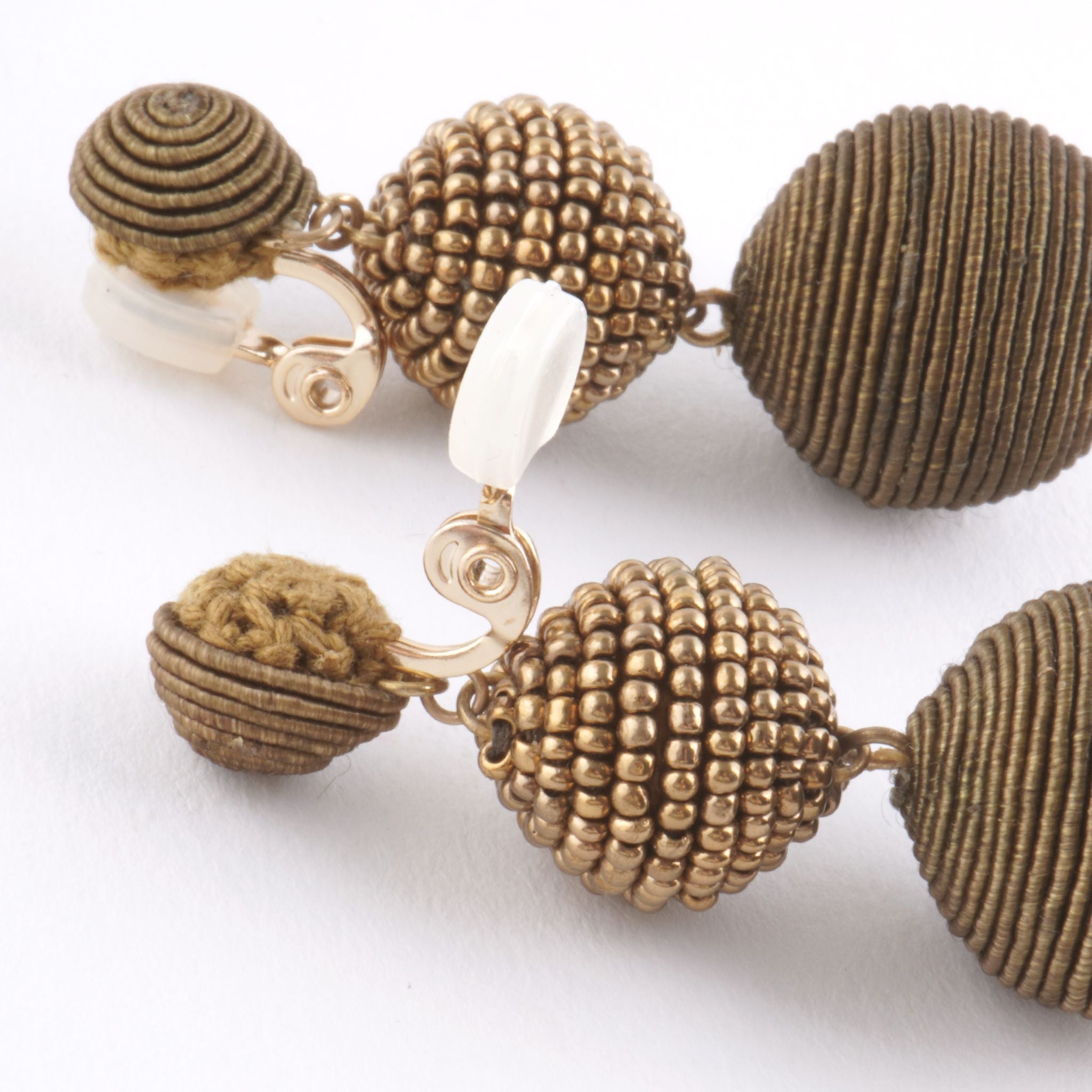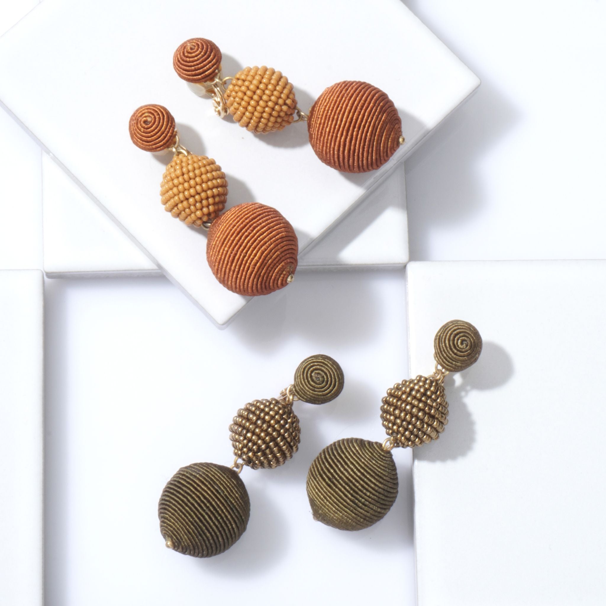 大きめのボンボンモチーフがゆらゆらと揺れ存在感があります。合わせやすい大人っぽいカラーリングなので、デイリーに使いまわせます。パーティーシーンにもおすめ。