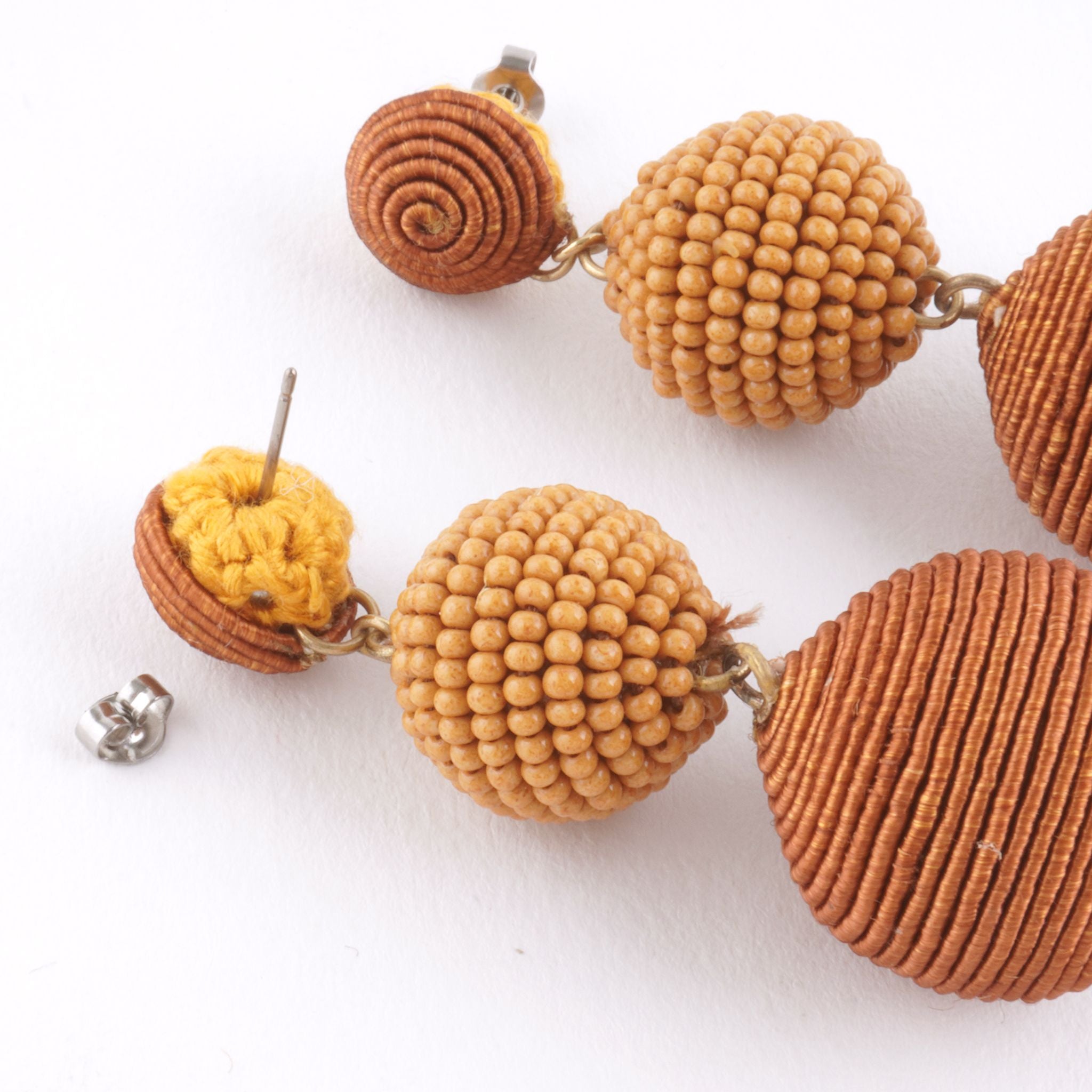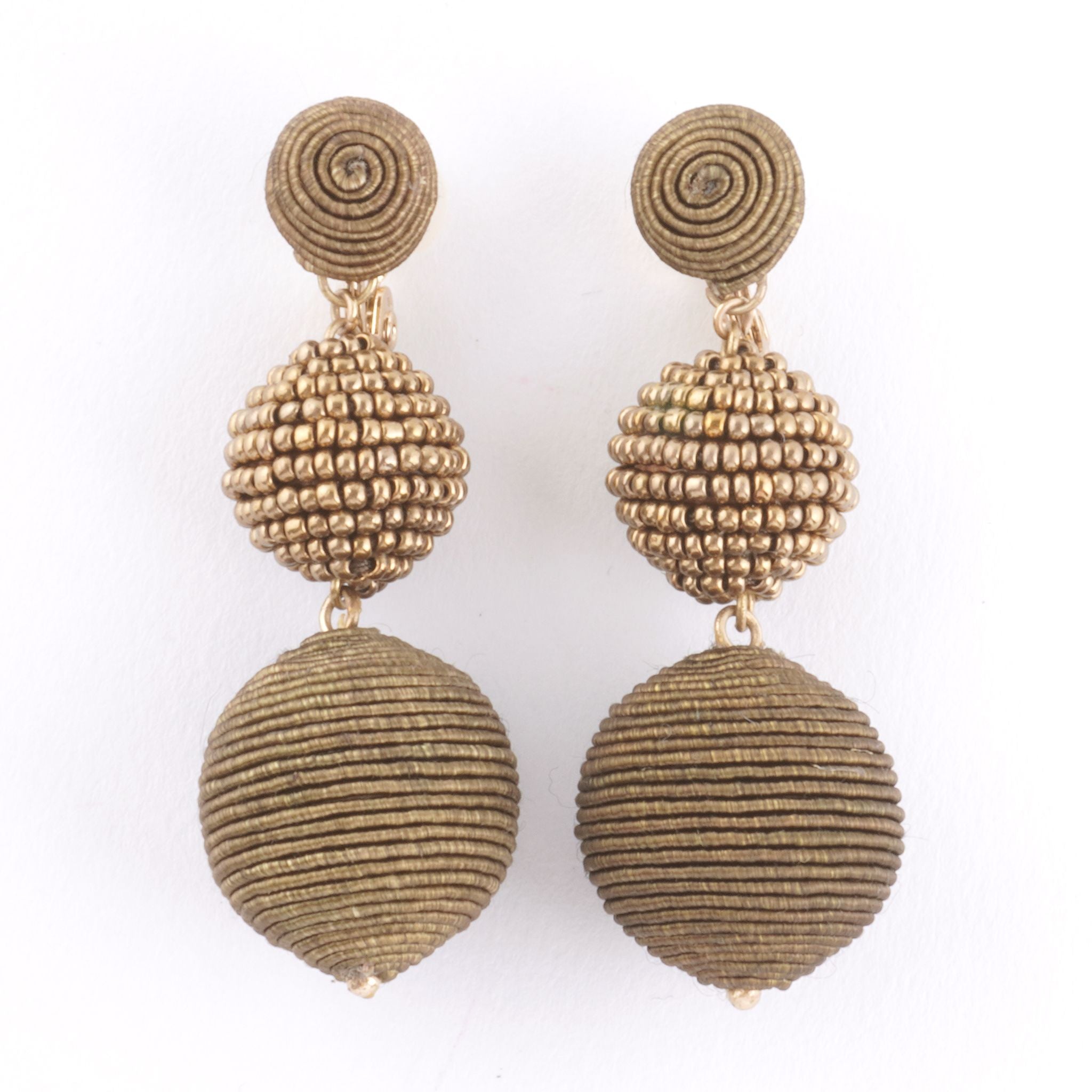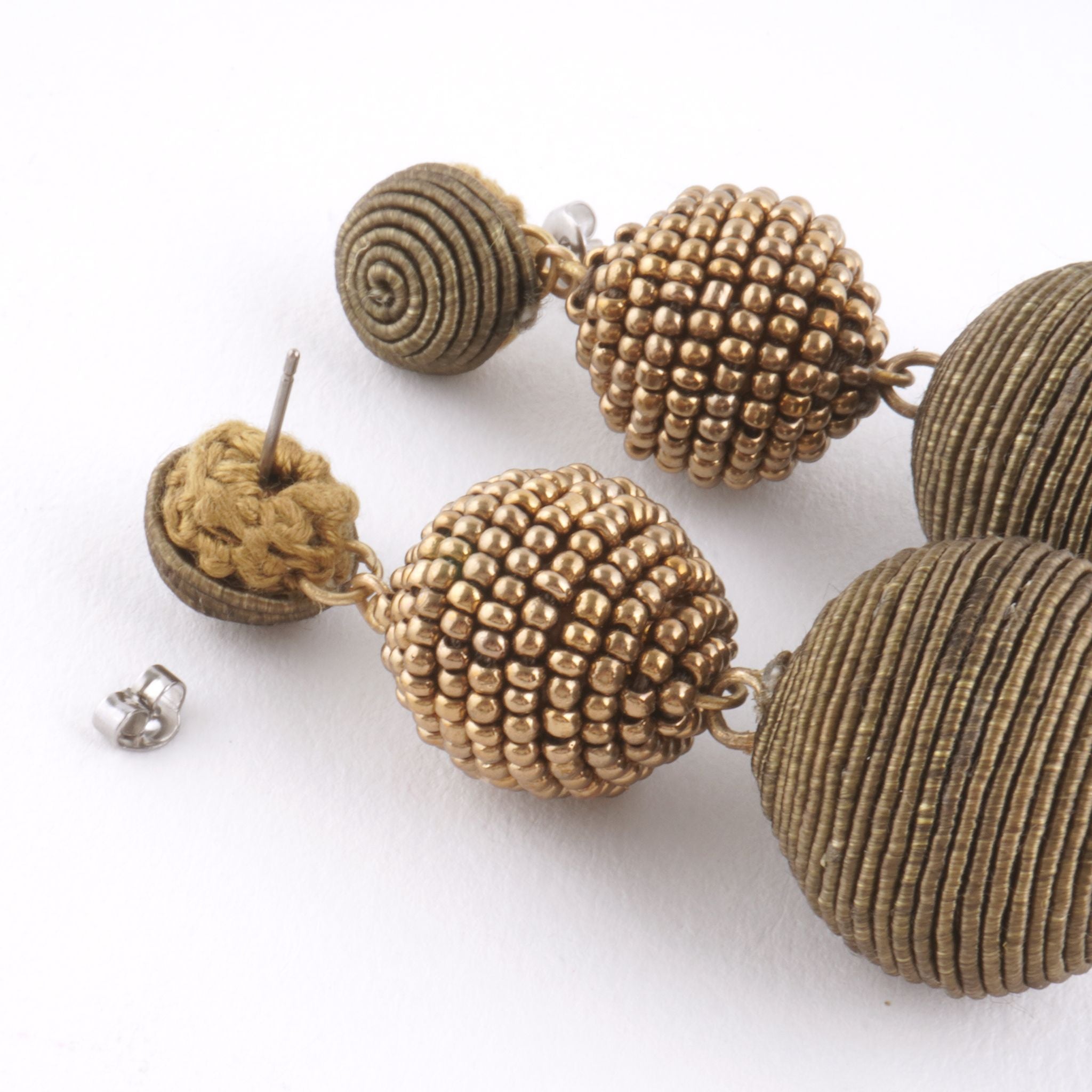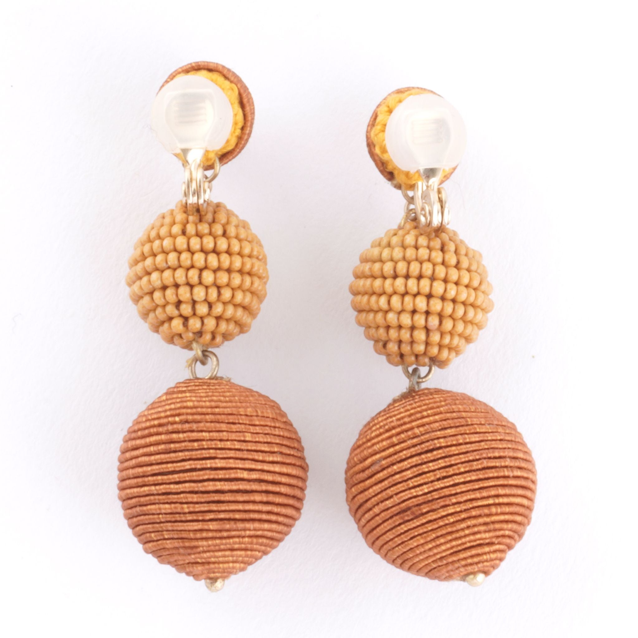 大きめのボンボンモチーフがゆらゆらと揺れ存在感があります。合わせやすい大人っぽいカラーリングなので、デイリーに使いまわせます。パーティーシーンにもおすめ。
