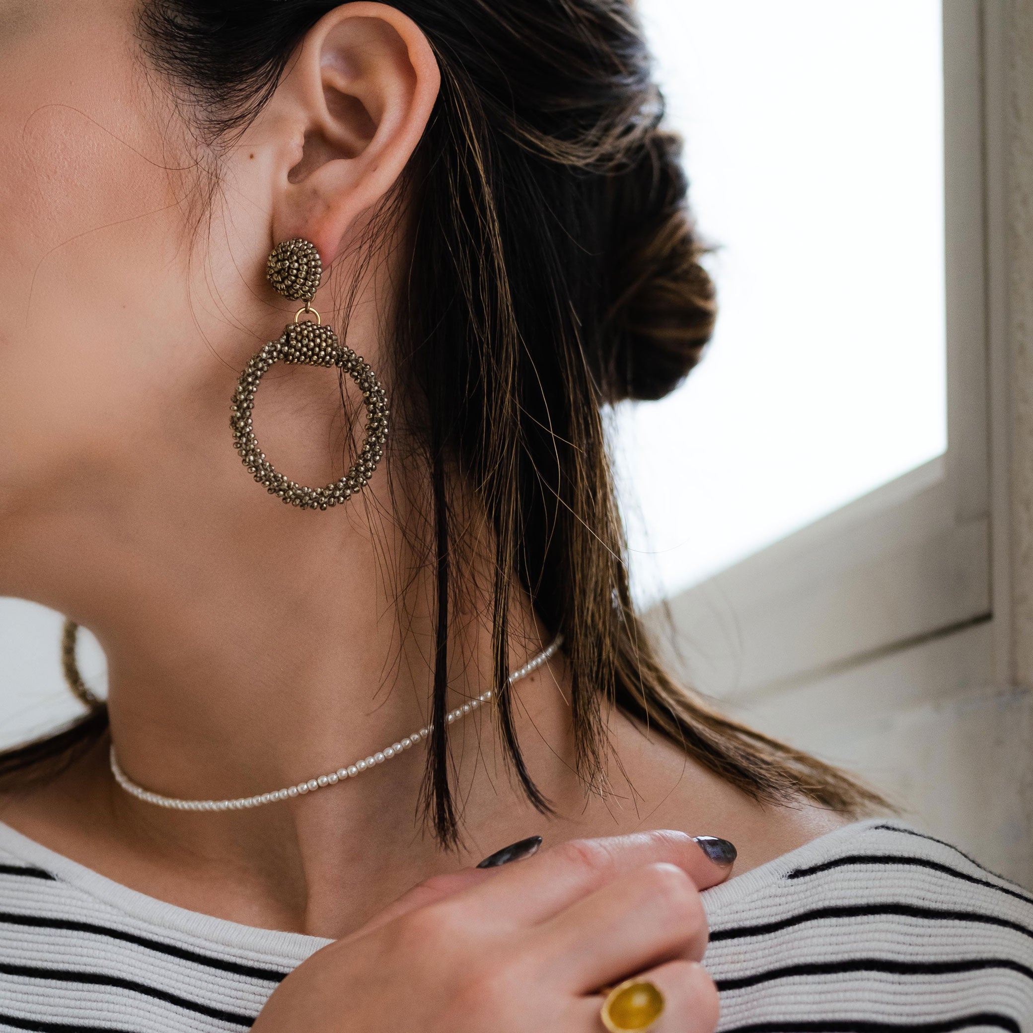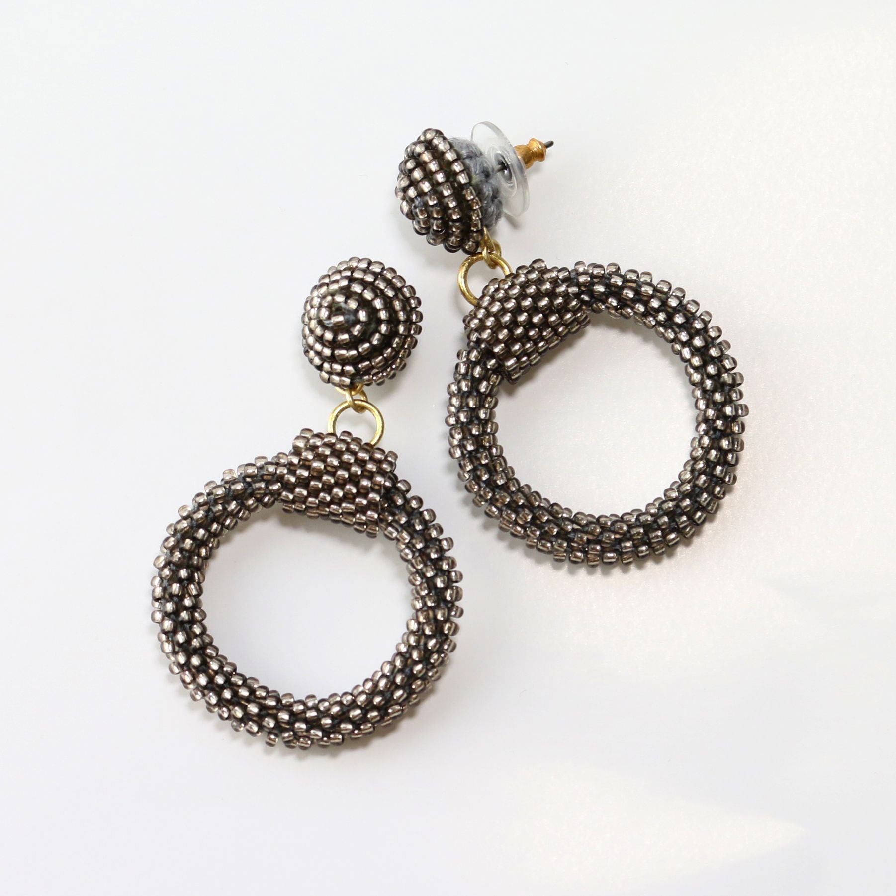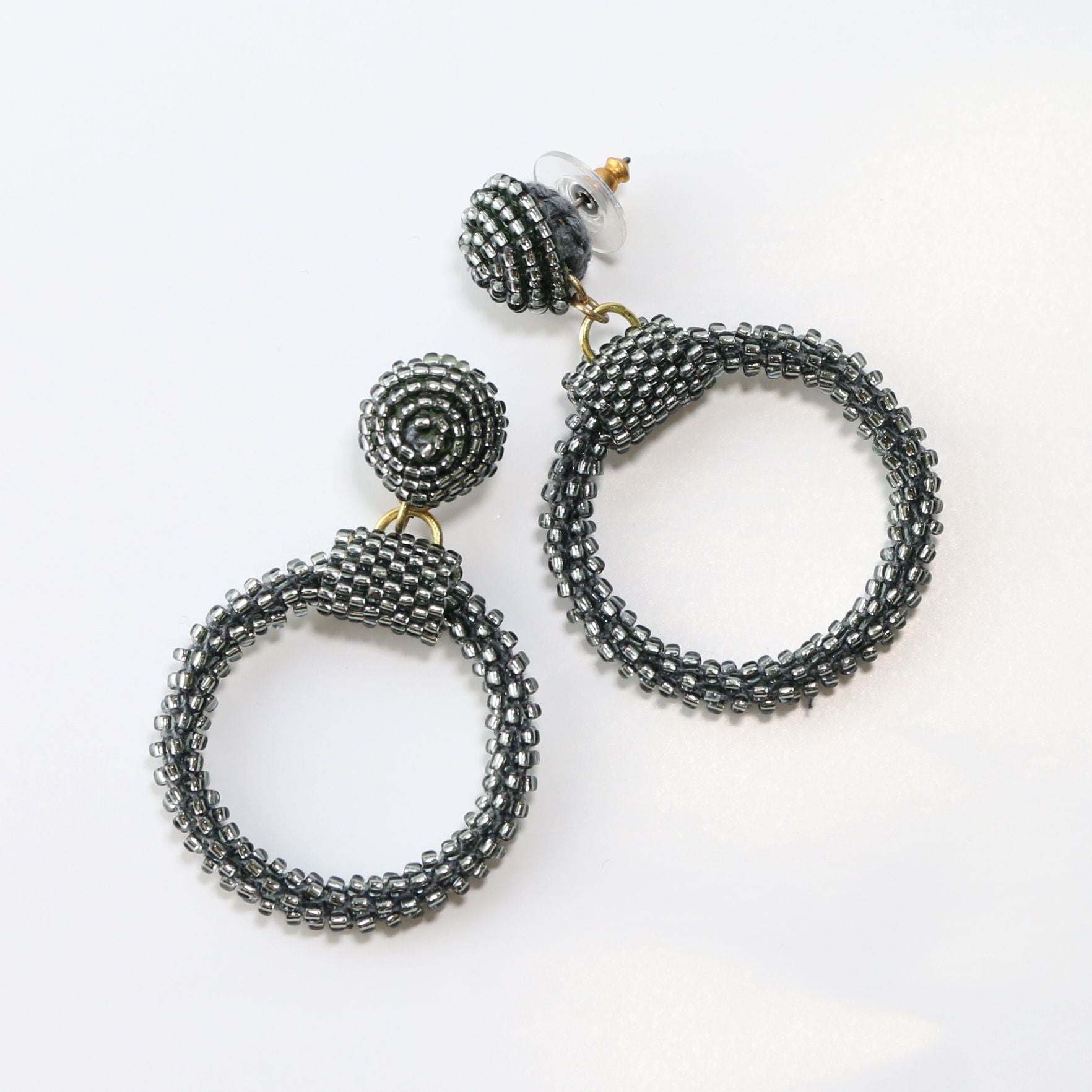 フープモチーフにビーズがデザインされているアイテム。シックなカラーリングで大人っぽい雰囲気にしてくれます。大ぶりのデザインはトレンド感も与えてくれます。人と差をつけたい時にもぴったりです。