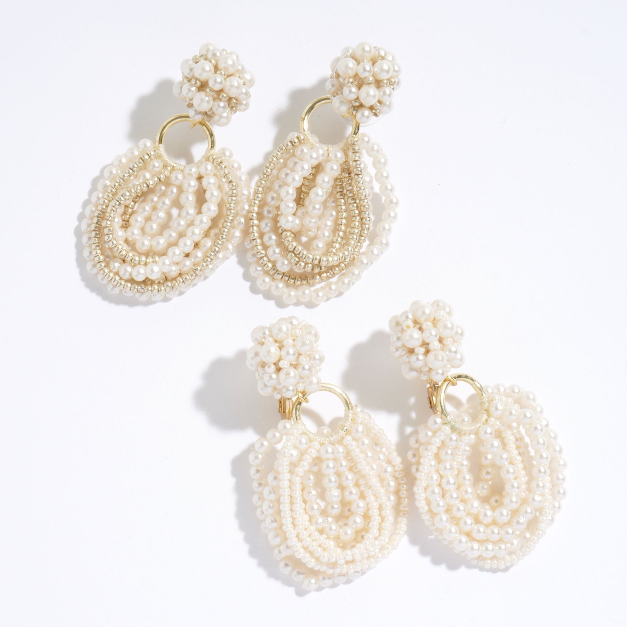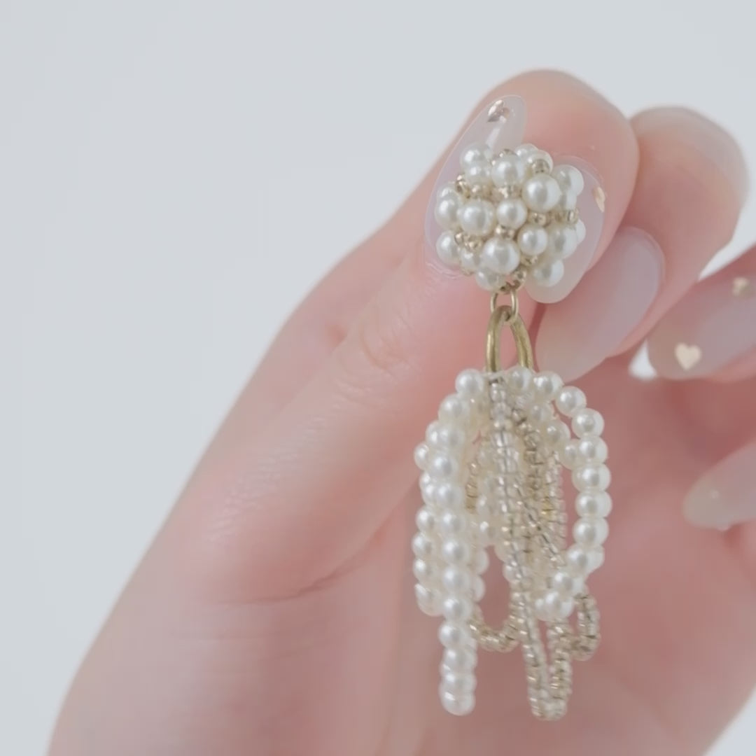 小粒パールが耳元で軽やかに揺れる、上品なピアス・イヤリング。