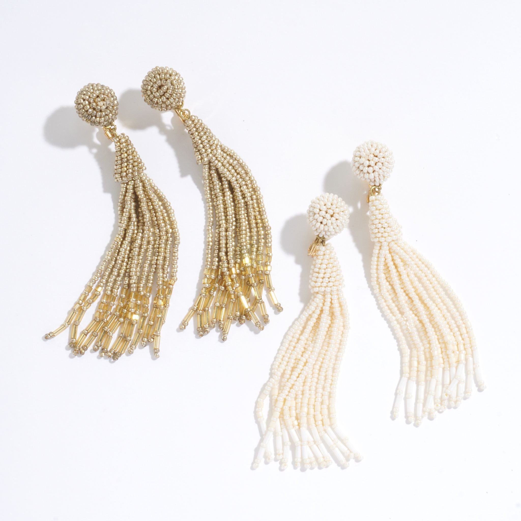 耳元で軽やかに揺れるロングタッセルが、顔まわりを華やかに演出してくれるピアス/イヤリング。繊細なビーズを丁寧に編み上げ、上品な光沢感を放ちながらも軽やかな着け心地を実現しました。動くたびに揺れるフリンジが、日常のスタイリングにリズムを加え、シンプルな装いにも洗練されたアクセントをプラス。一番揺れる下部に細長いビーズを入れ、動くたびに上品にキラメくビーズタッセルがポイント。すべてのビーズを同系色でまとめ上品さの中にアクセントを取り入れました。