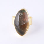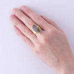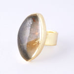 大ぶりの天然石が、まるでアートのように輝くリング。 身に着けるだけで、シンプルなコーデも一気に洗練された印象に。