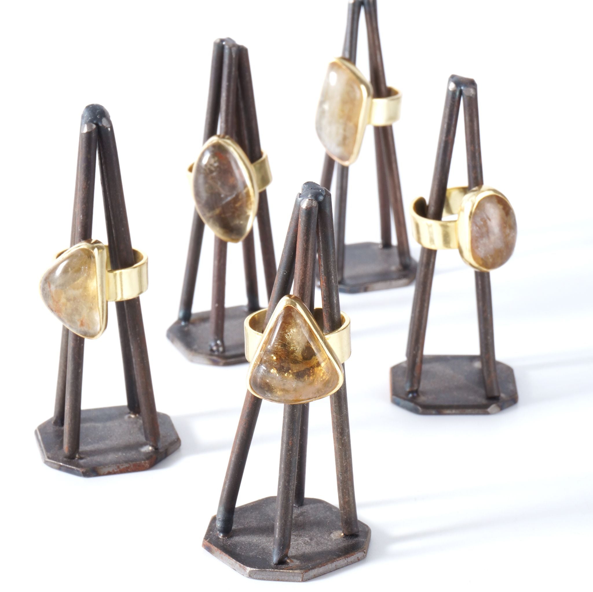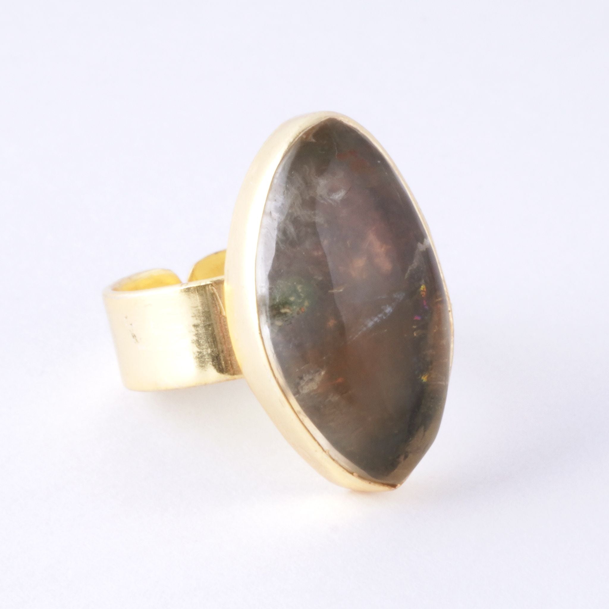インド・ジャイプールで厳選された良質の天然石。確かな品質をお手頃価格で提供したいという思いから、リングパーツは真鍮を、また自分サイズにアレンジ自由なフリーサイズリングを採用。天然石の形に合わせて、インドの職人が1つ1つ丁寧に作り上げています。全て1点物、色も形も違う、あなただけのオンリーワンジュエリーです。